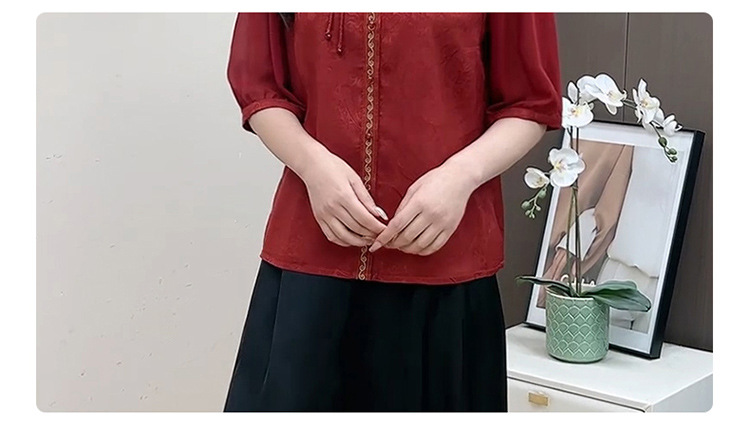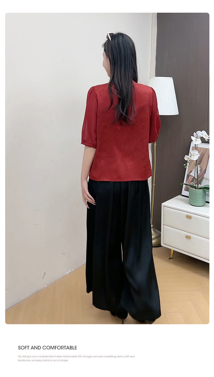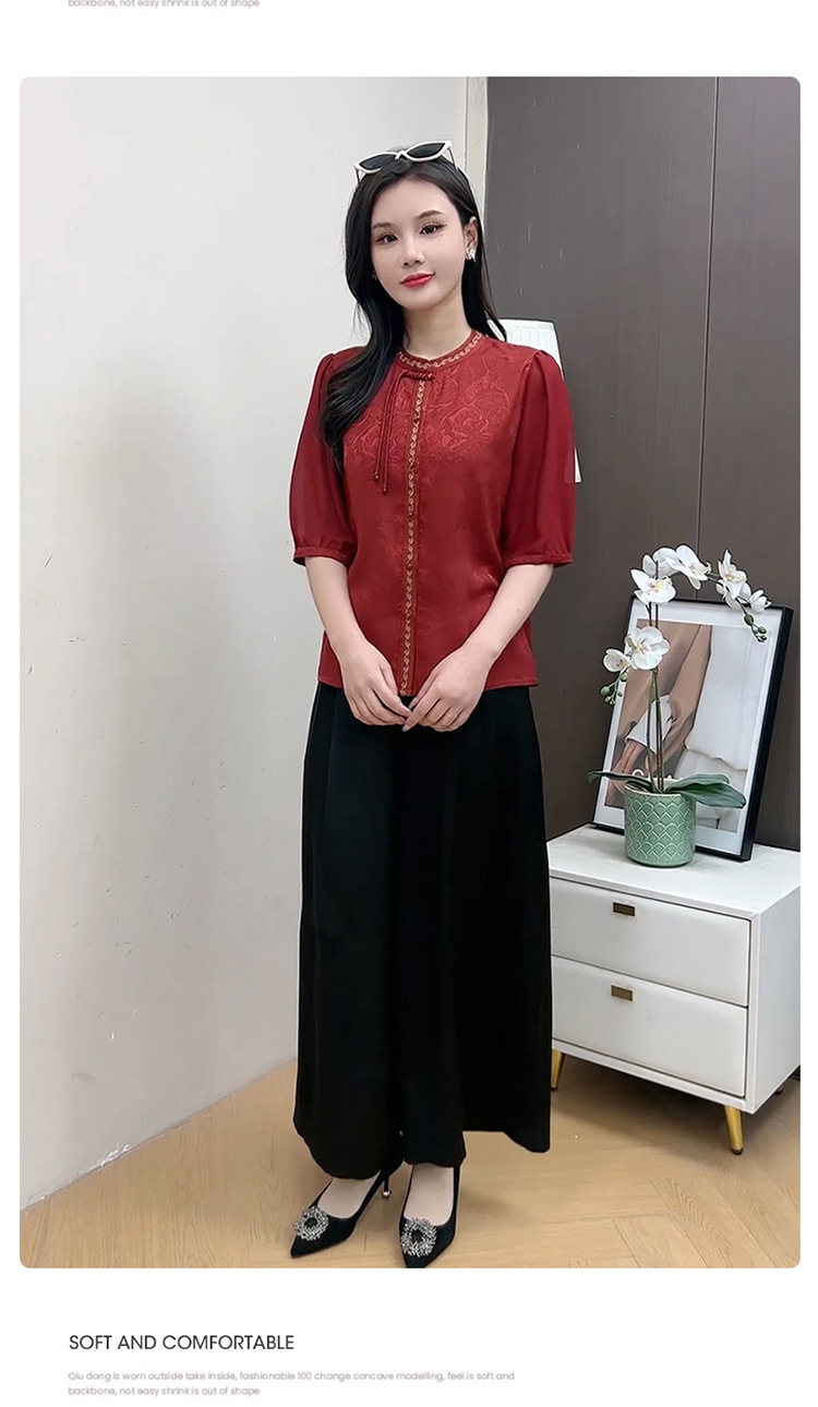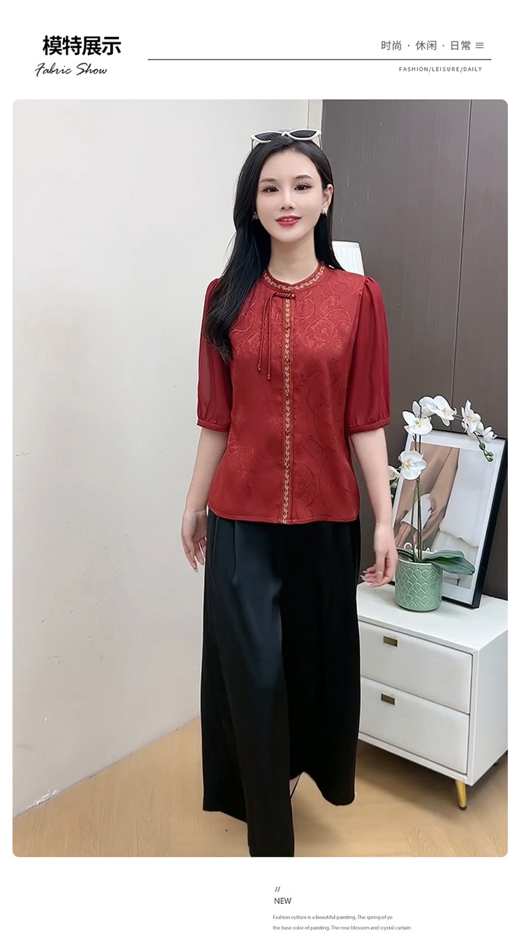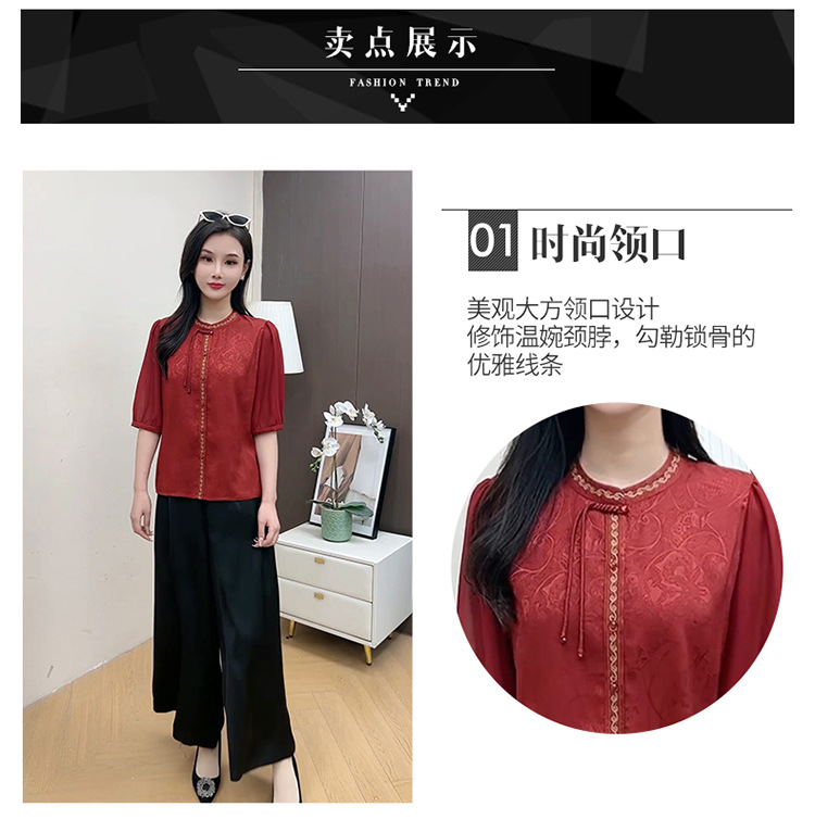 QYMYJ-25DS629-L 2025夏季新款新中式气质优雅中袖小衫垂感宽松阔腿裤妈妈装两件套 商品图1