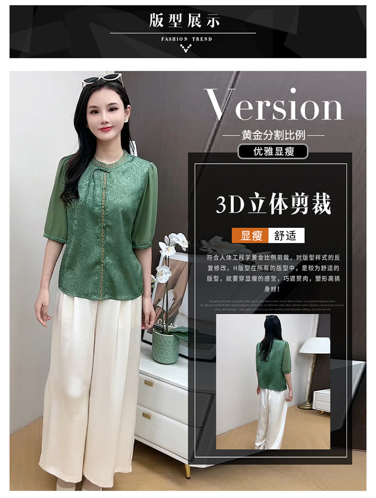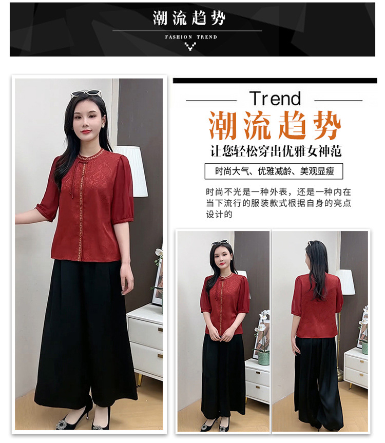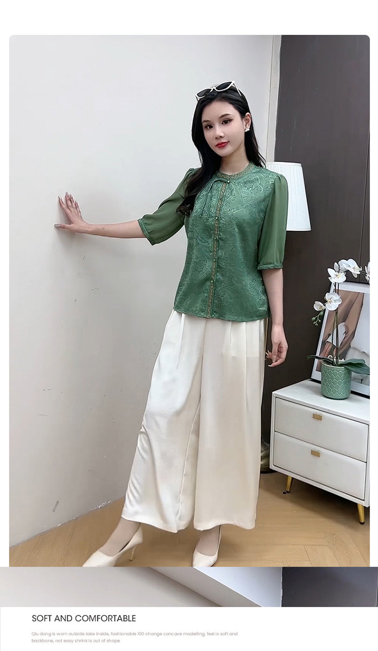 QYMYJ-25DS629-L 2025夏季新款新中式气质优雅中袖小衫垂感宽松阔腿裤妈妈装两件套 商品缩略图0 QYMYJ-25DS629-L 2025夏季新款新中式气质优雅中袖小衫垂感宽松阔腿裤妈妈装两件套 商品缩略图1