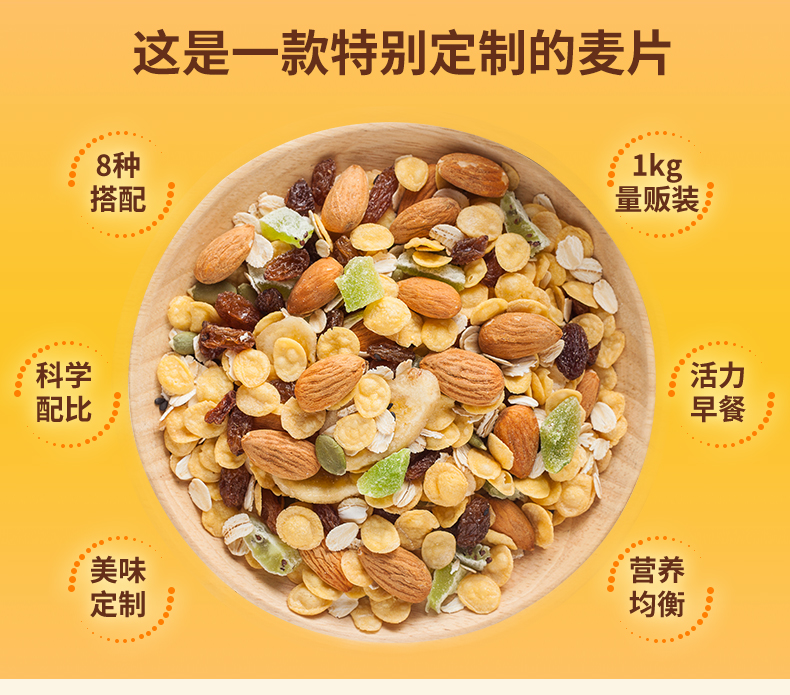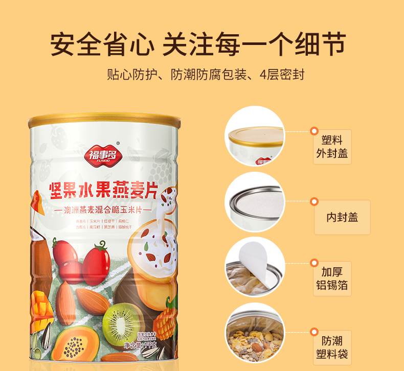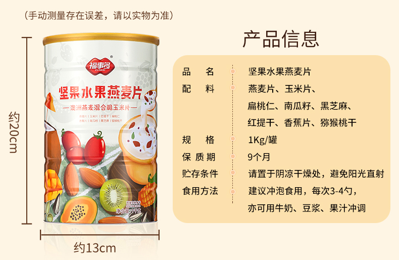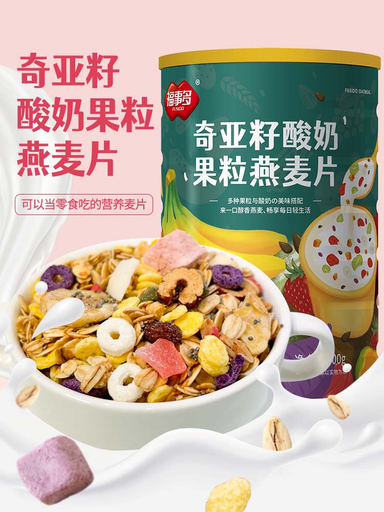 福事多 坚果水果燕麦片1000g/罐 酸奶果粒燕麦片500g/2罐 三分钟搞定营养早餐,懒人早餐轻松get;真材实料,精选优质好食材,高饱腹营养均衡;