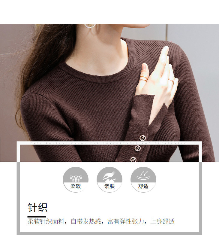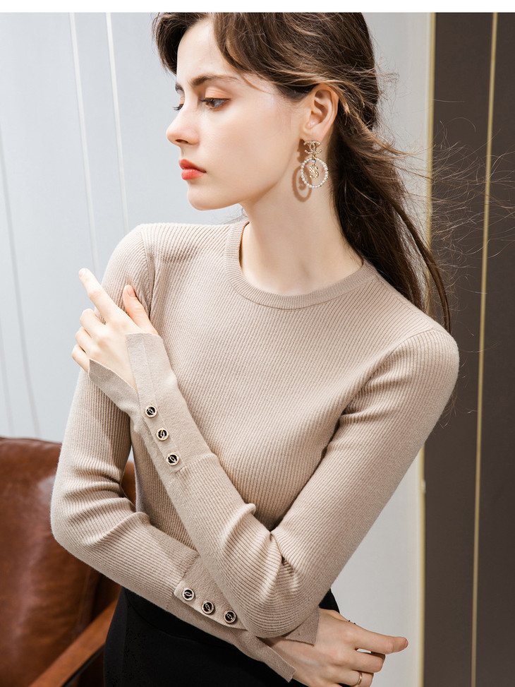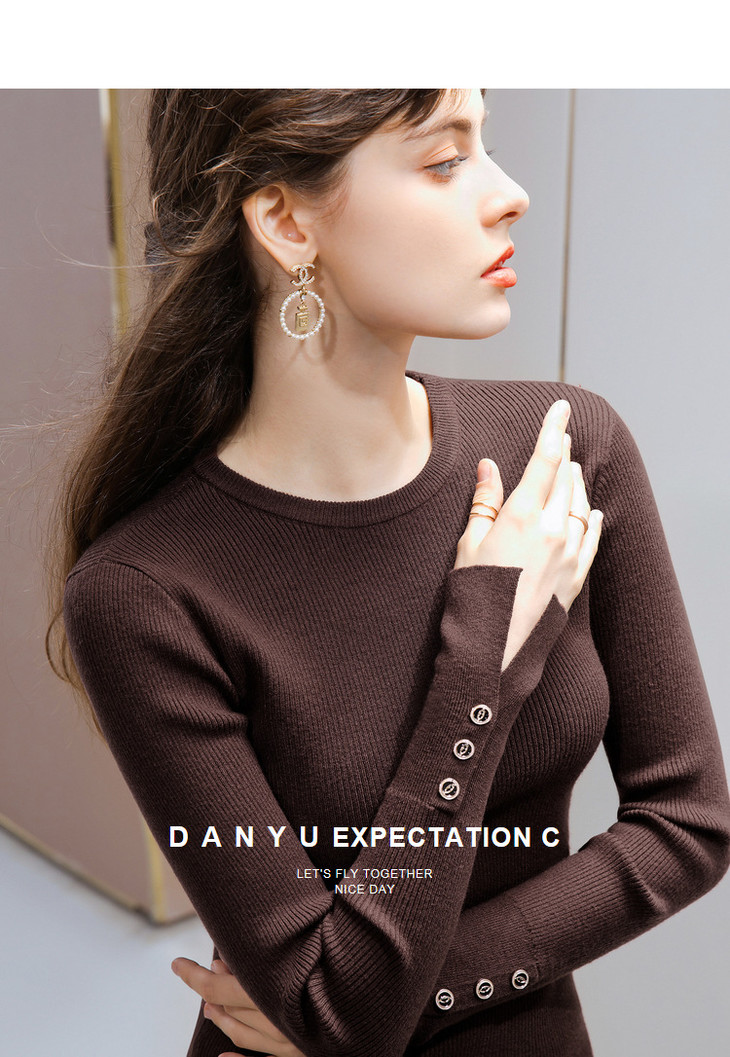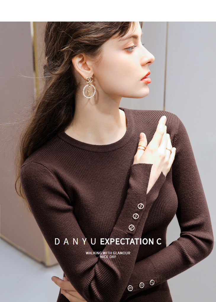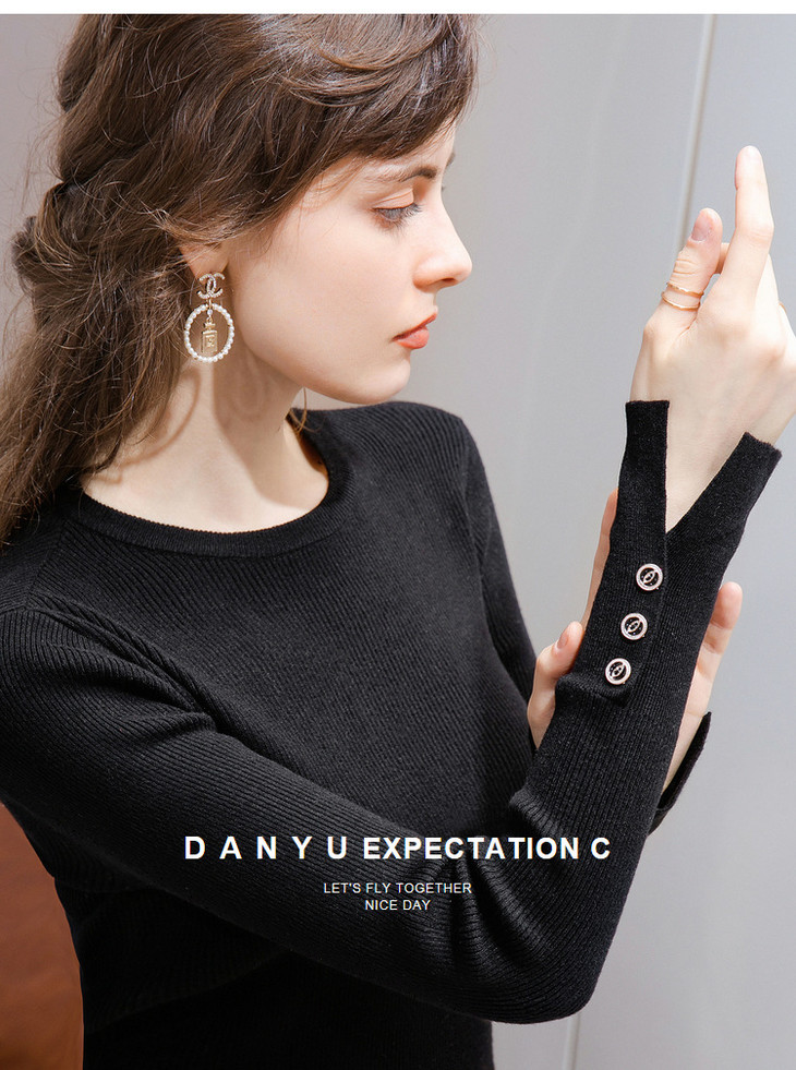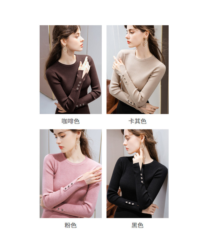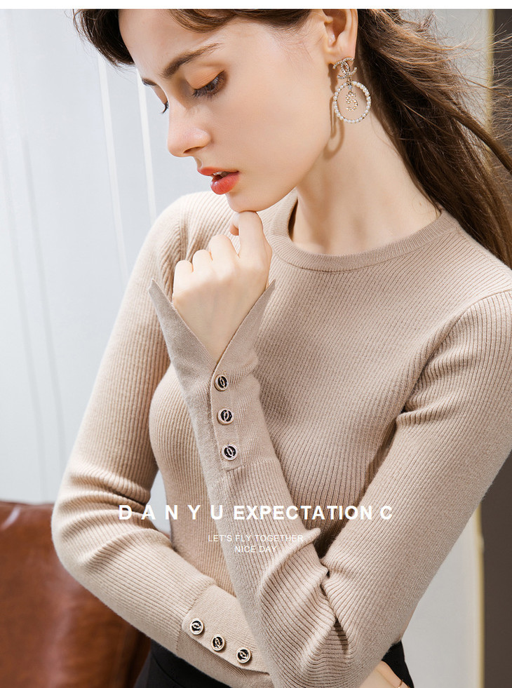 DY-AL50050女装内搭长袖洋气小衫圆领纽扣温柔风打底衫