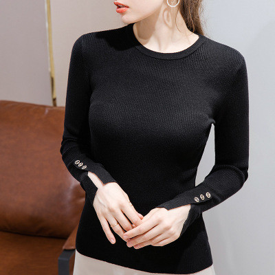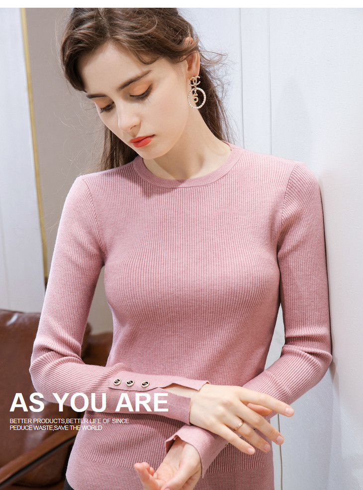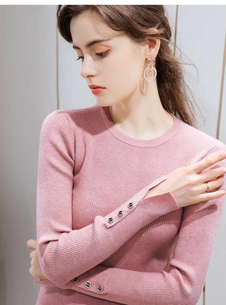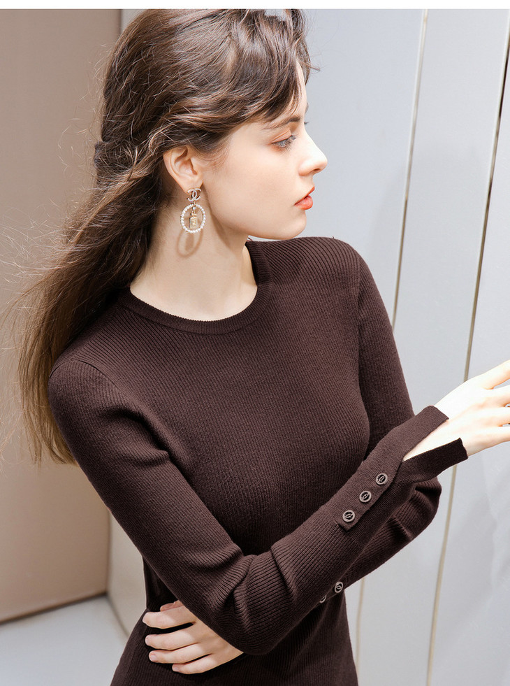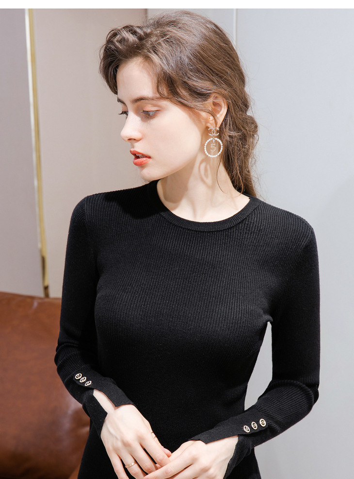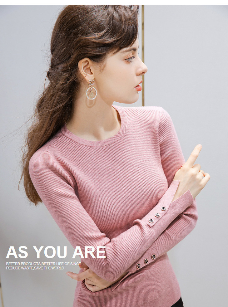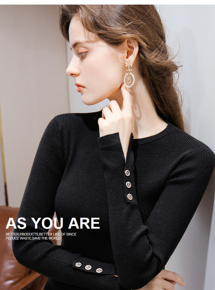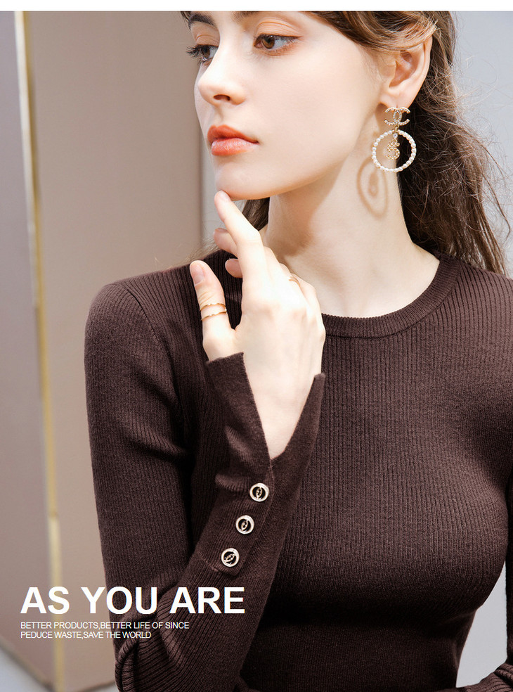 DY-AL50050女装内搭长袖洋气小衫圆领纽扣温柔风打底衫