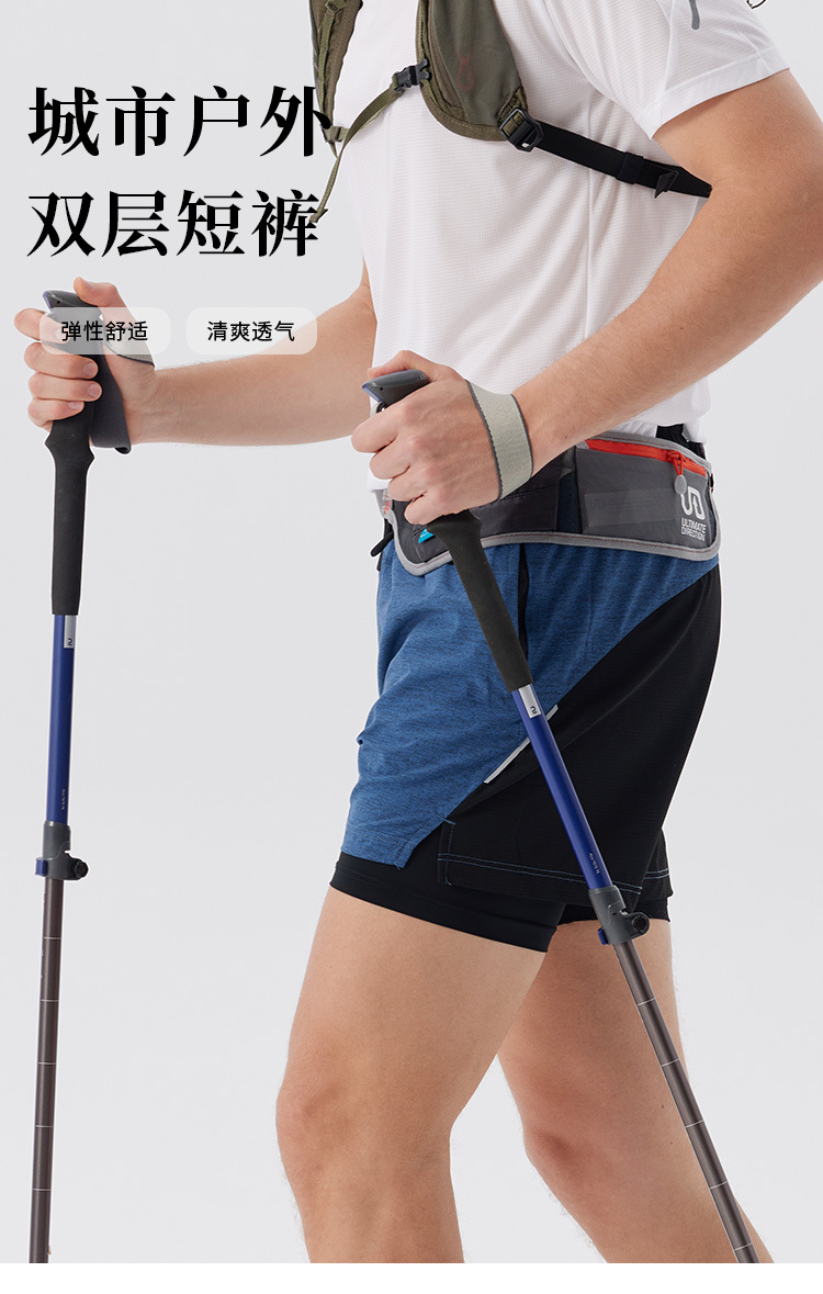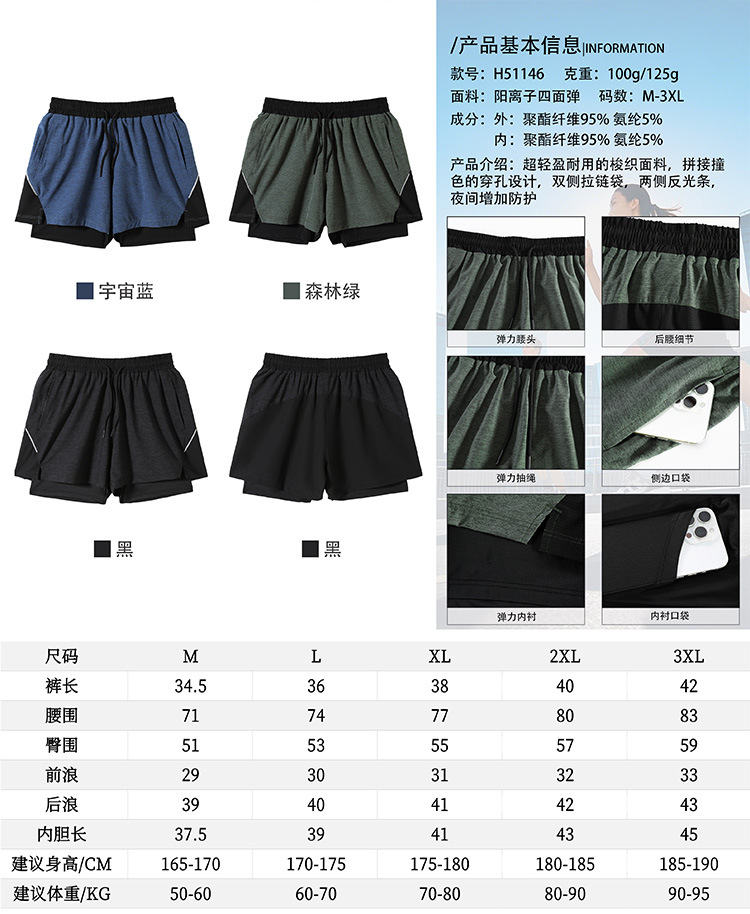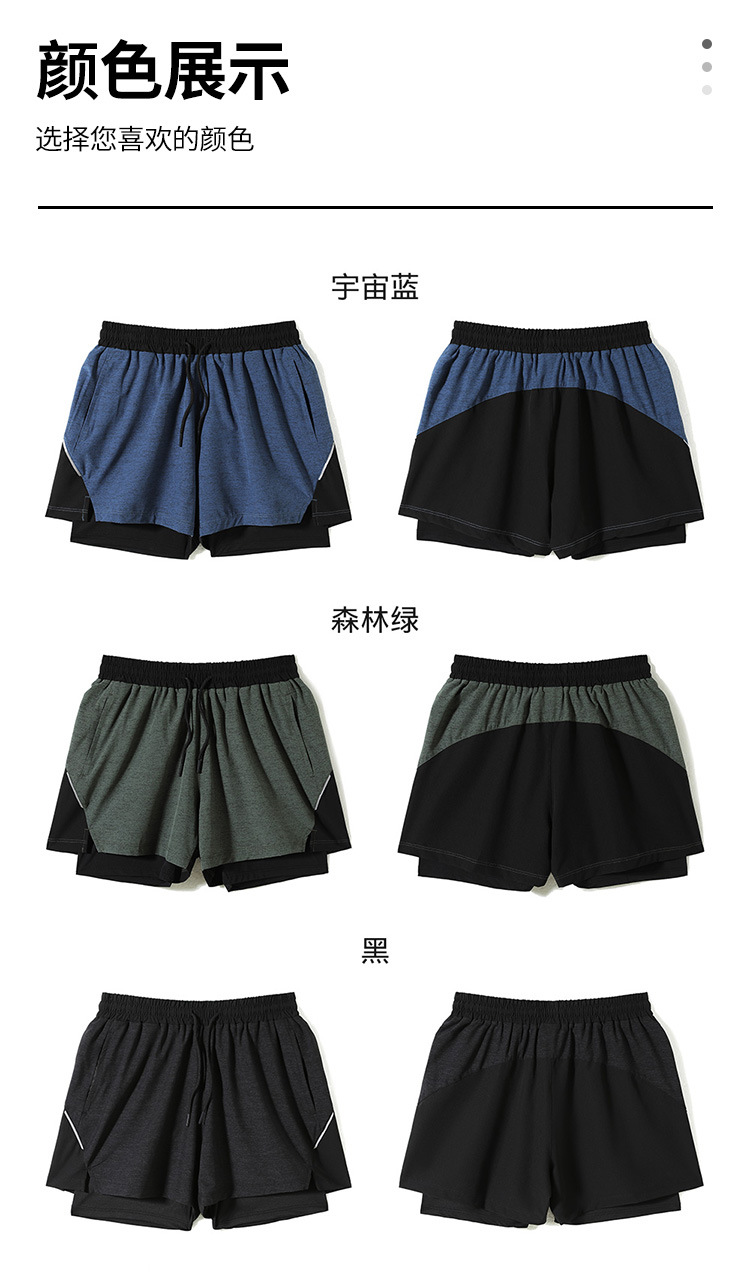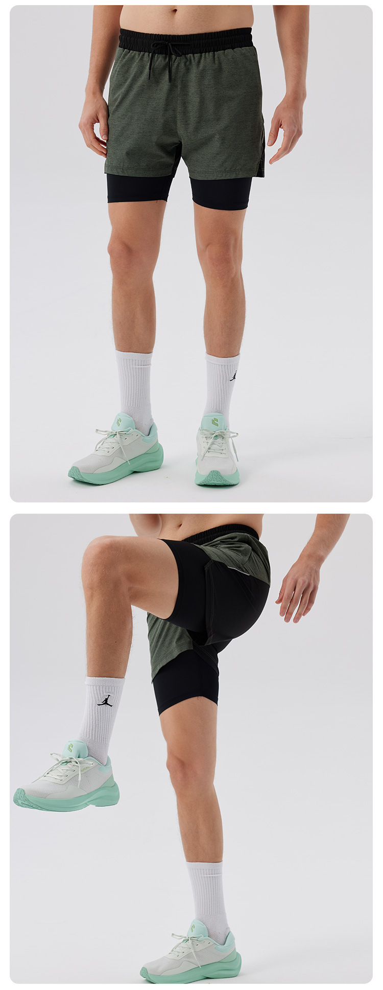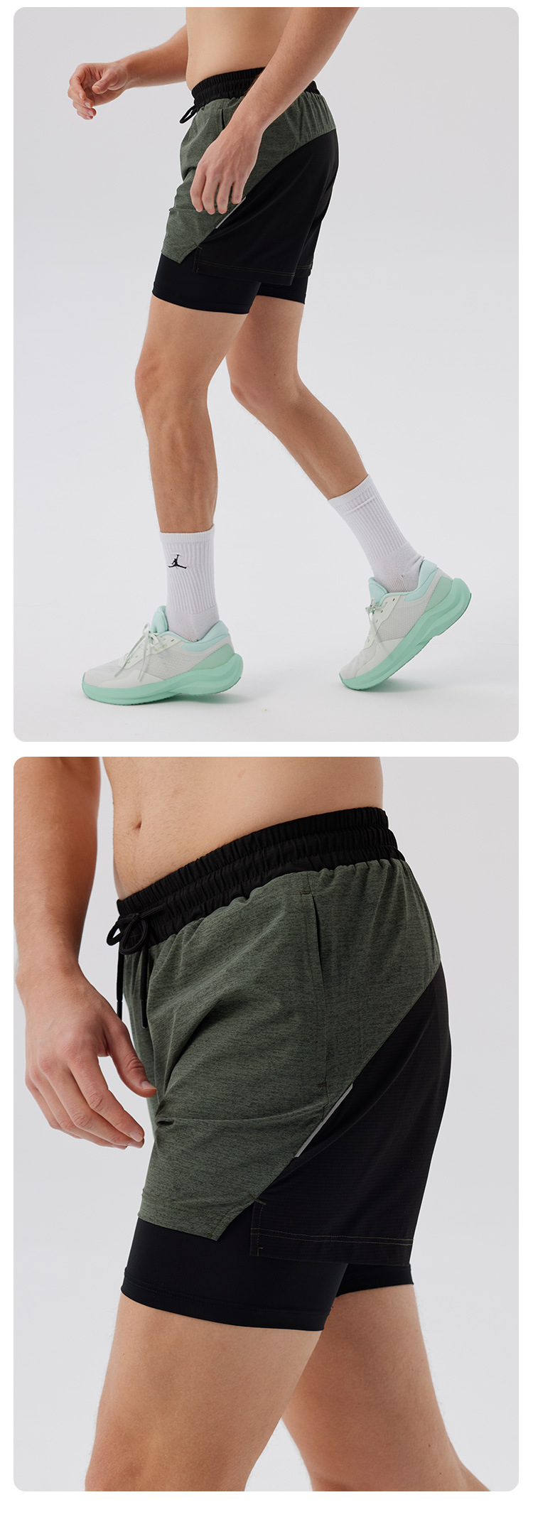 跃牌【跃LEAP-ACTIVE】 四分双层运动短裤男士耐热透气撞色拼接假两件短裤H51146