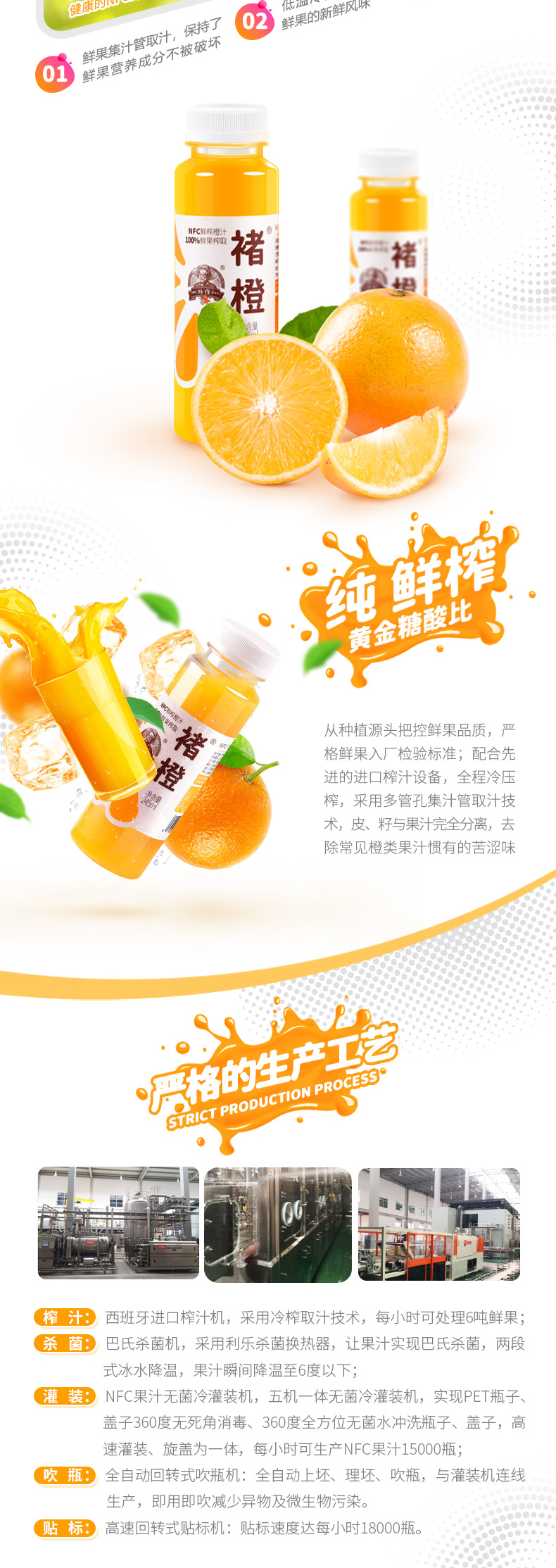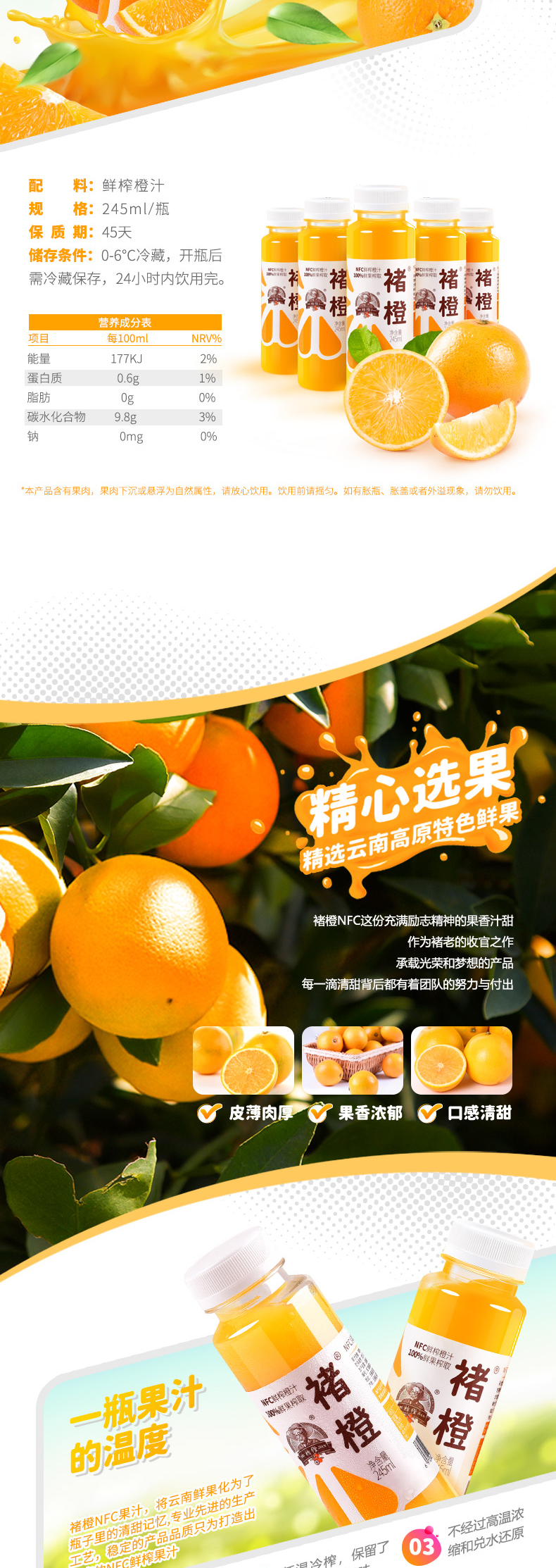 【 冷冻品发出不退改件】褚橙NFC鲜榨橙汁245ml*6瓶纯鲜果汁非浓缩还原夏日饮料无添加包邮