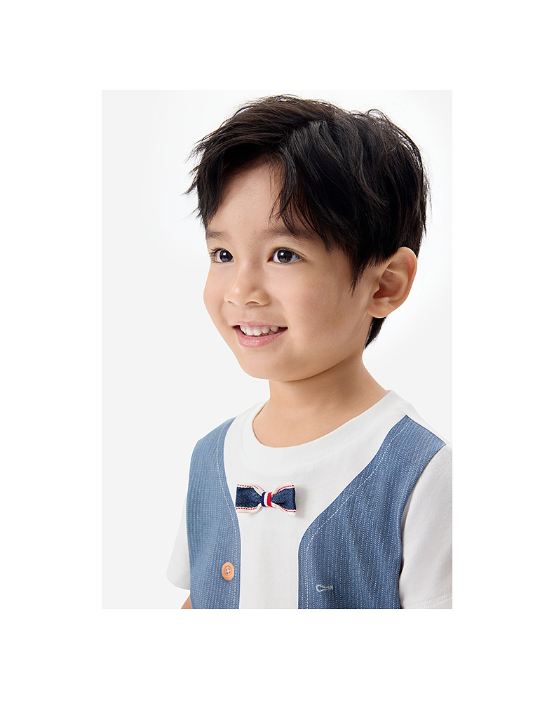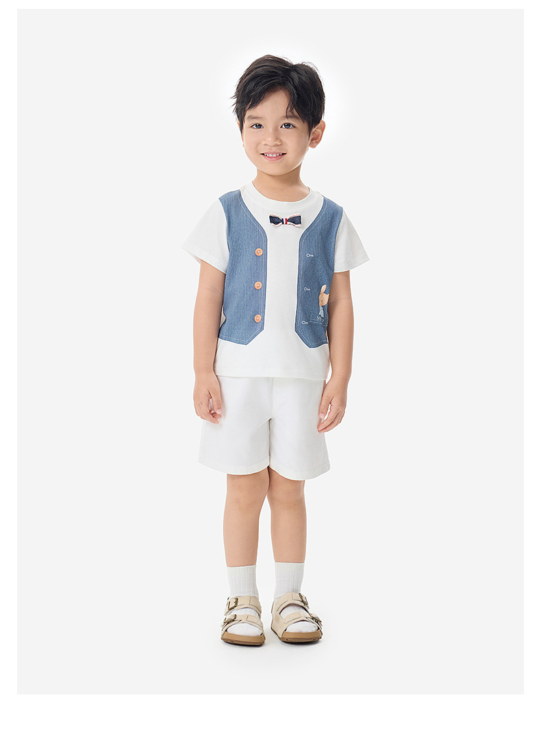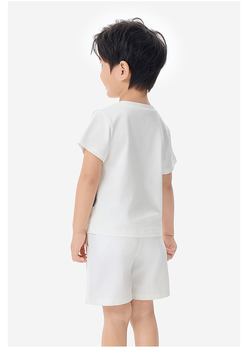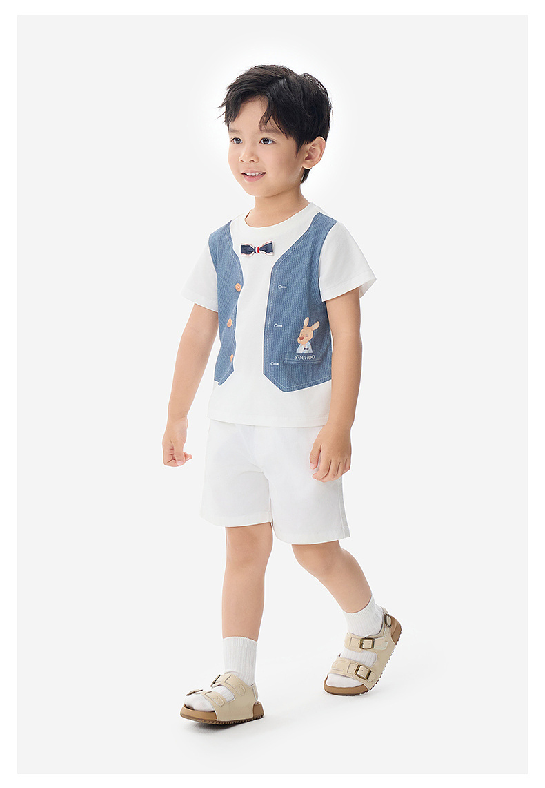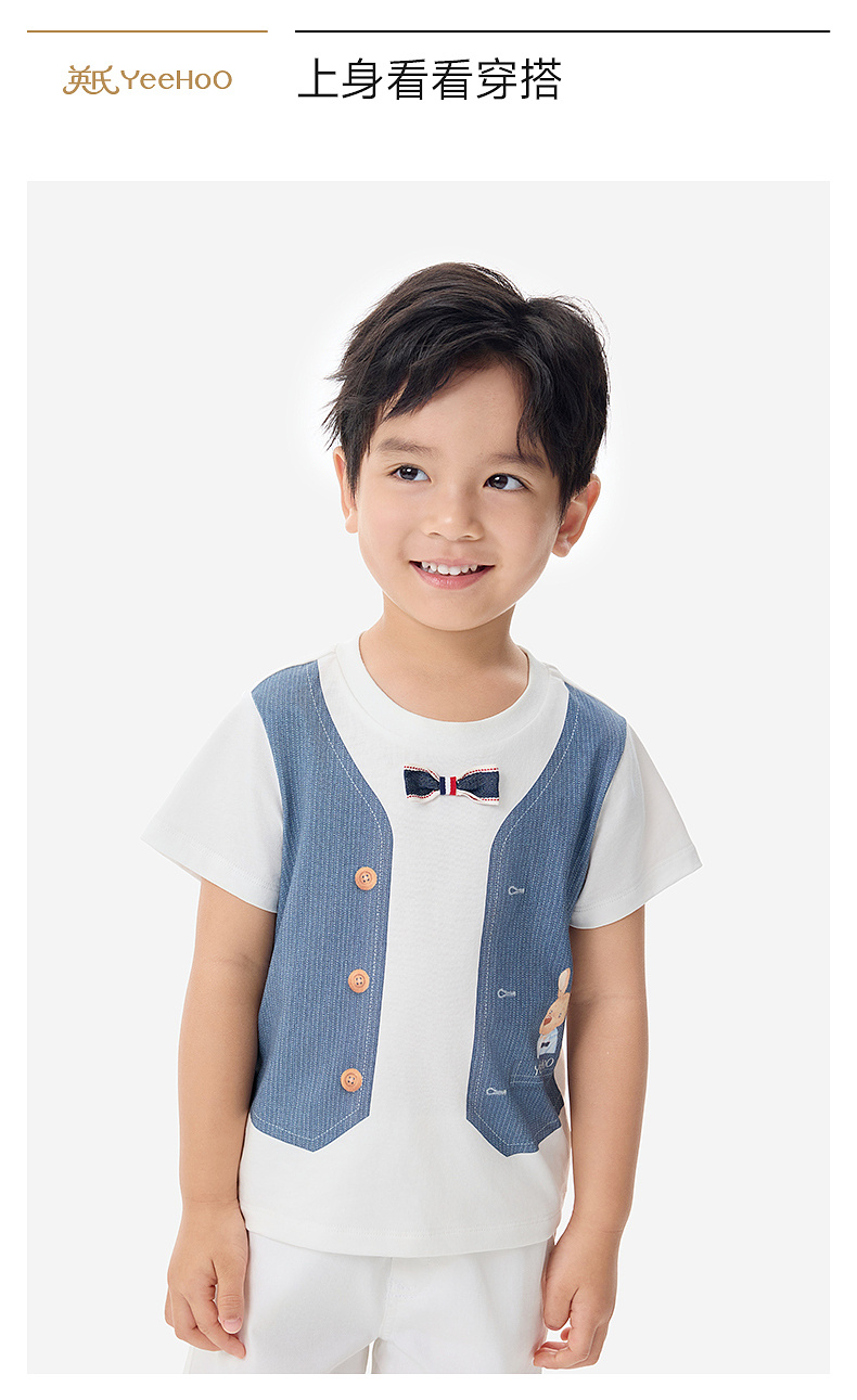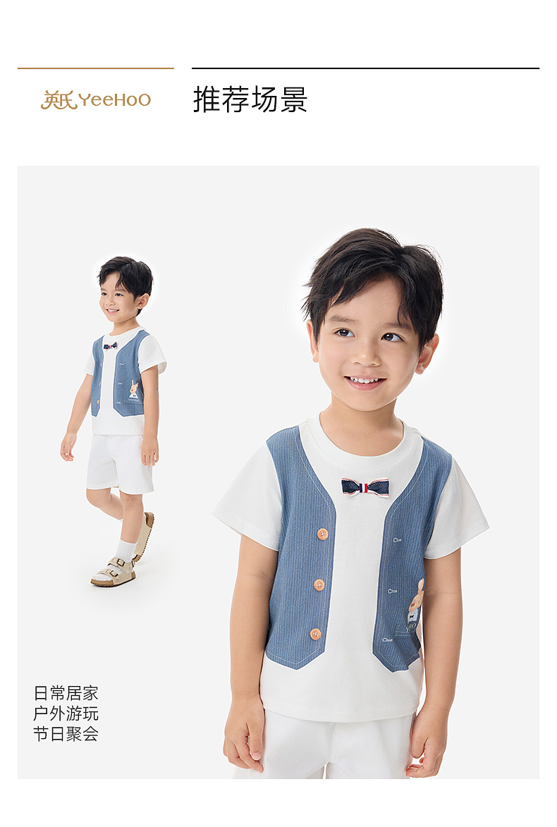 【100%精梳棉】英氏儿童衣服男童圆领百搭上衣夏装短袖T恤针织卡通纯棉薄款上衣