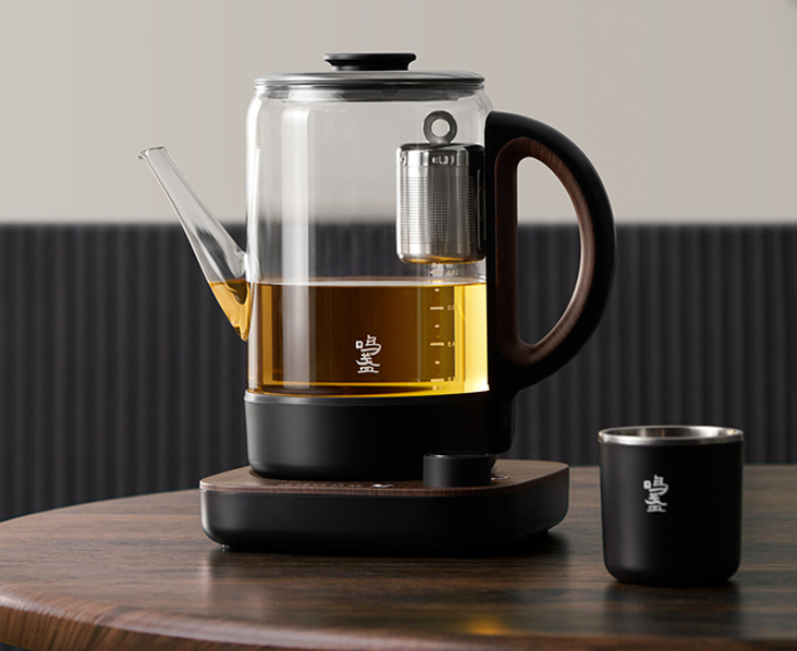 无杆茶篮自由升降的泡煮式煮茶器,通过专利磁吸技术控制茶篮升降,精简了壶内空间,茶篮亦可自由拆洗,通过磁吸自动复位安装。拥有六大模式,每种模式针对不同茶种,设置了专属温度和时间,选好模式自动泡煮出好茶,亦可手动自由升降茶篮随时调节口味,是新老茶客都适合的现代智能煮茶器。