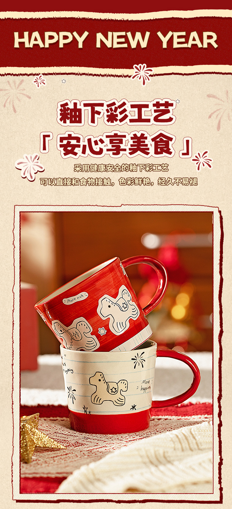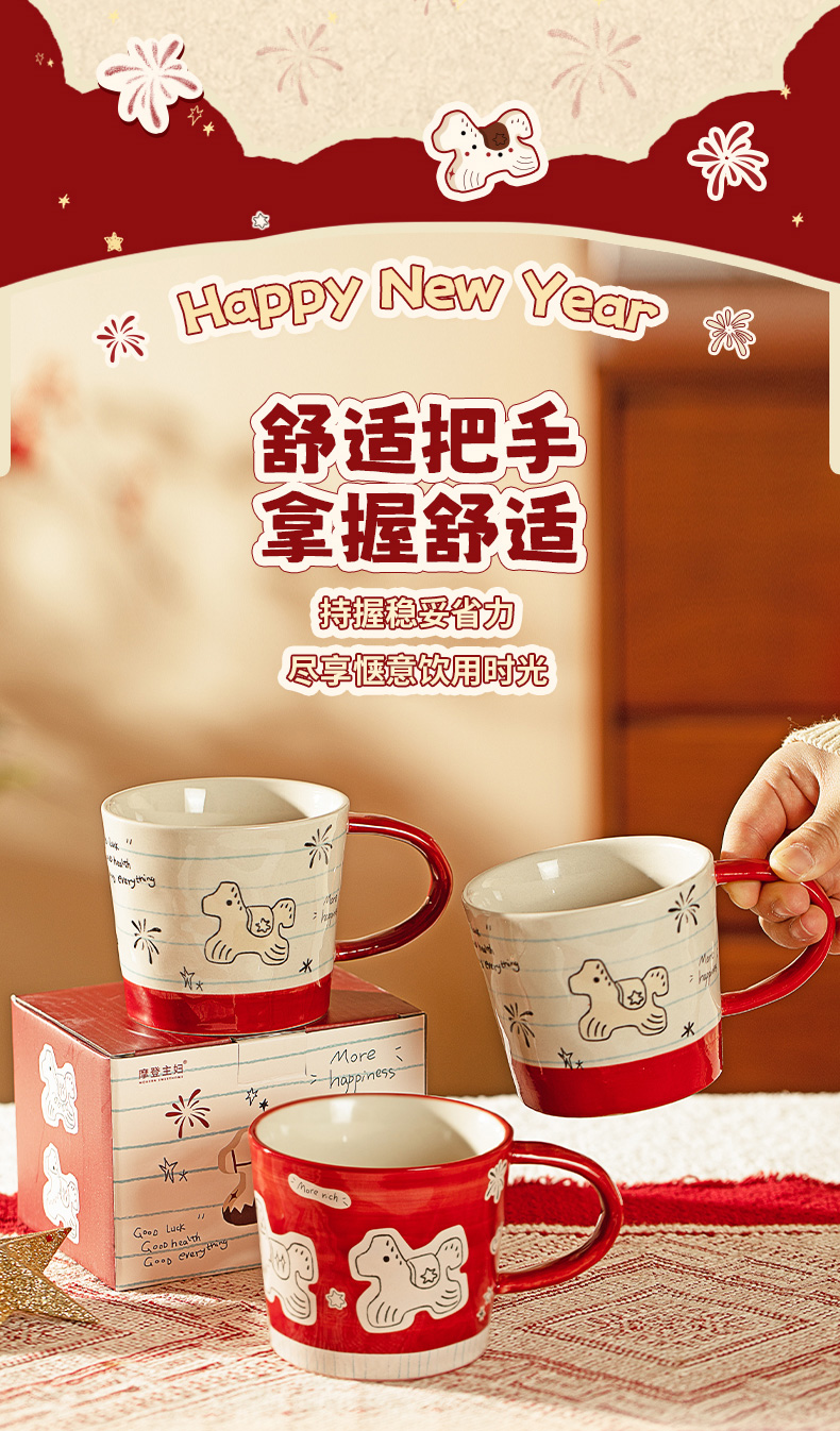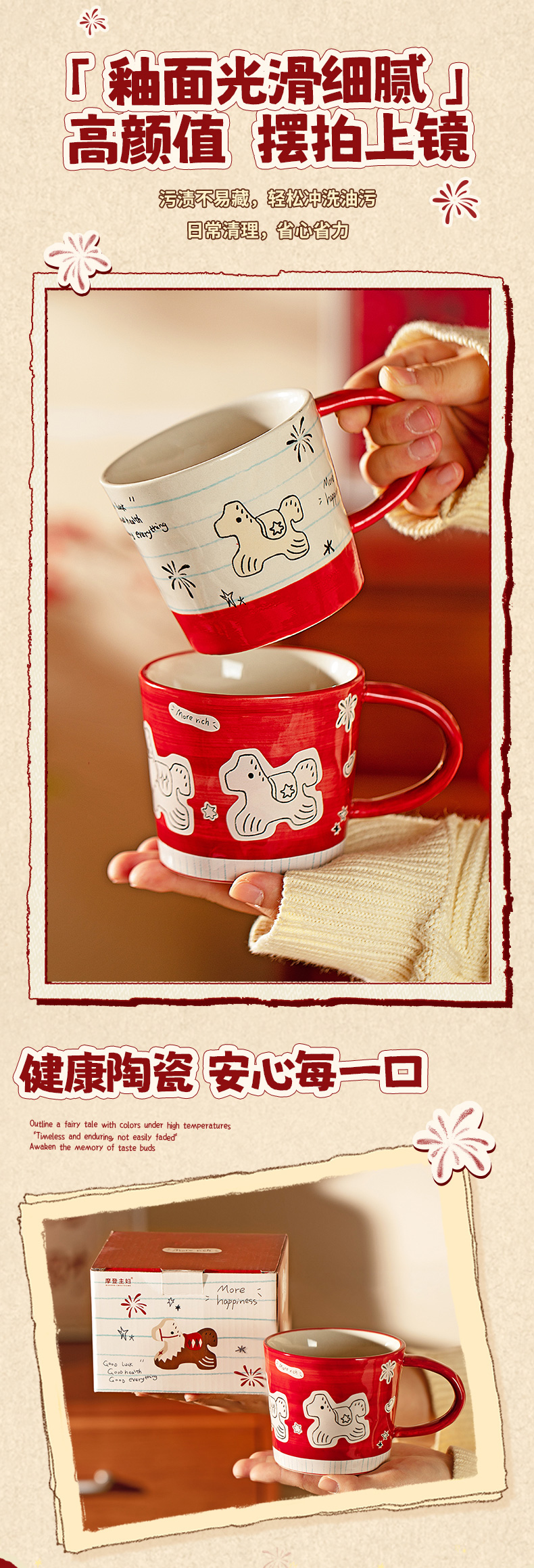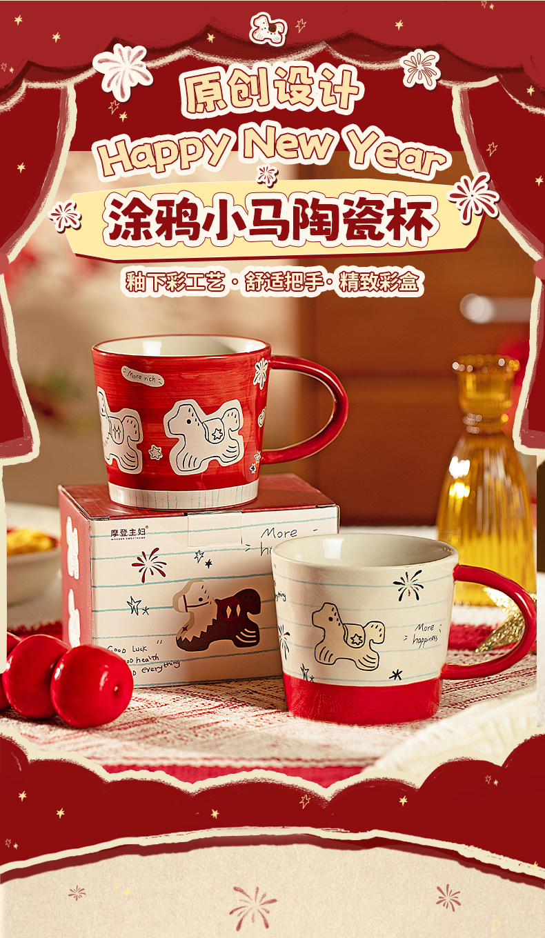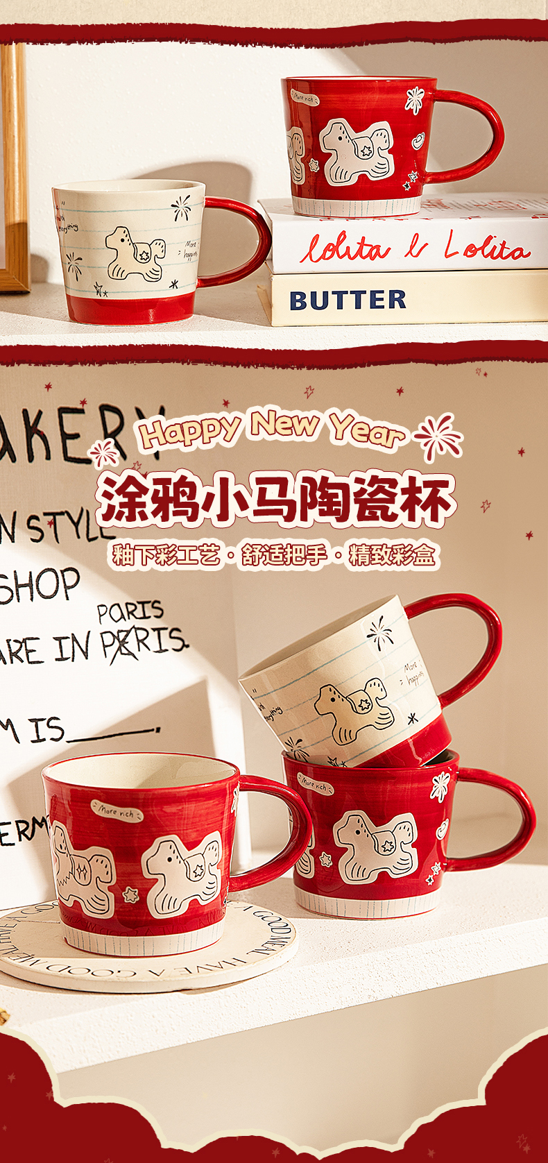 摩登主妇釉下彩马克杯马年新年礼物生日水杯高脚杯咖啡杯陶瓷杯子