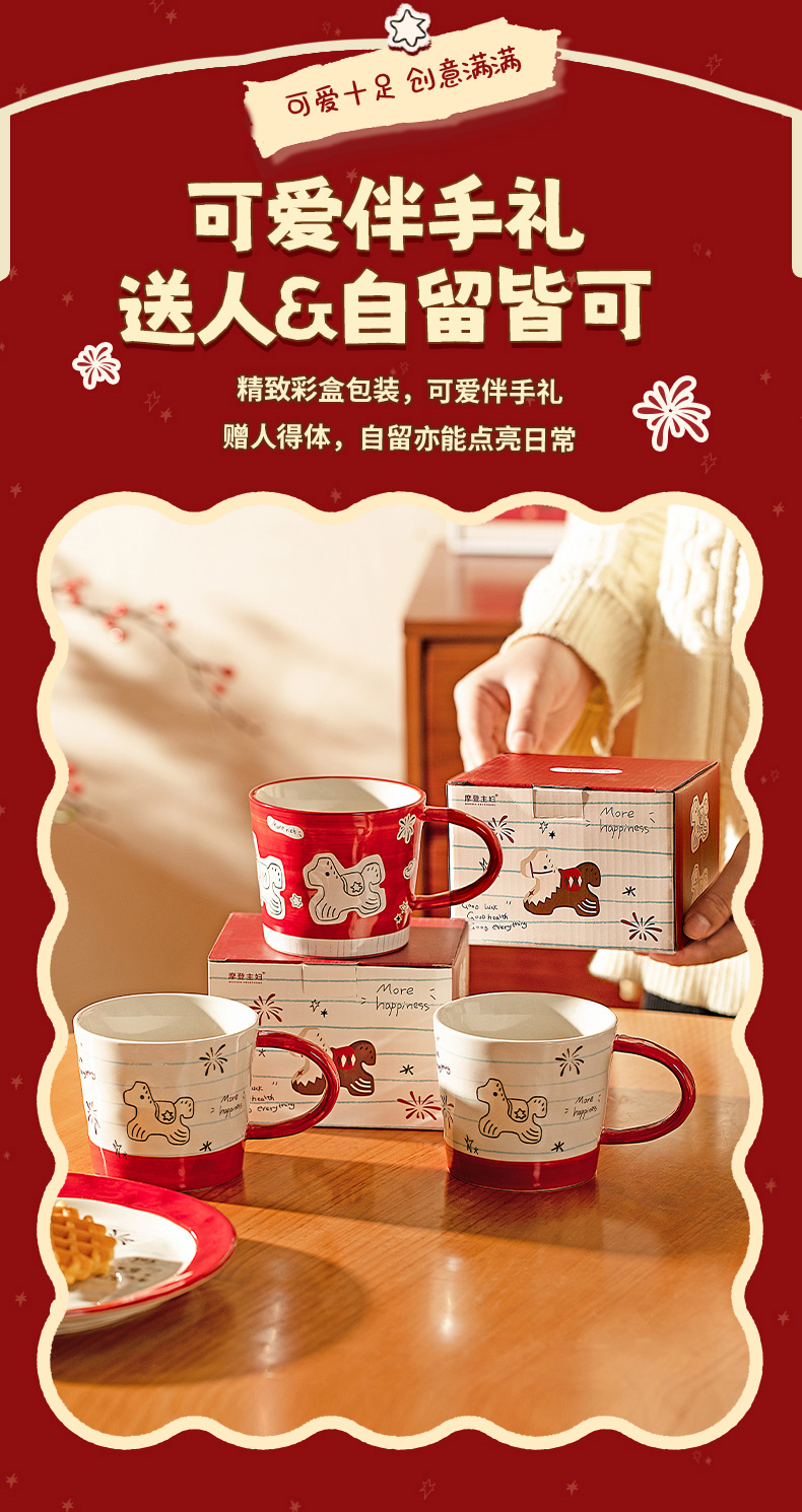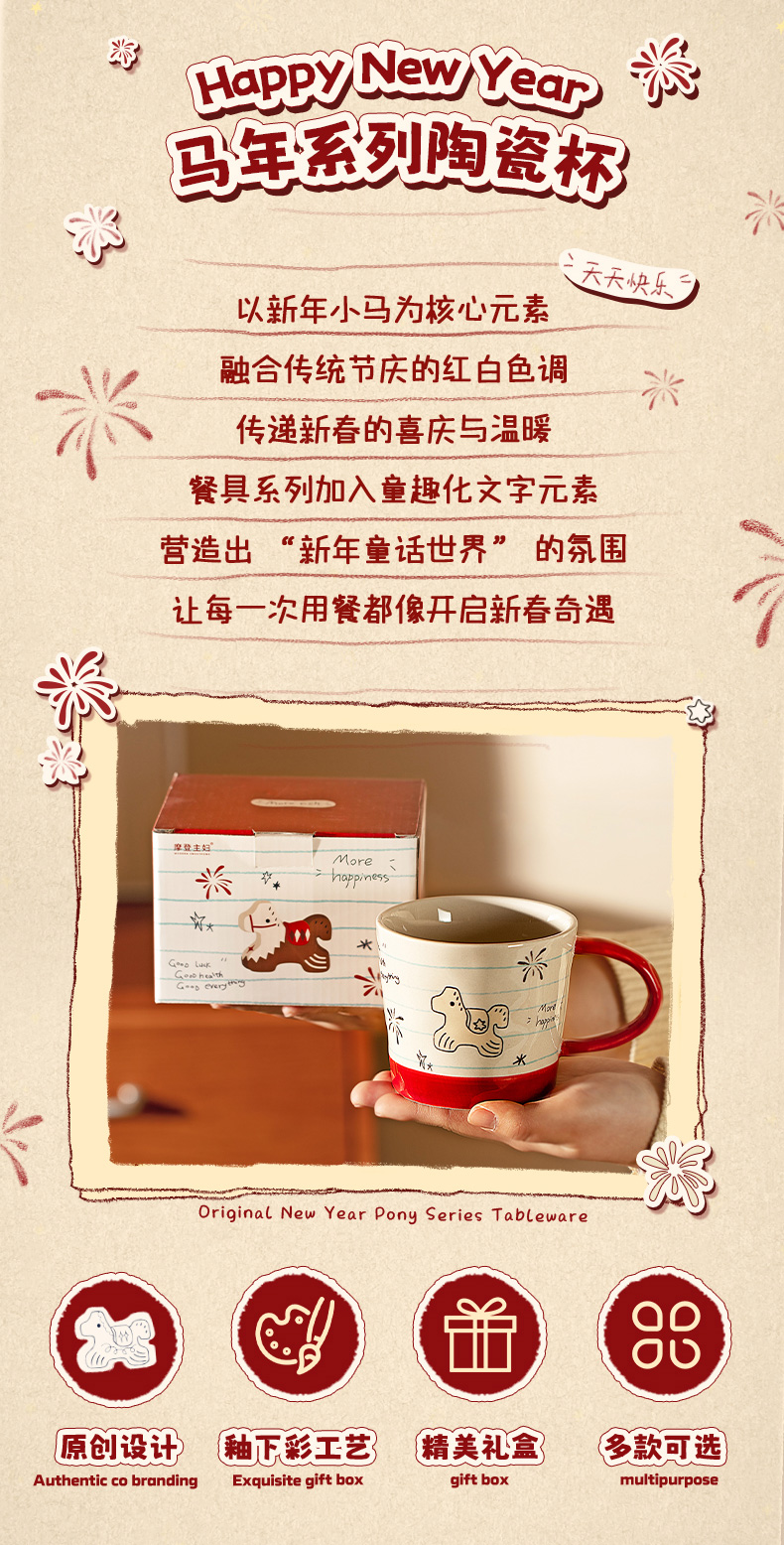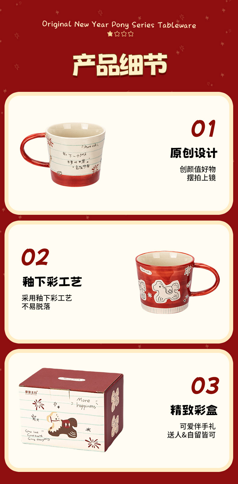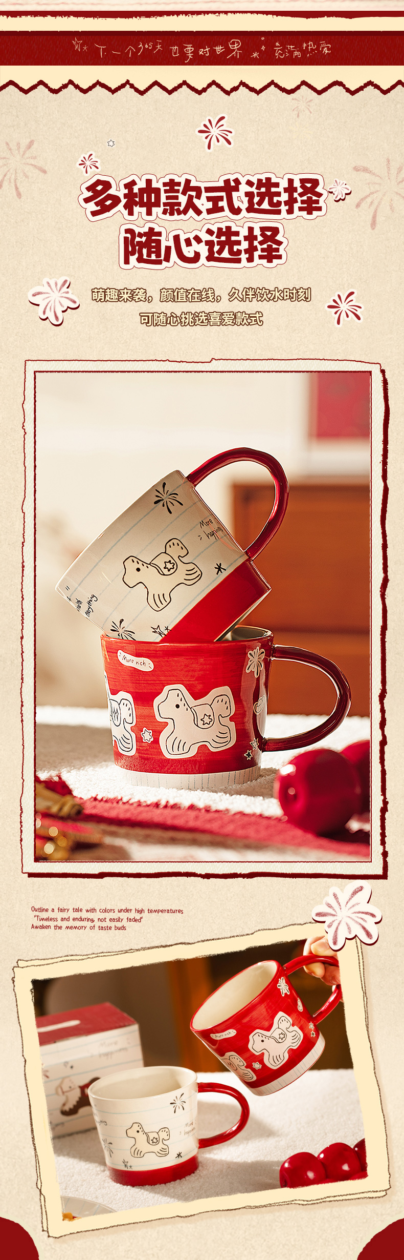 摩登主妇釉下彩马克杯马年新年礼物生日水杯高脚杯咖啡杯陶瓷杯子