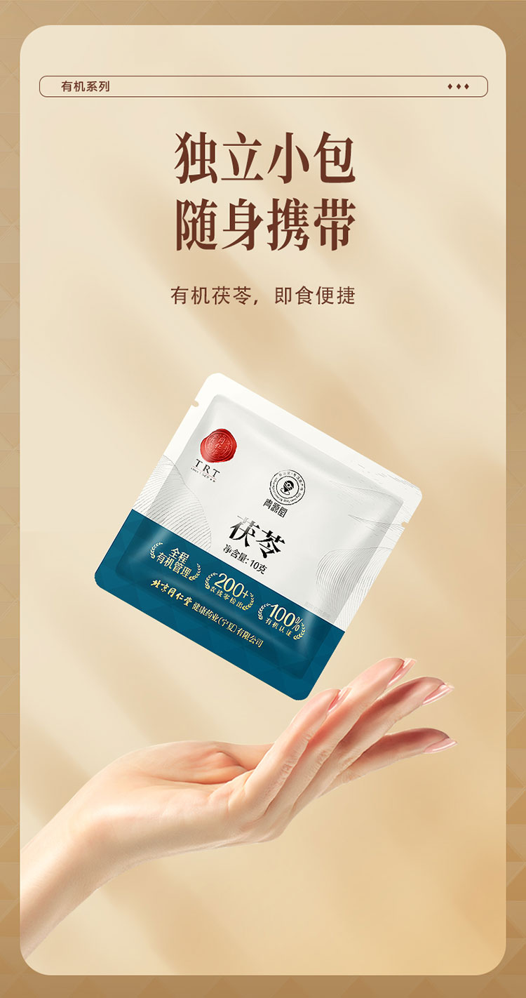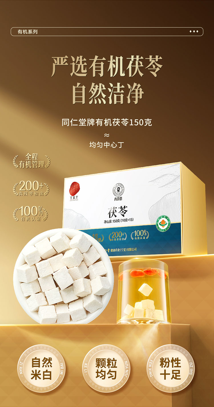【正宗同仁堂品牌】北京同仁堂 有机茯苓150克(10g*15包) 严选有机 自然洁净 块块均匀 中心丁 自然米白 粉性十足 SY