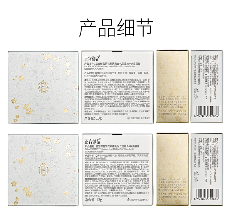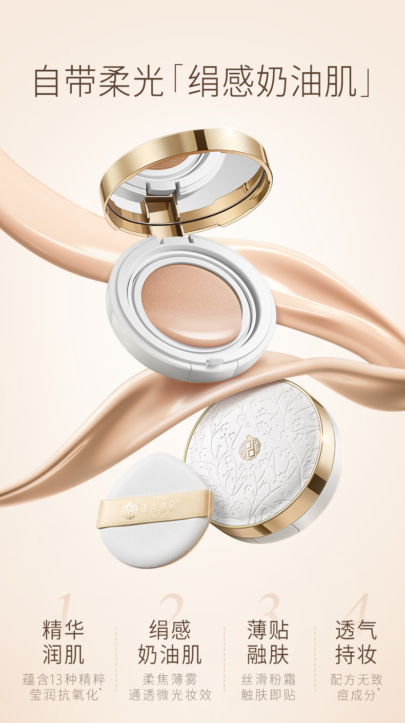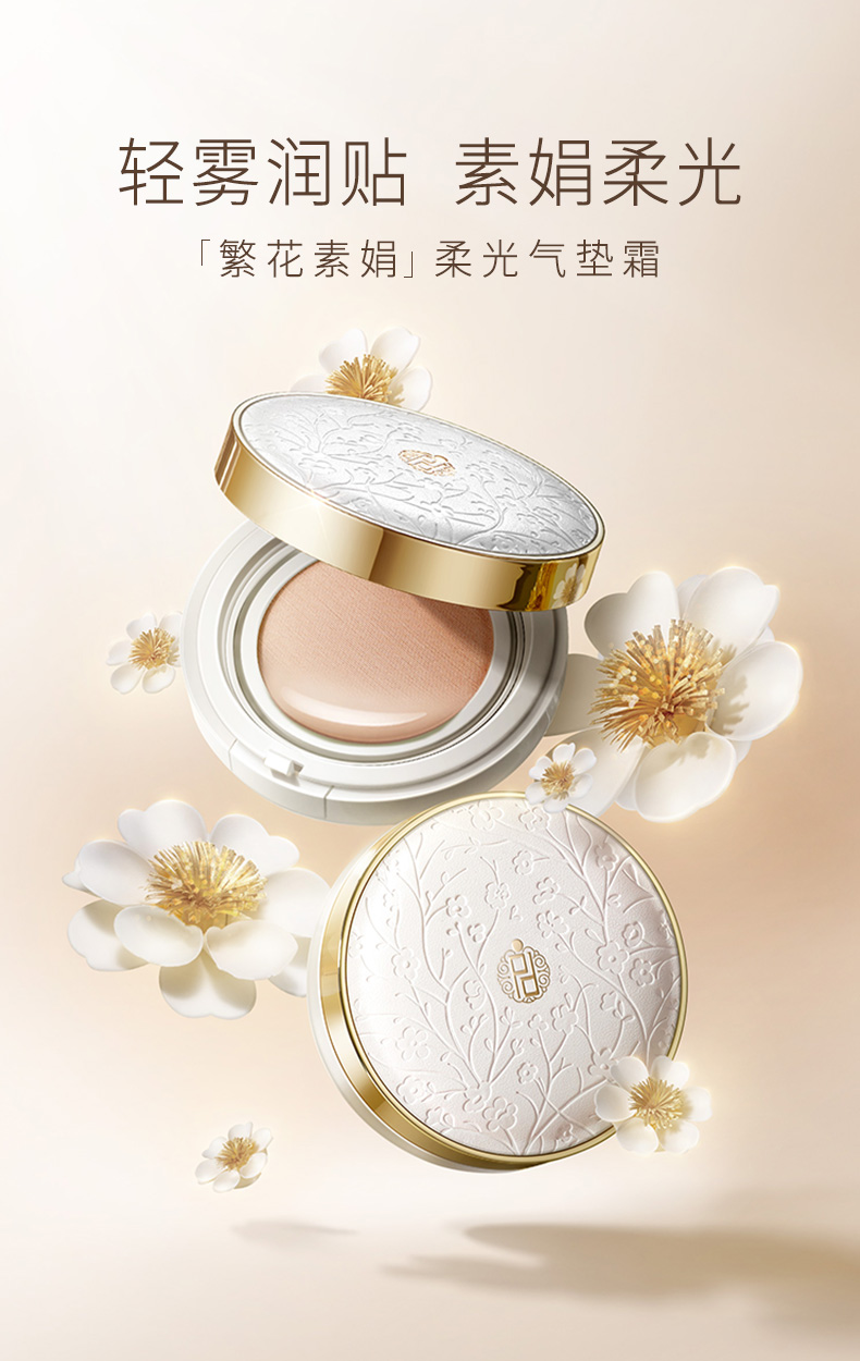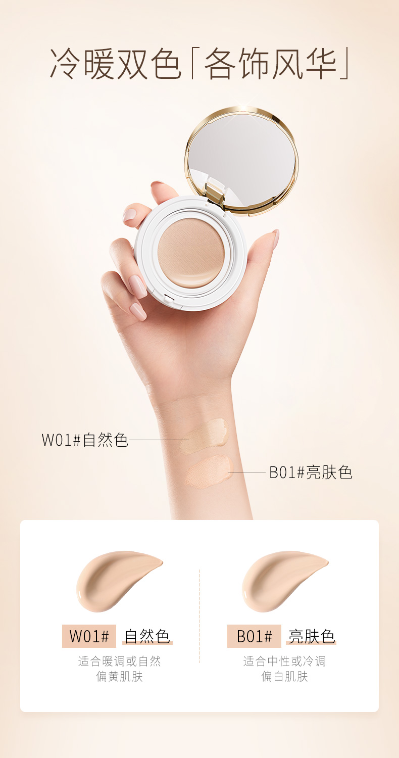 正宫御品 【送替换装+遮瑕液 轻薄不卡粉】繁花素娟柔光皮革气垫霜 13g