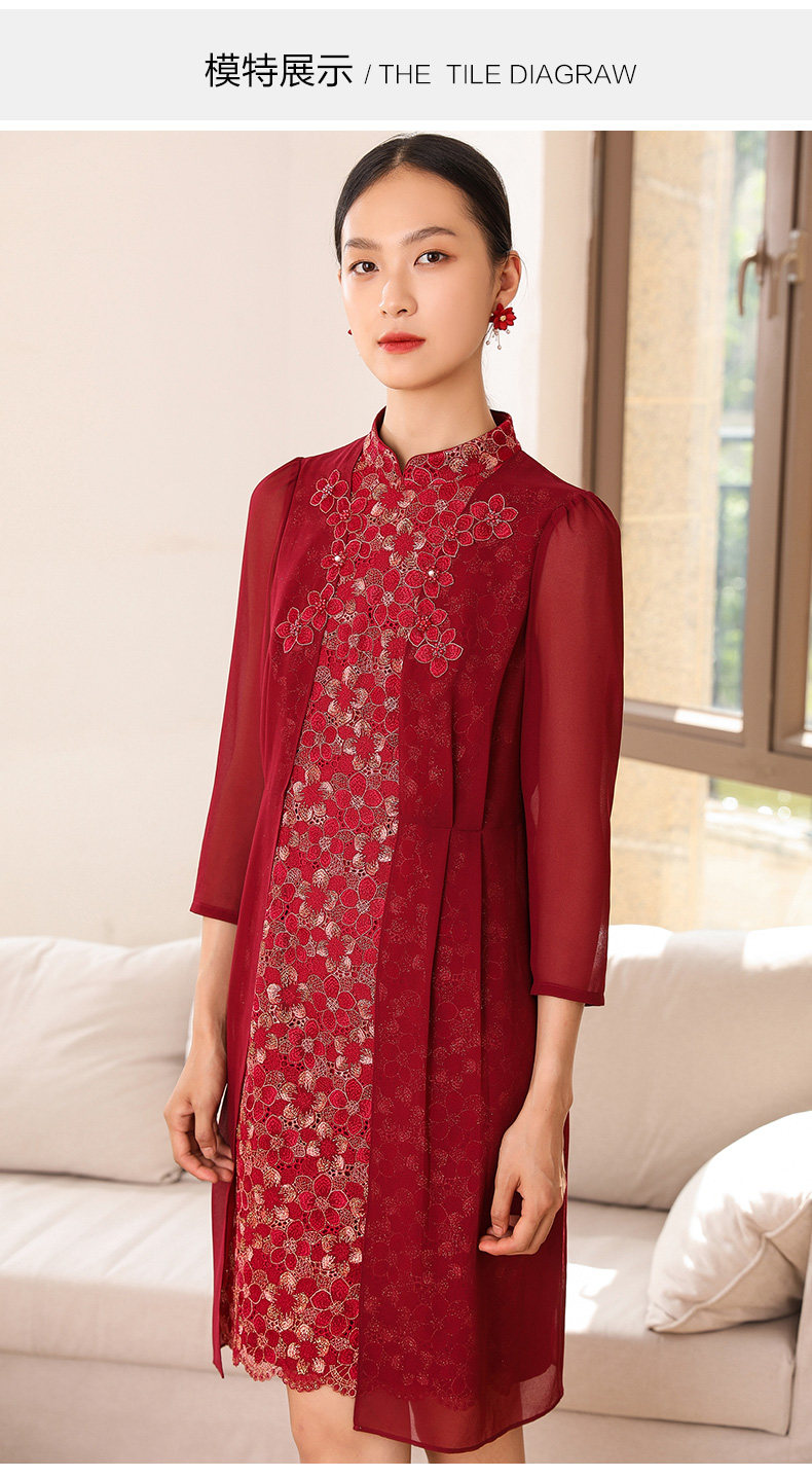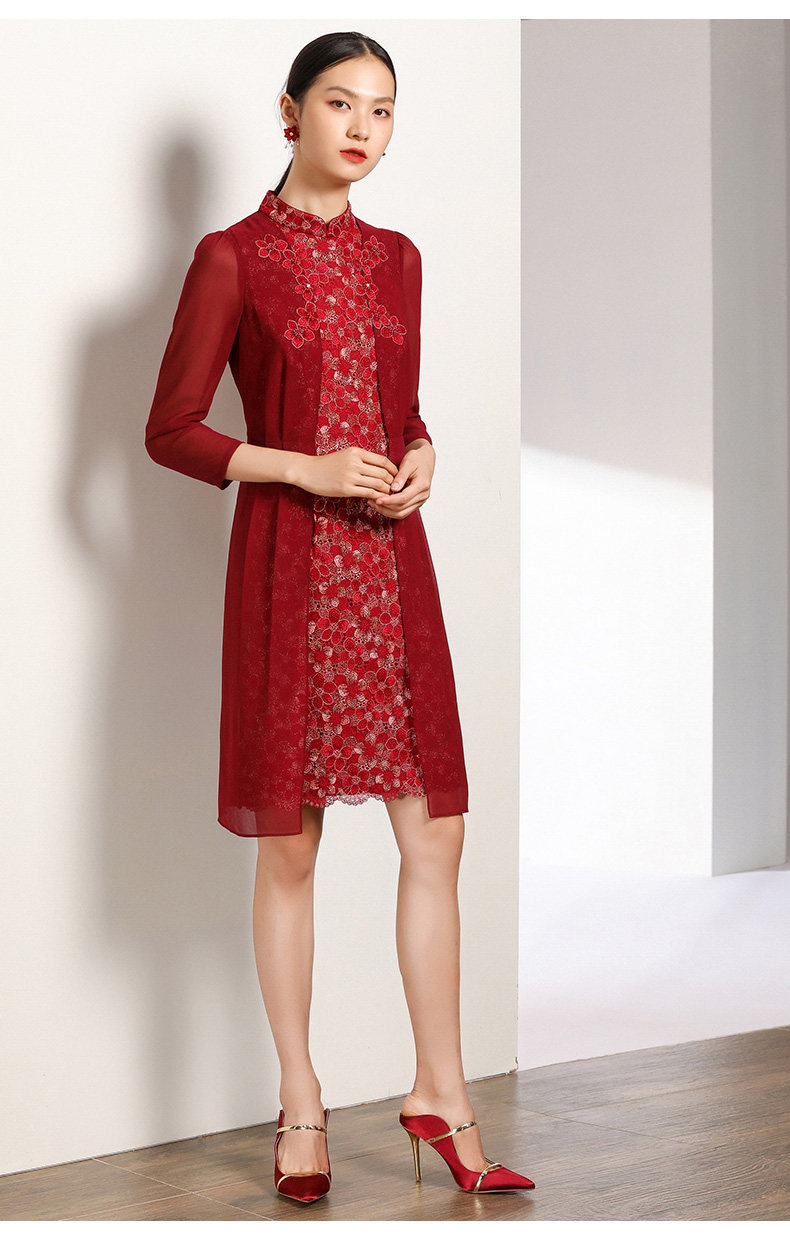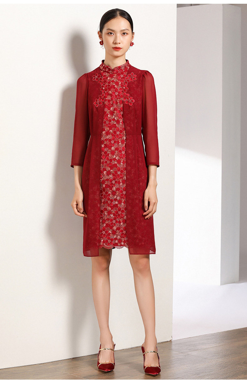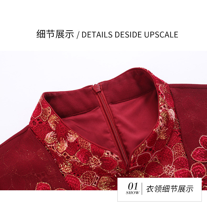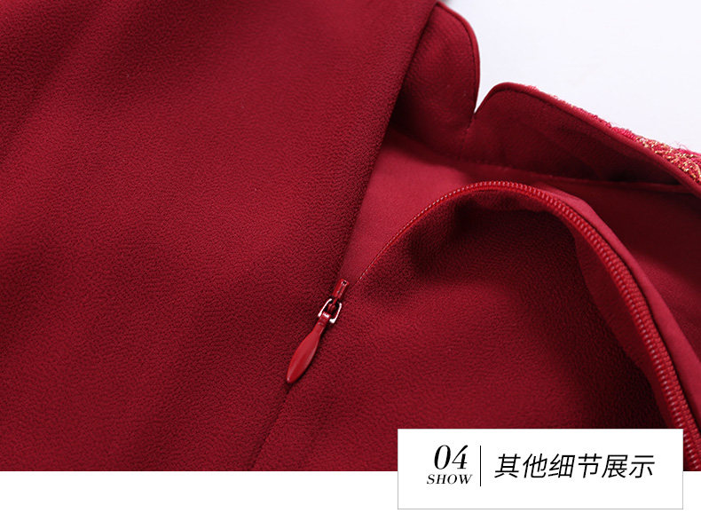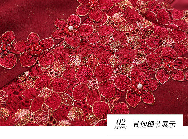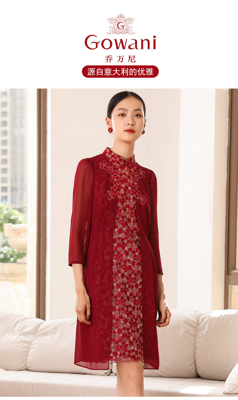 乔万尼秋装红装礼服刺绣花朵连衣裙中长款EN3E366