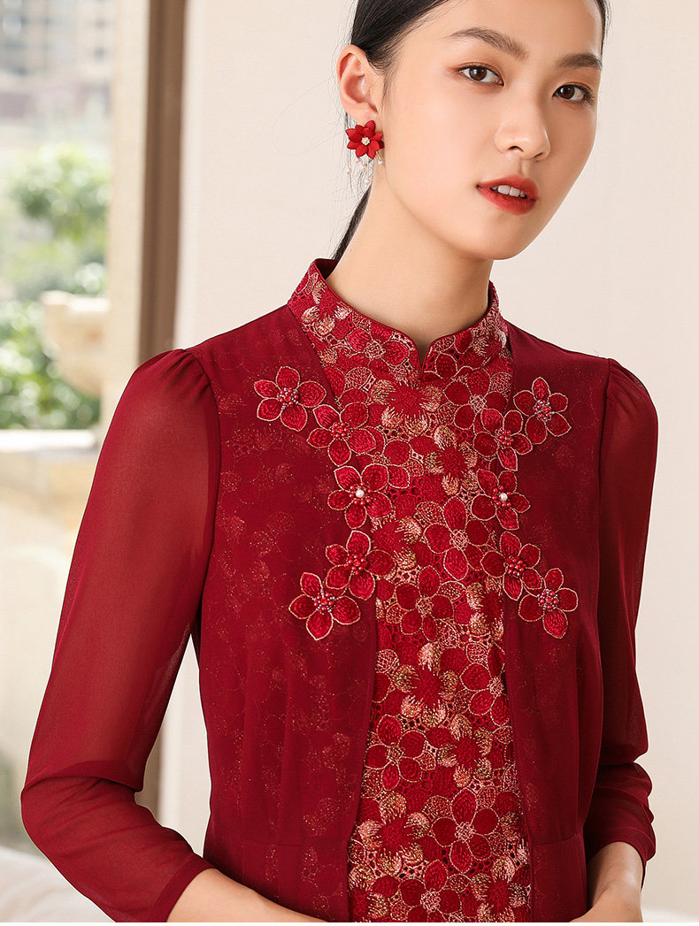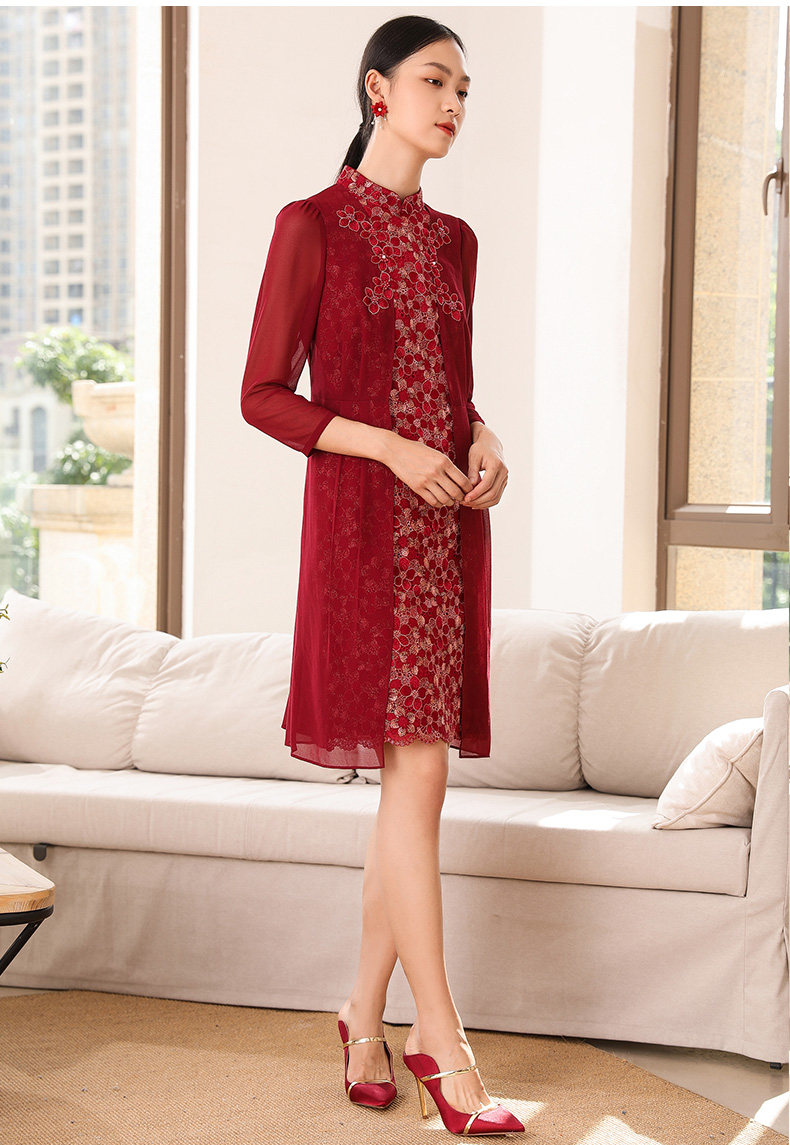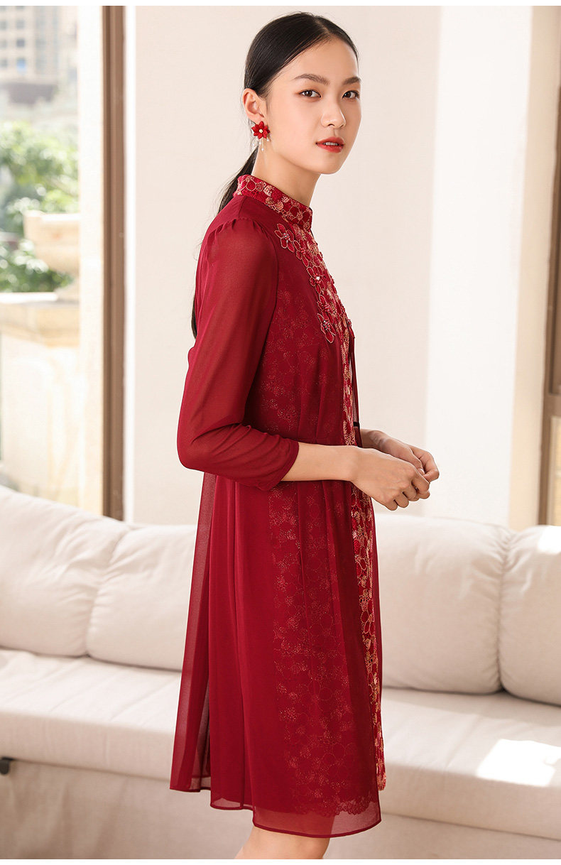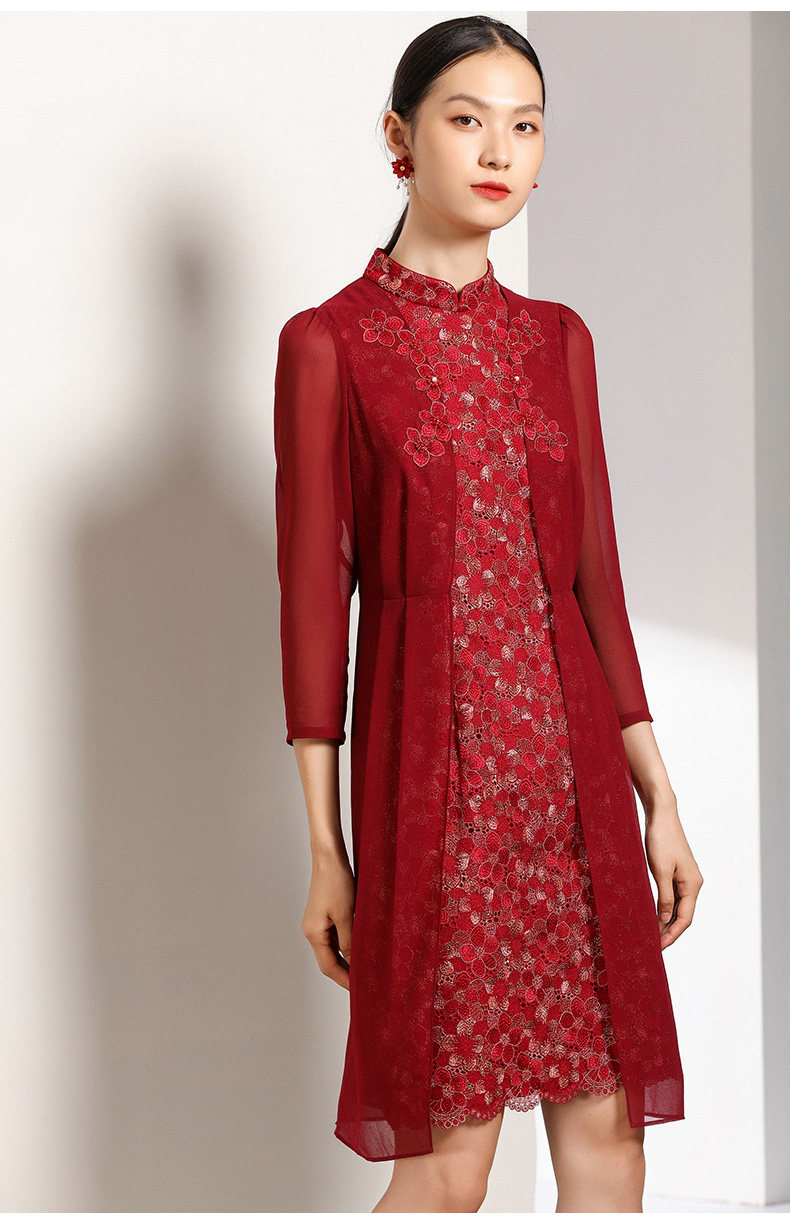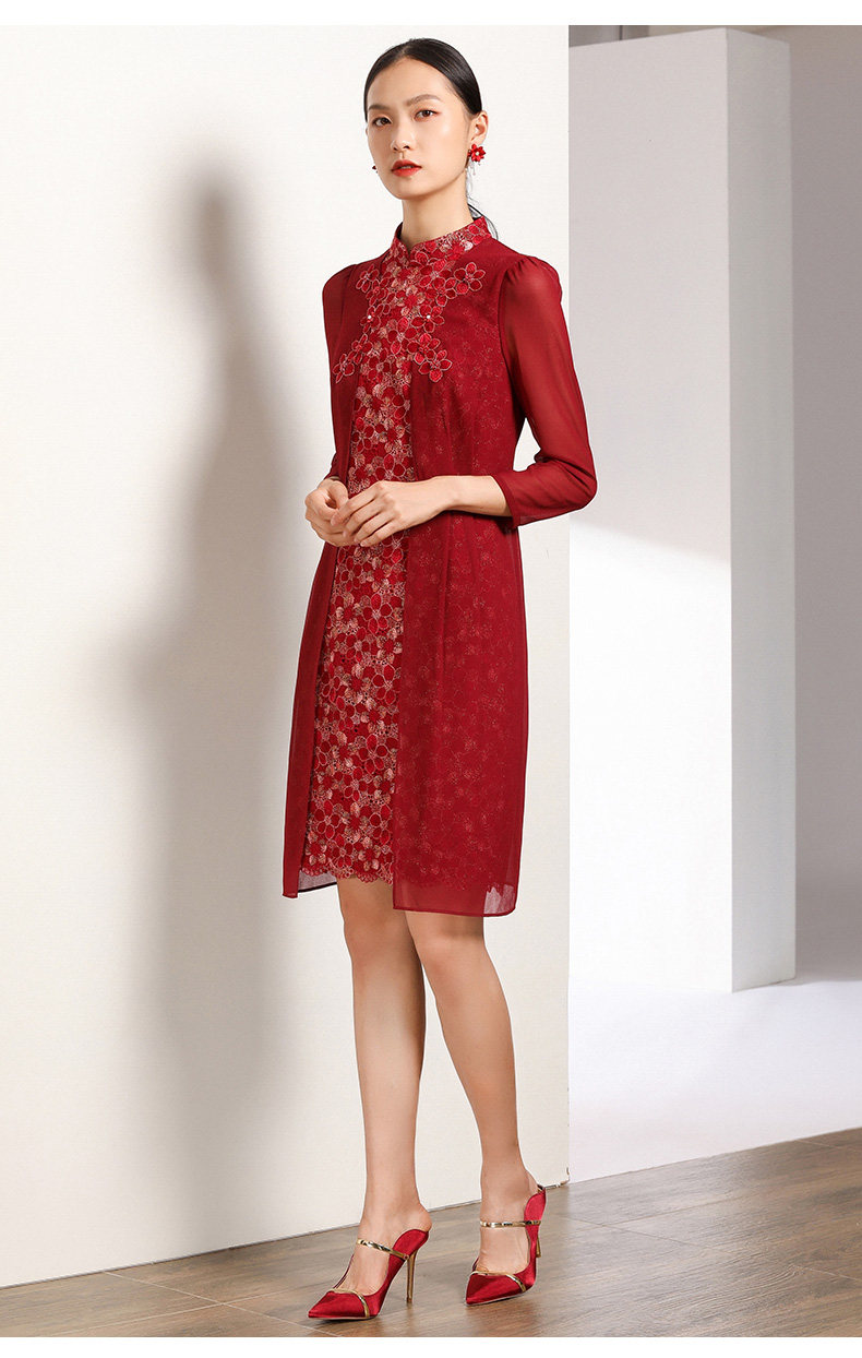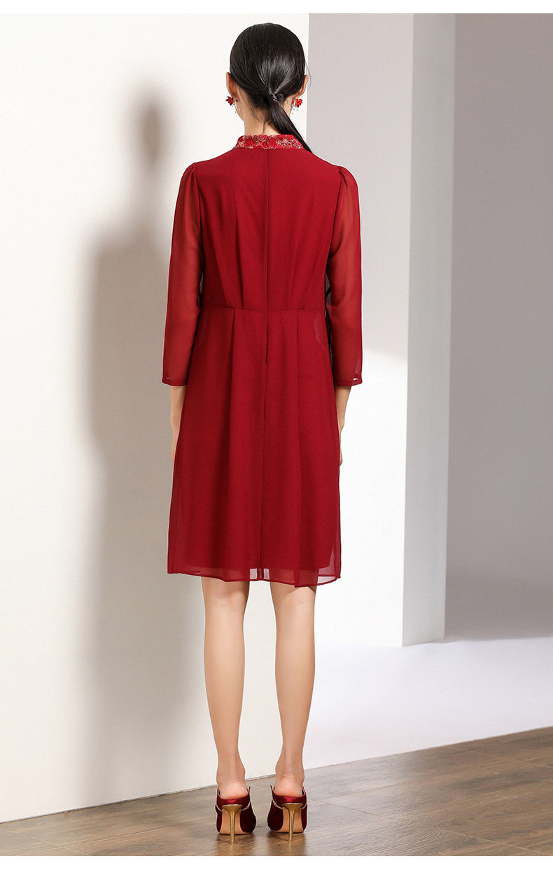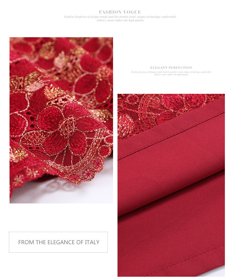 乔万尼秋装红装礼服刺绣花朵连衣裙中长款EN3E366