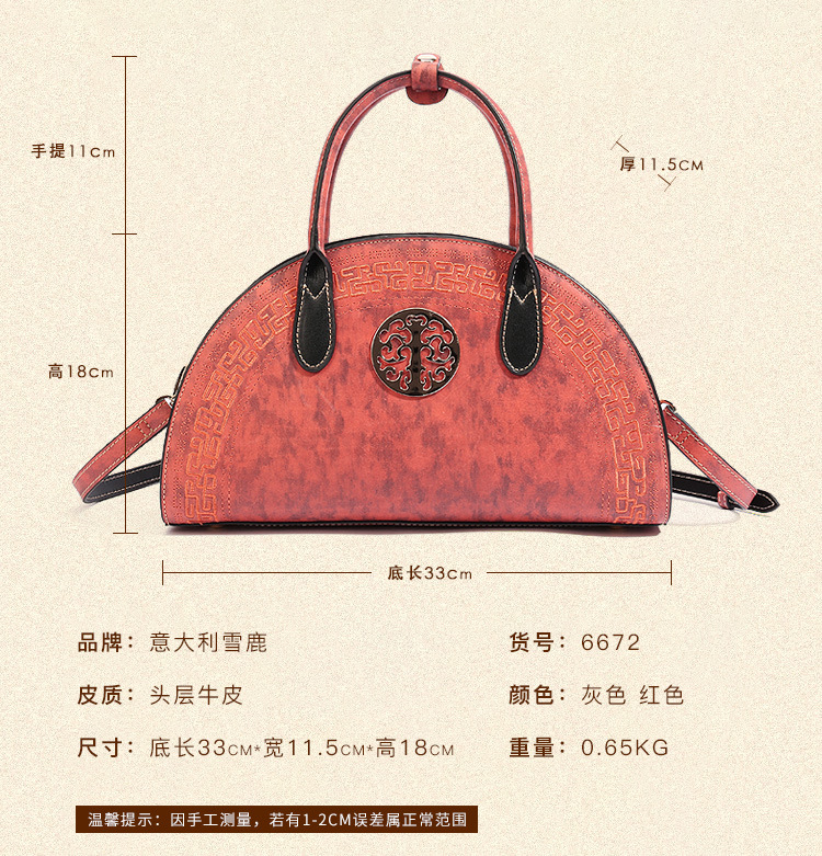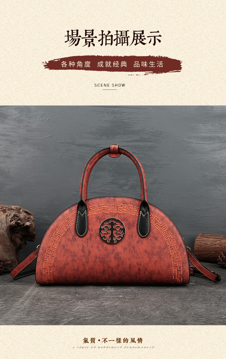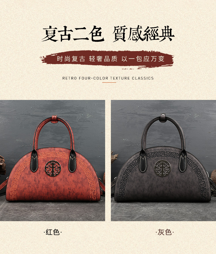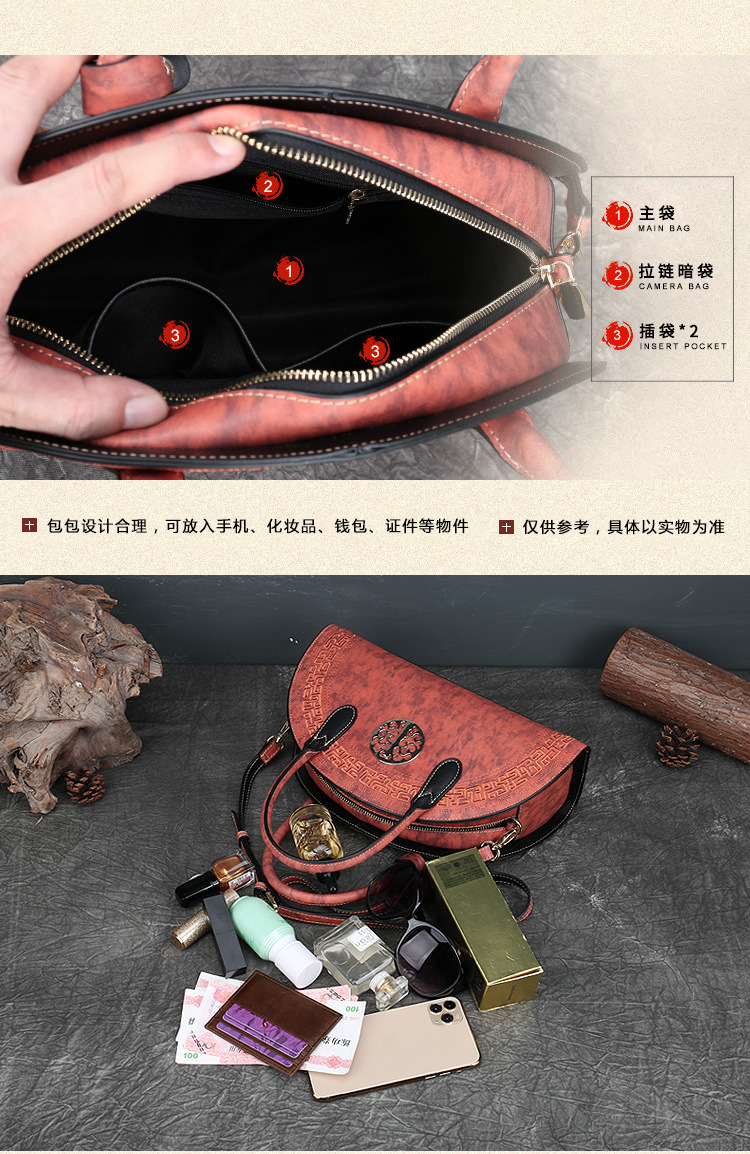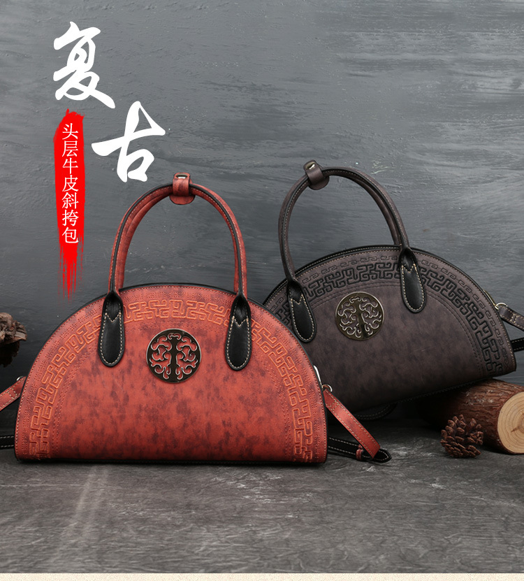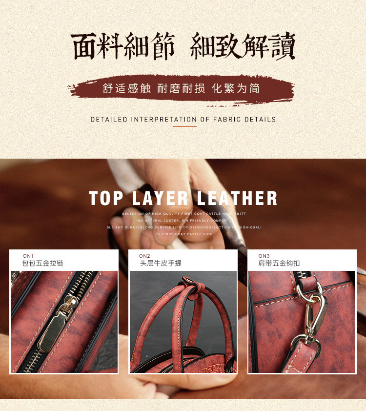 ZLPJ6672新款复古风头层牛皮手提单肩斜挎包