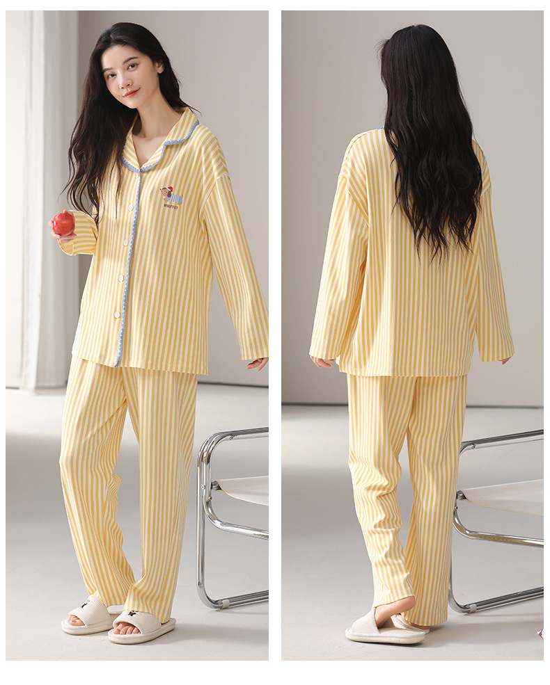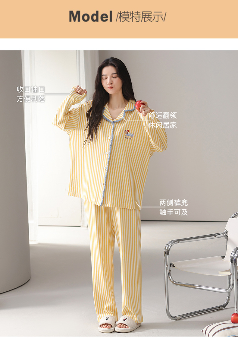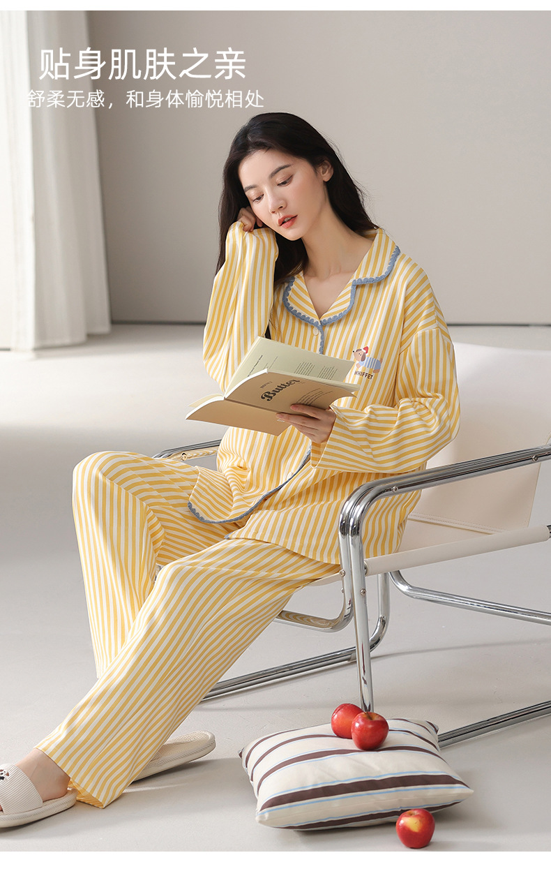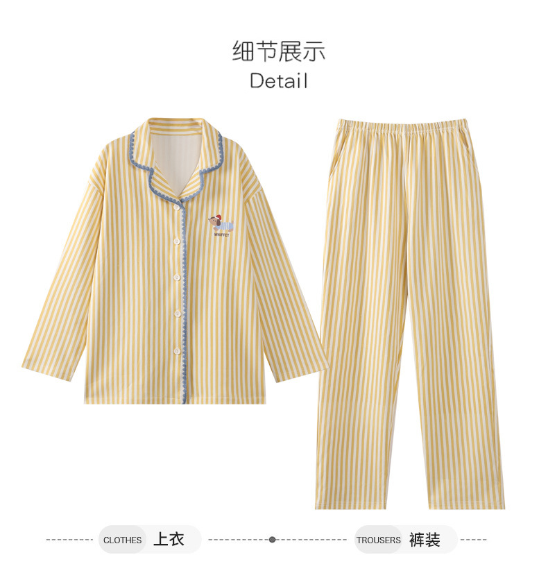 雀说纯棉睡衣女春秋季长袖开衫翻领家居服套装简约休闲可外穿ALW02G412345