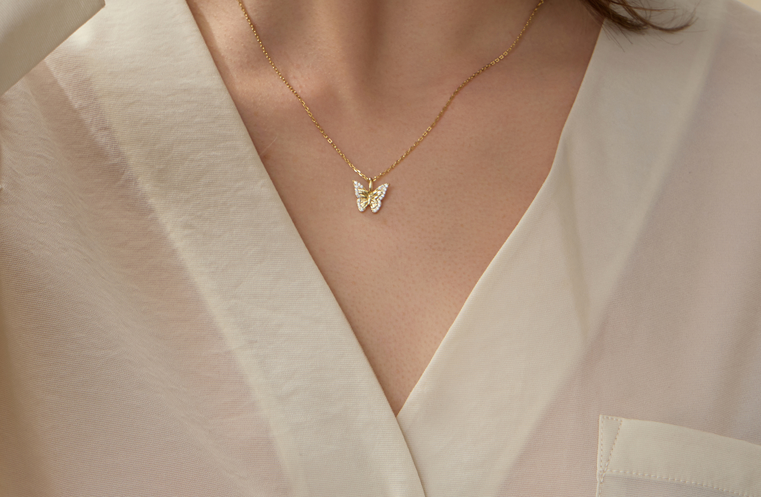 ARSIS银饰|幸运符号系列 漫舞蝴蝶吊坠项链