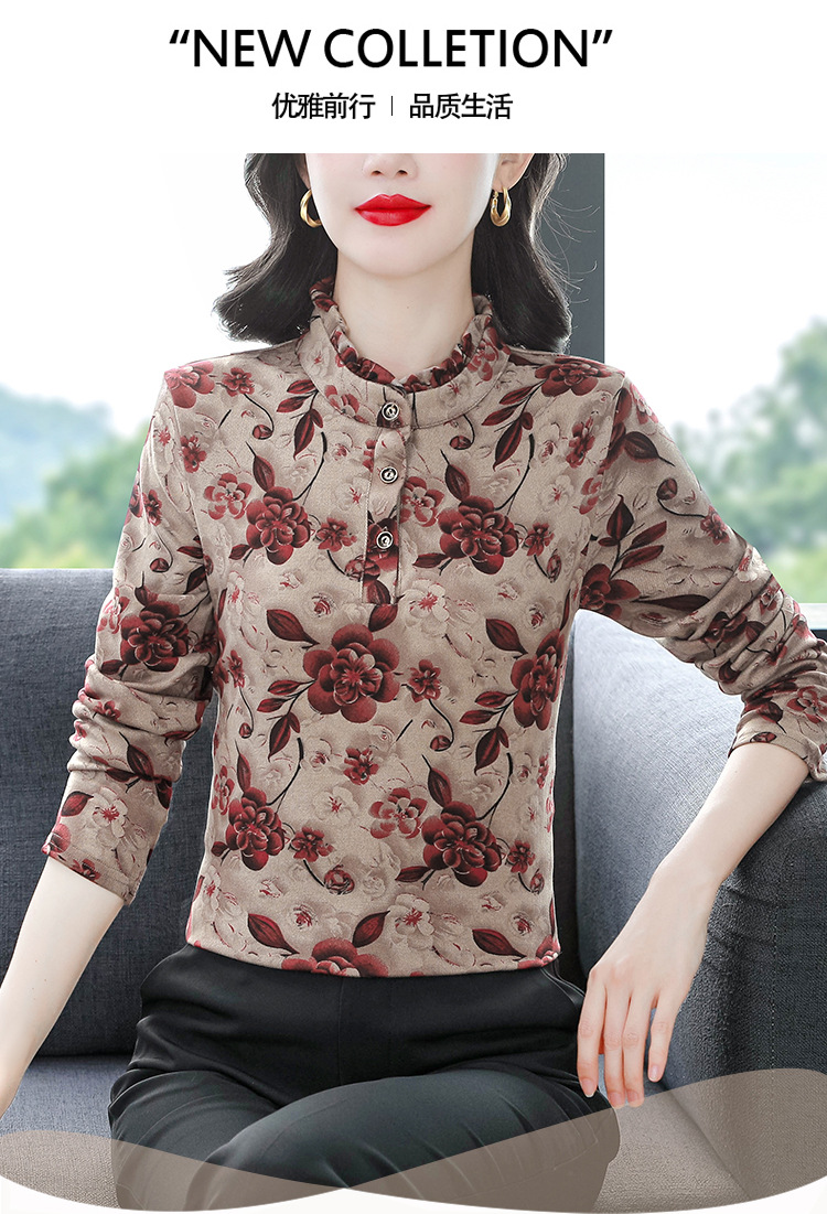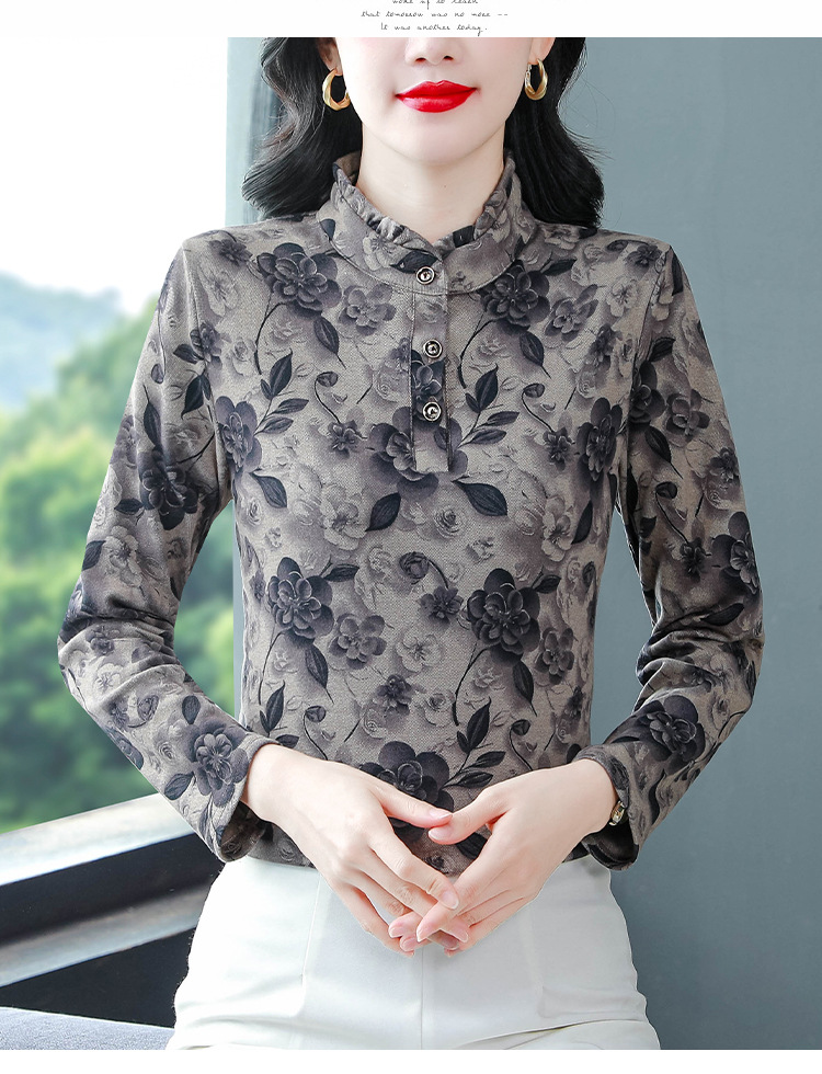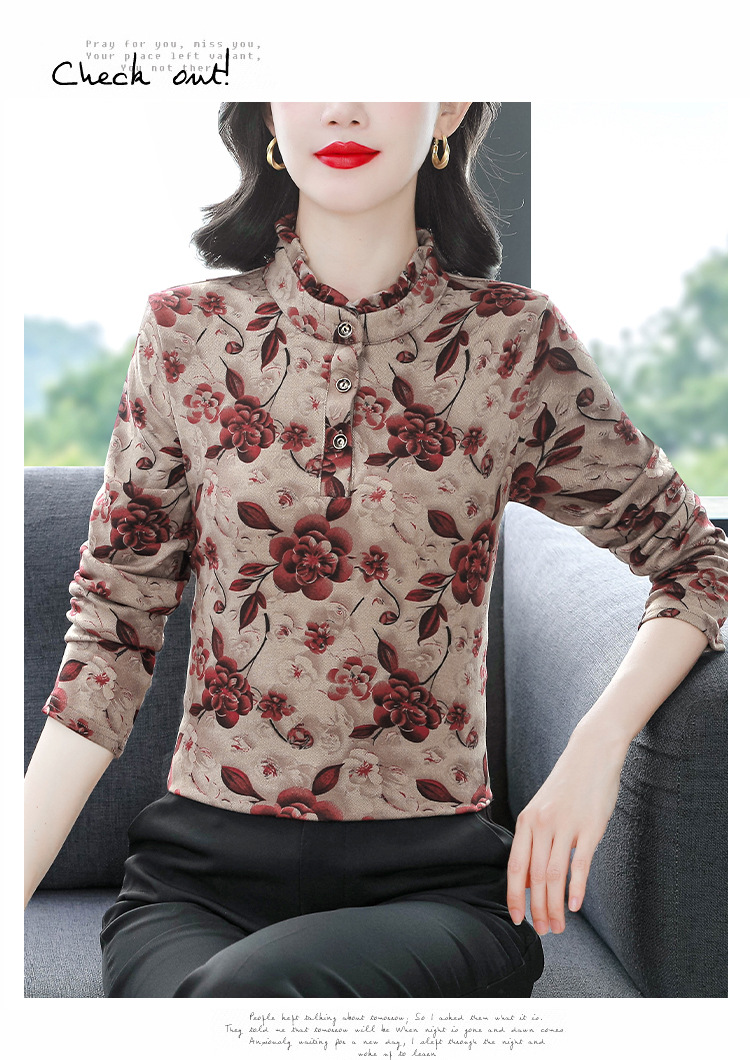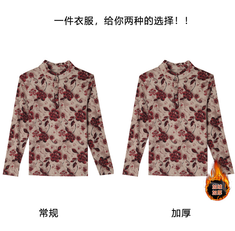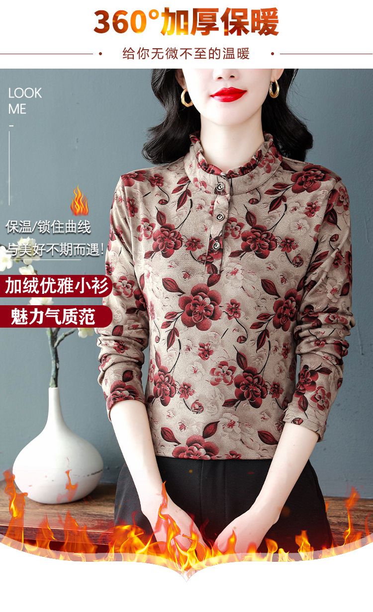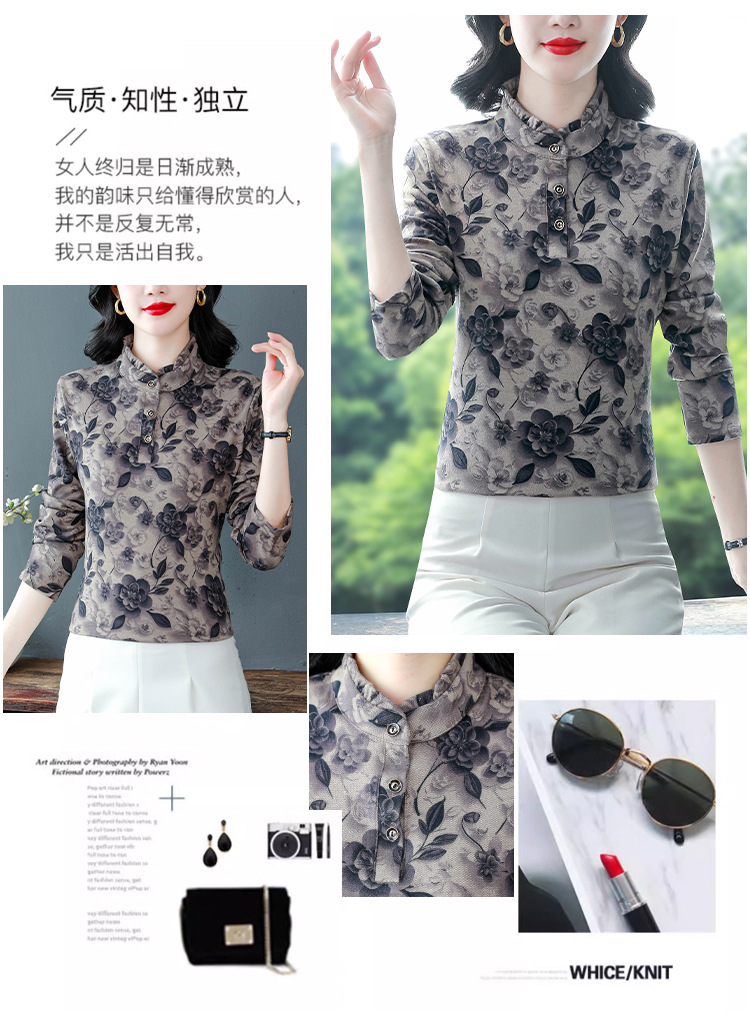 KQL B41N3208加厚碎花立领打底衫气质显瘦洋气上衣