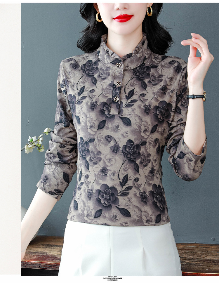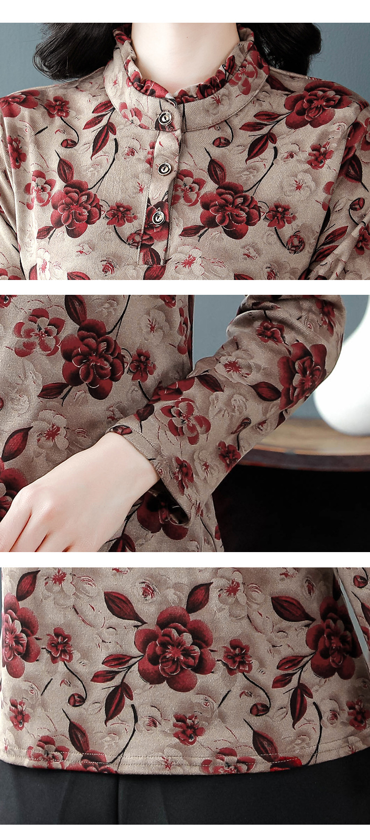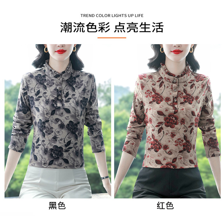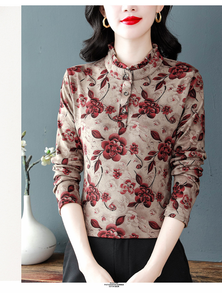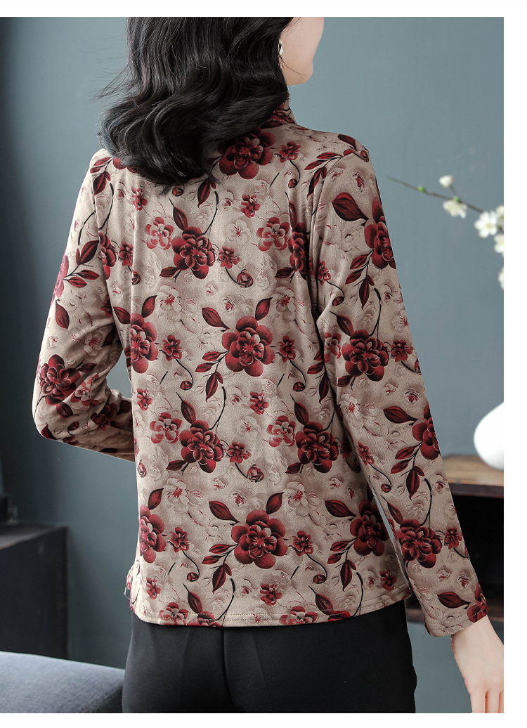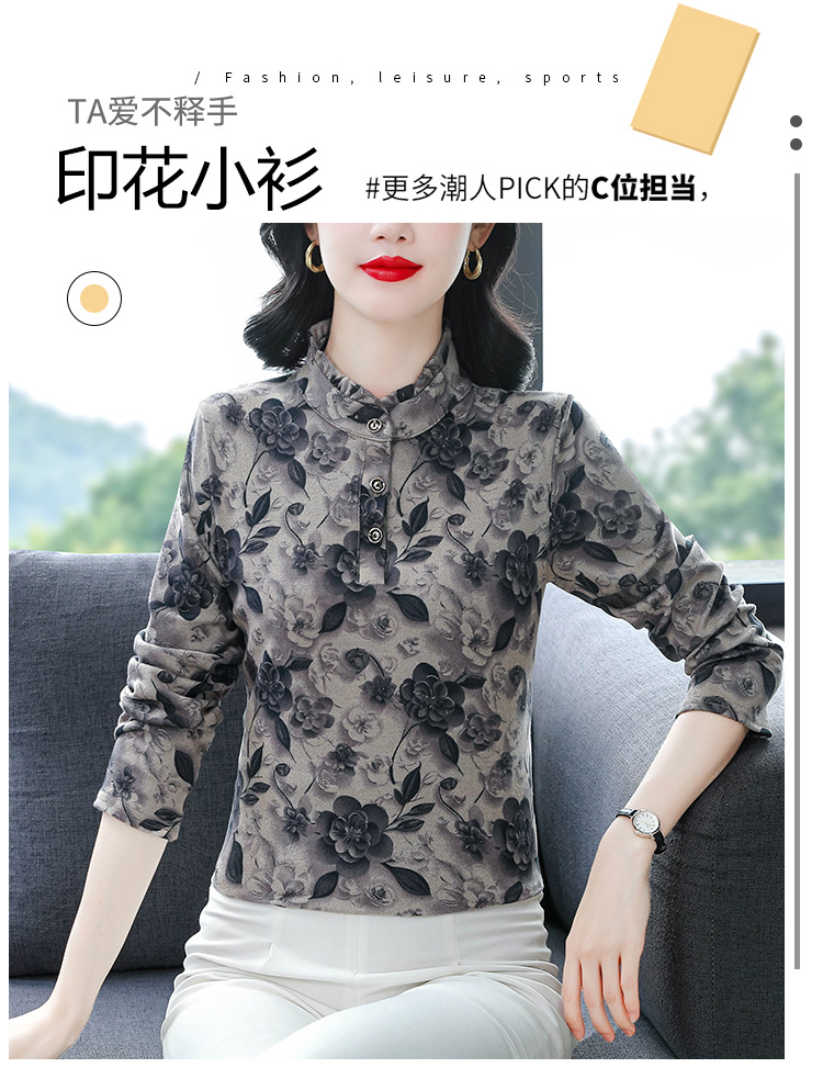 KQL B41N3208加厚碎花立领打底衫气质显瘦洋气上衣