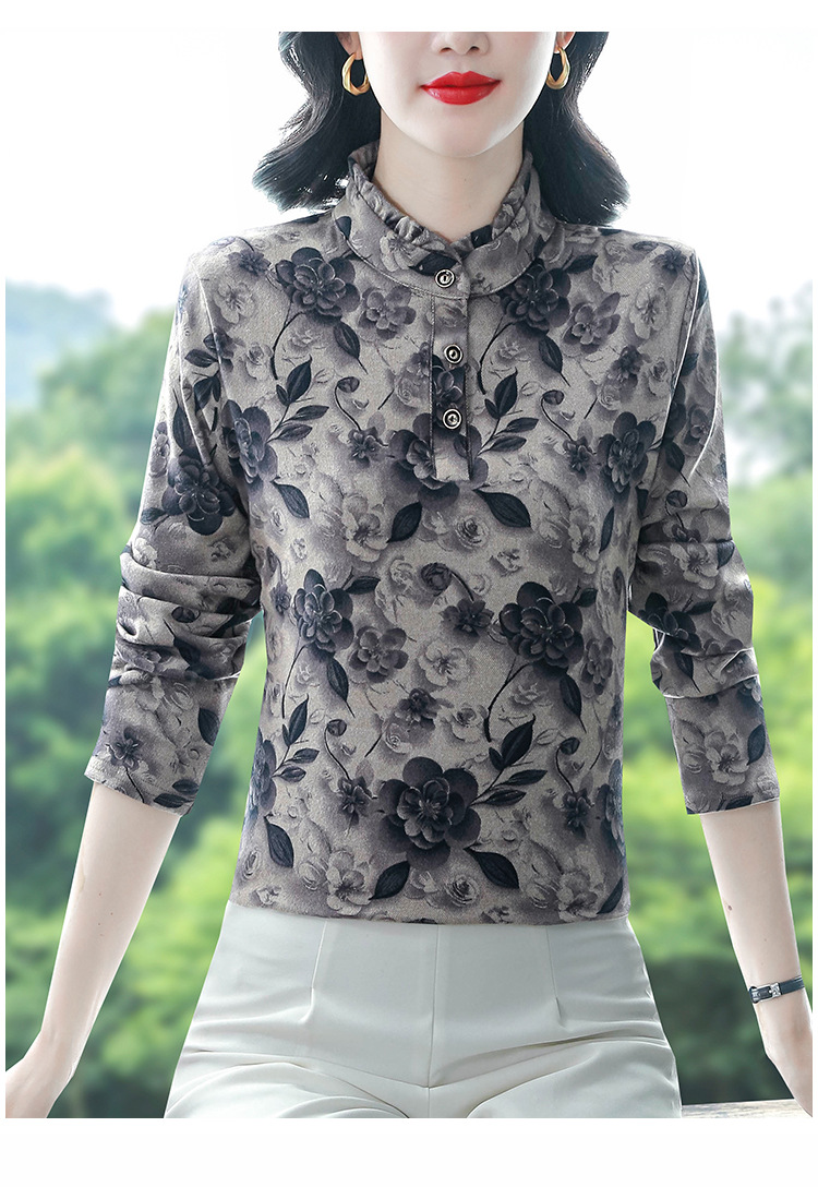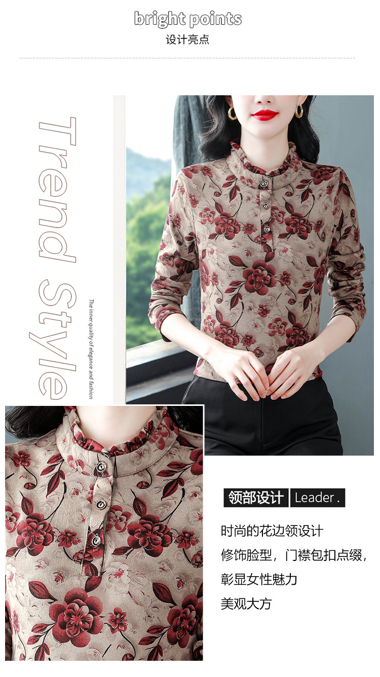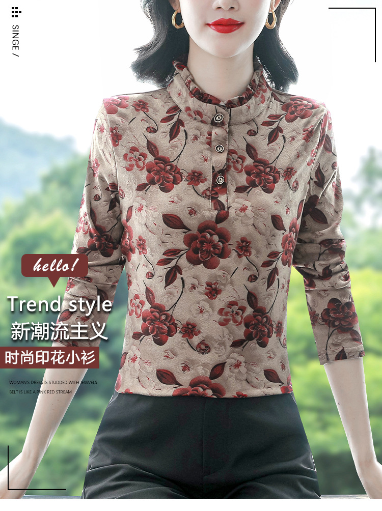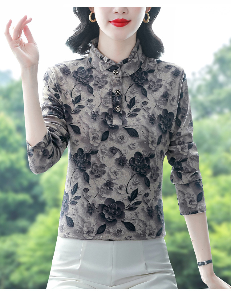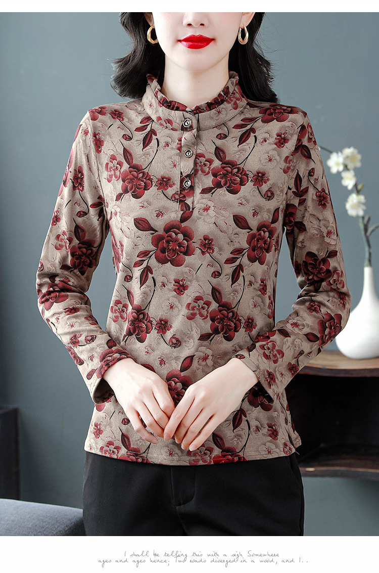 KQL B41N3208加厚碎花立领打底衫气质显瘦洋气上衣
