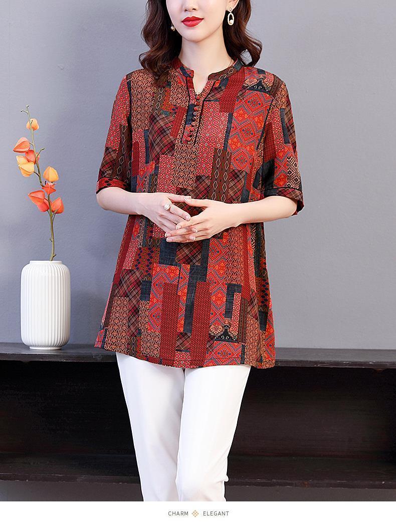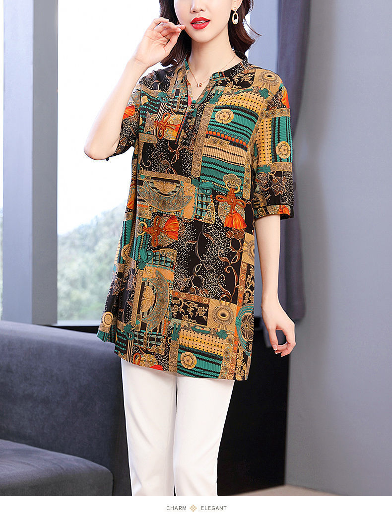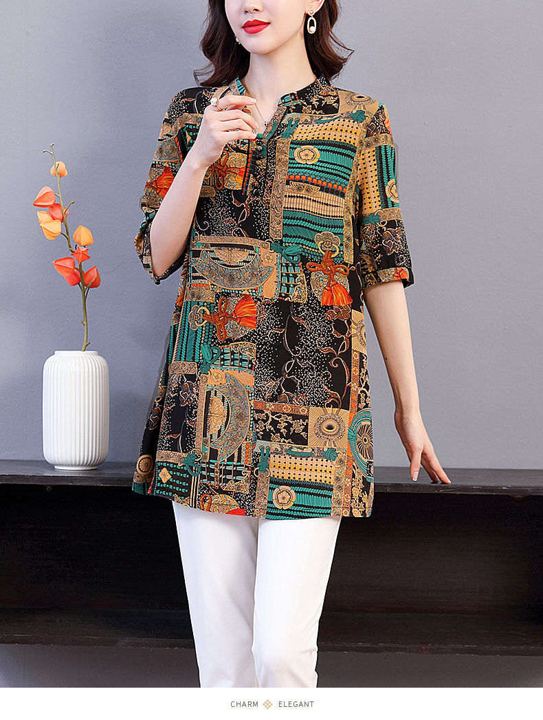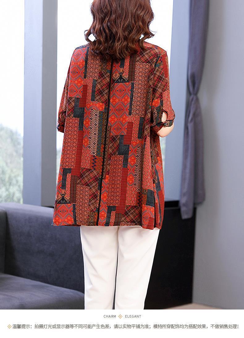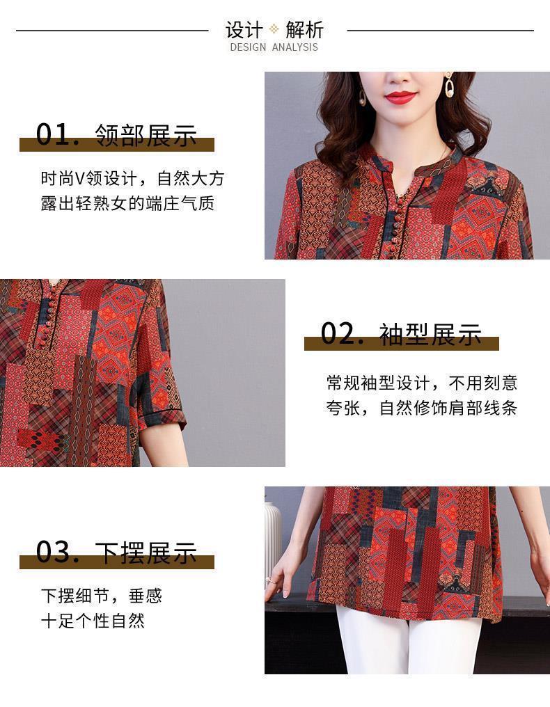 dp3104 胖妈妈时尚印花桑蚕丝中长款T恤2022夏季新款中老年宽松遮肚上衣