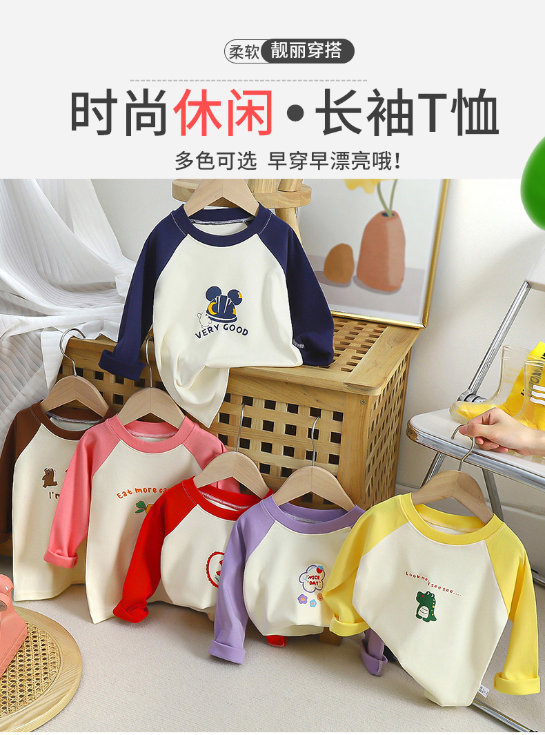 【时尚休闲,长袖T恤,多色可选,早穿早漂亮哦~】儿童长袖t恤纯棉 秋季新款 男童衣服打底衣 女童服装打底衫童装-QQ