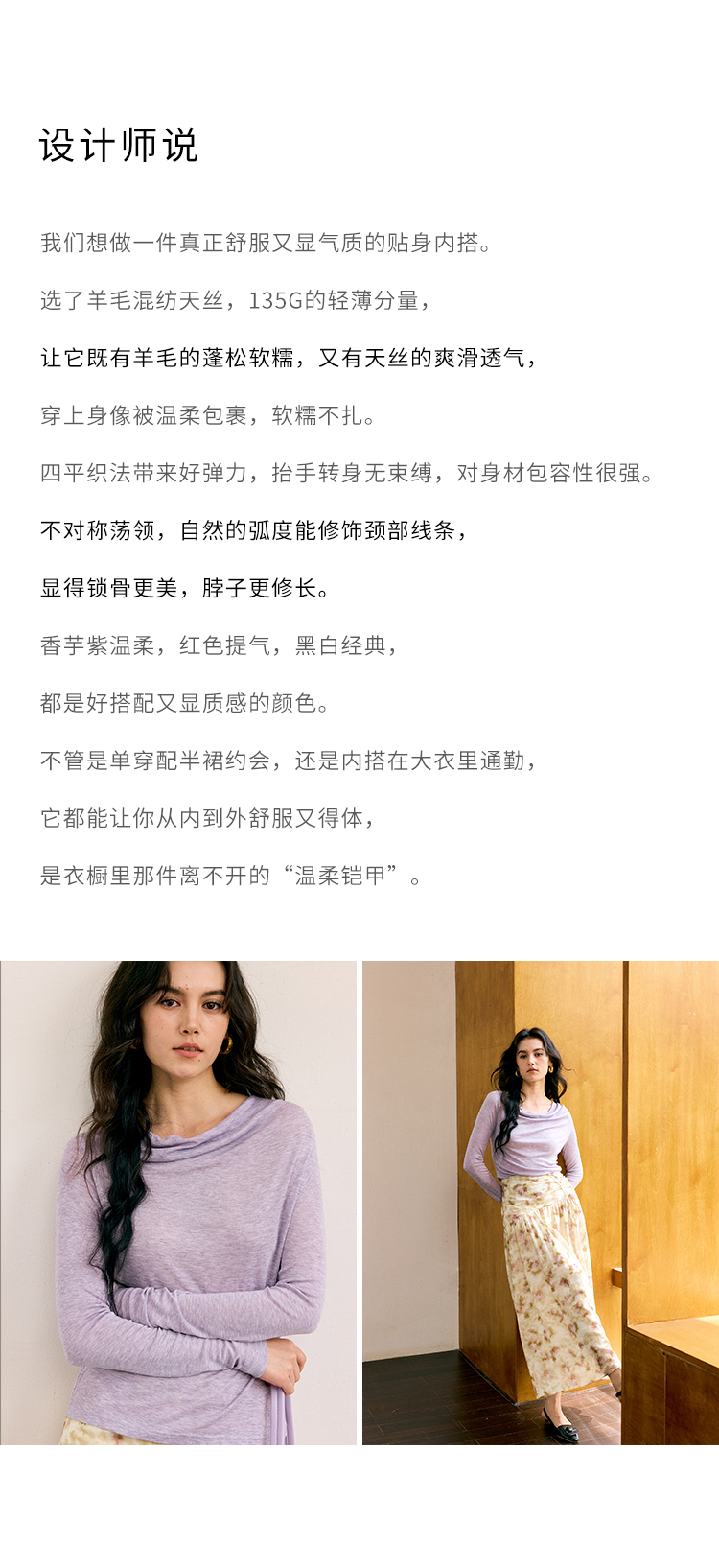HeyDress荡领天丝羊毛打底衫
