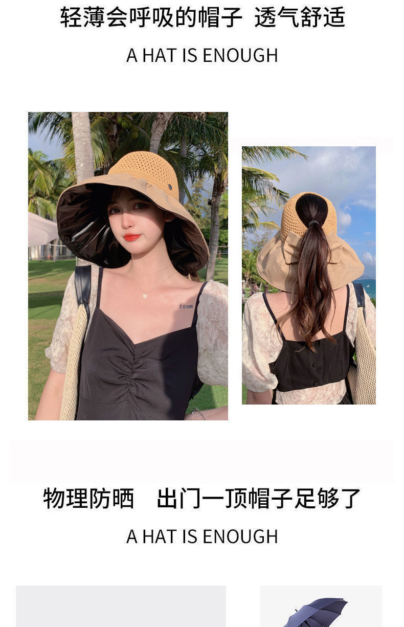 【多色可选,随心而搭!】黑胶防晒遮阳帽夏季女韩版大帽檐,可折叠渔夫帽防紫外线太阳帽子女,各种搭配随性所欲,简约单色凹出不同造型-QQ