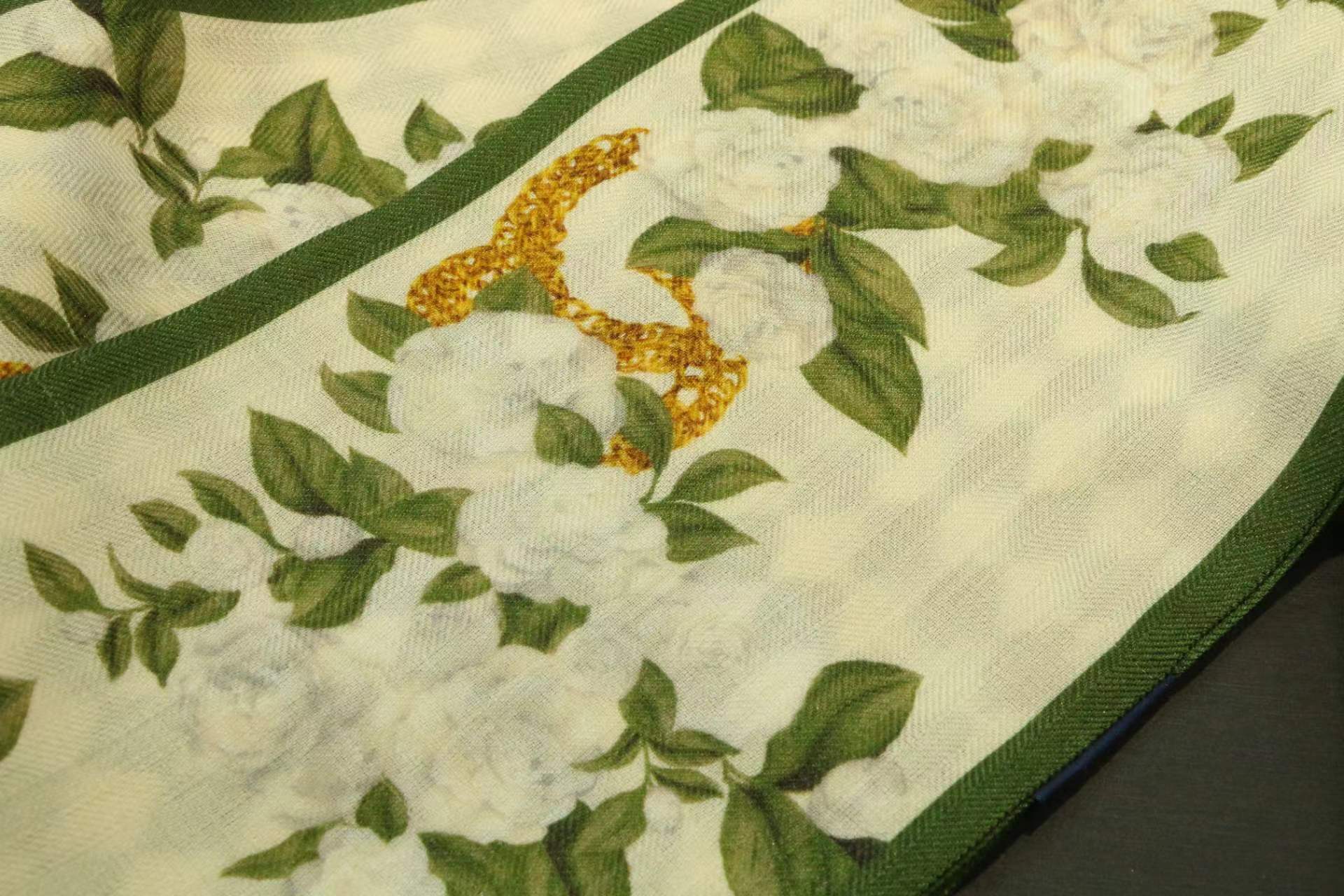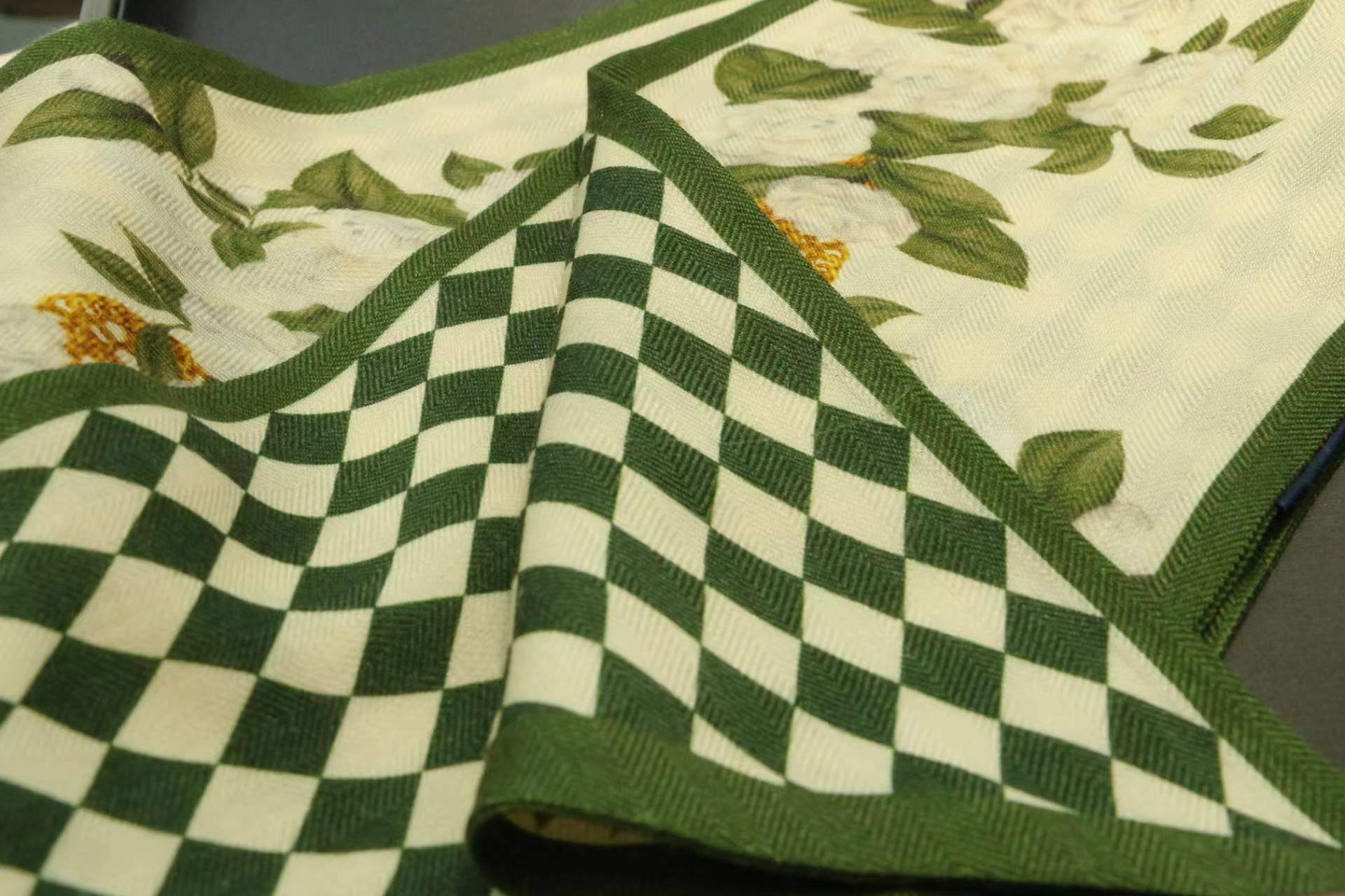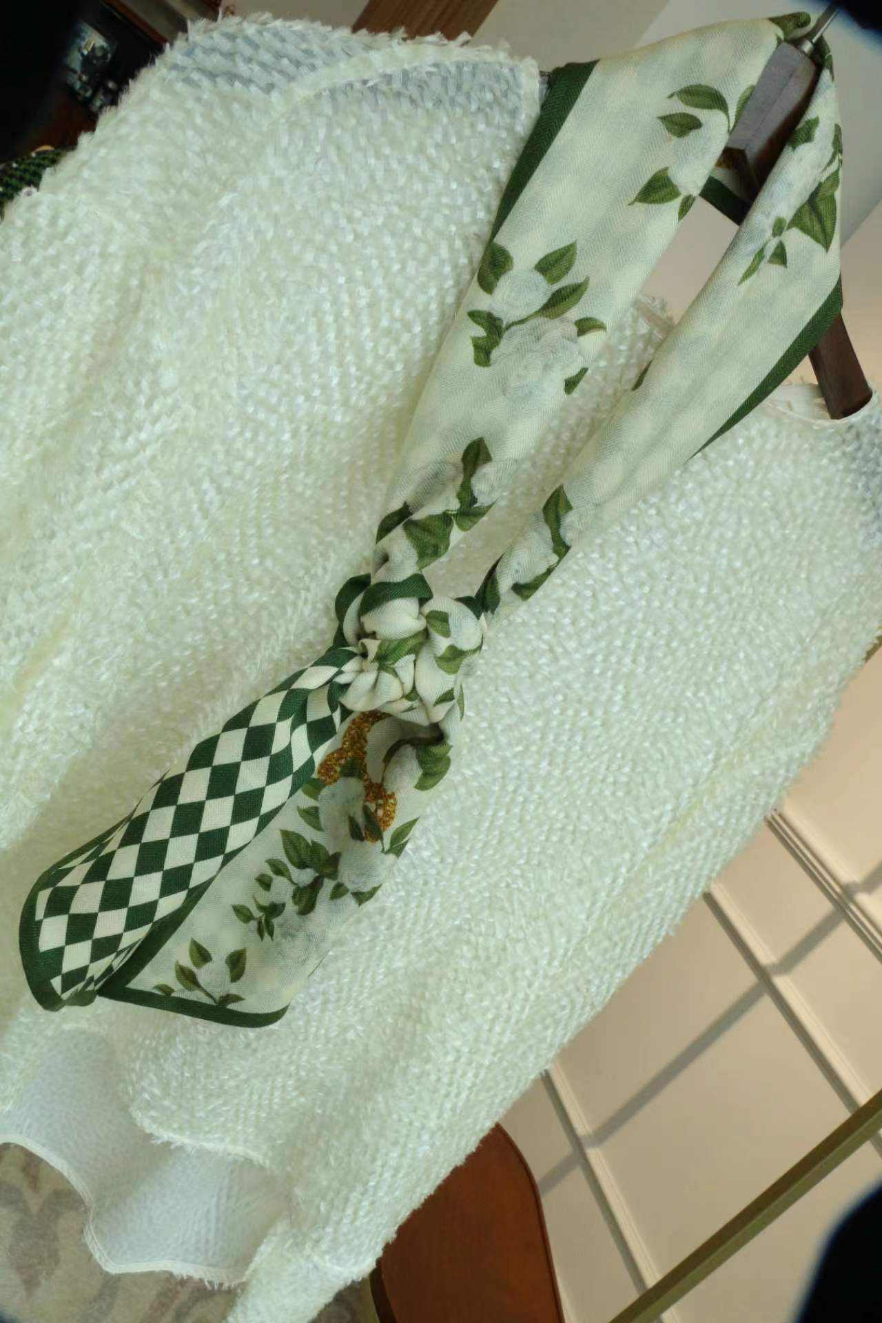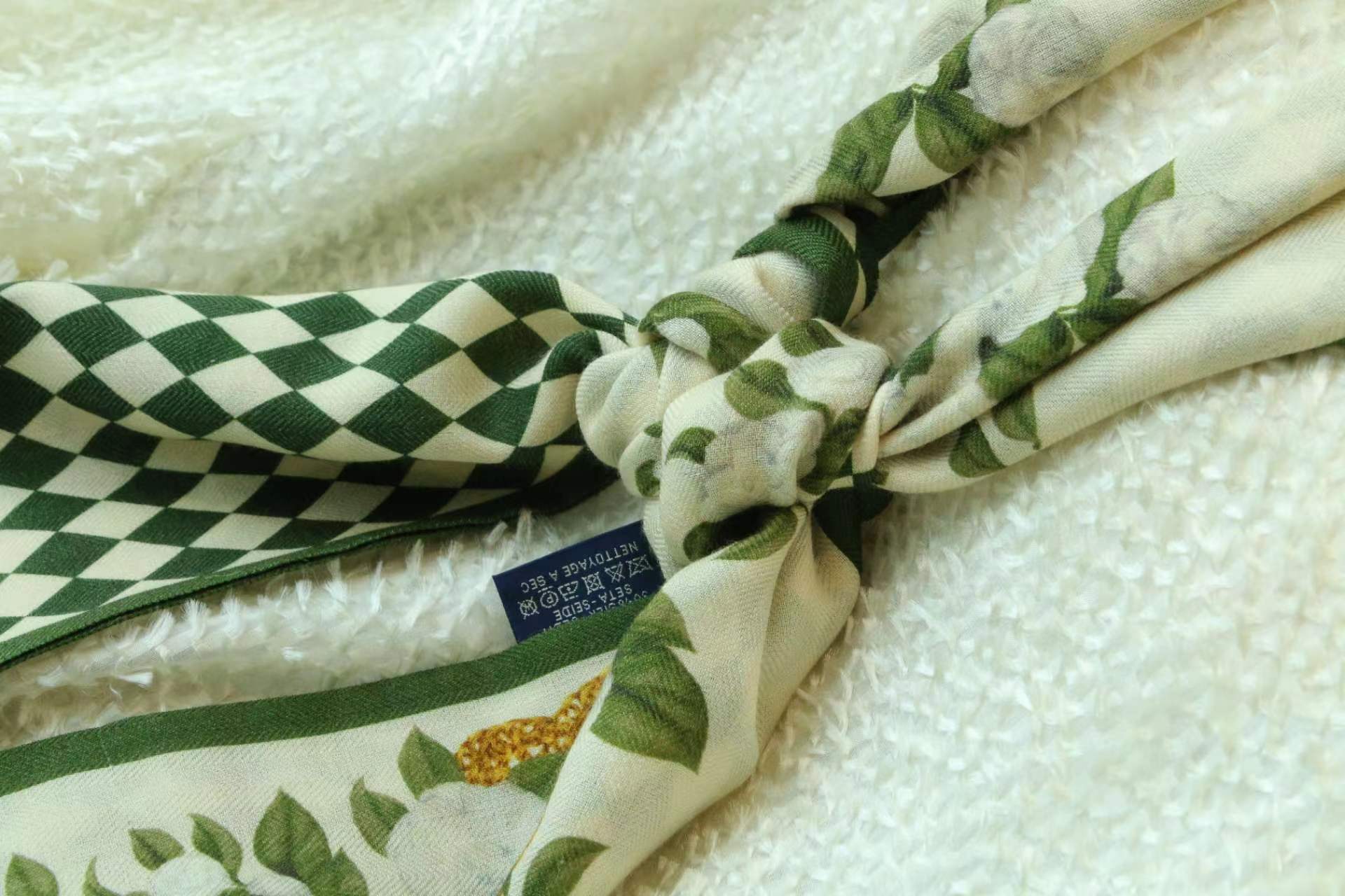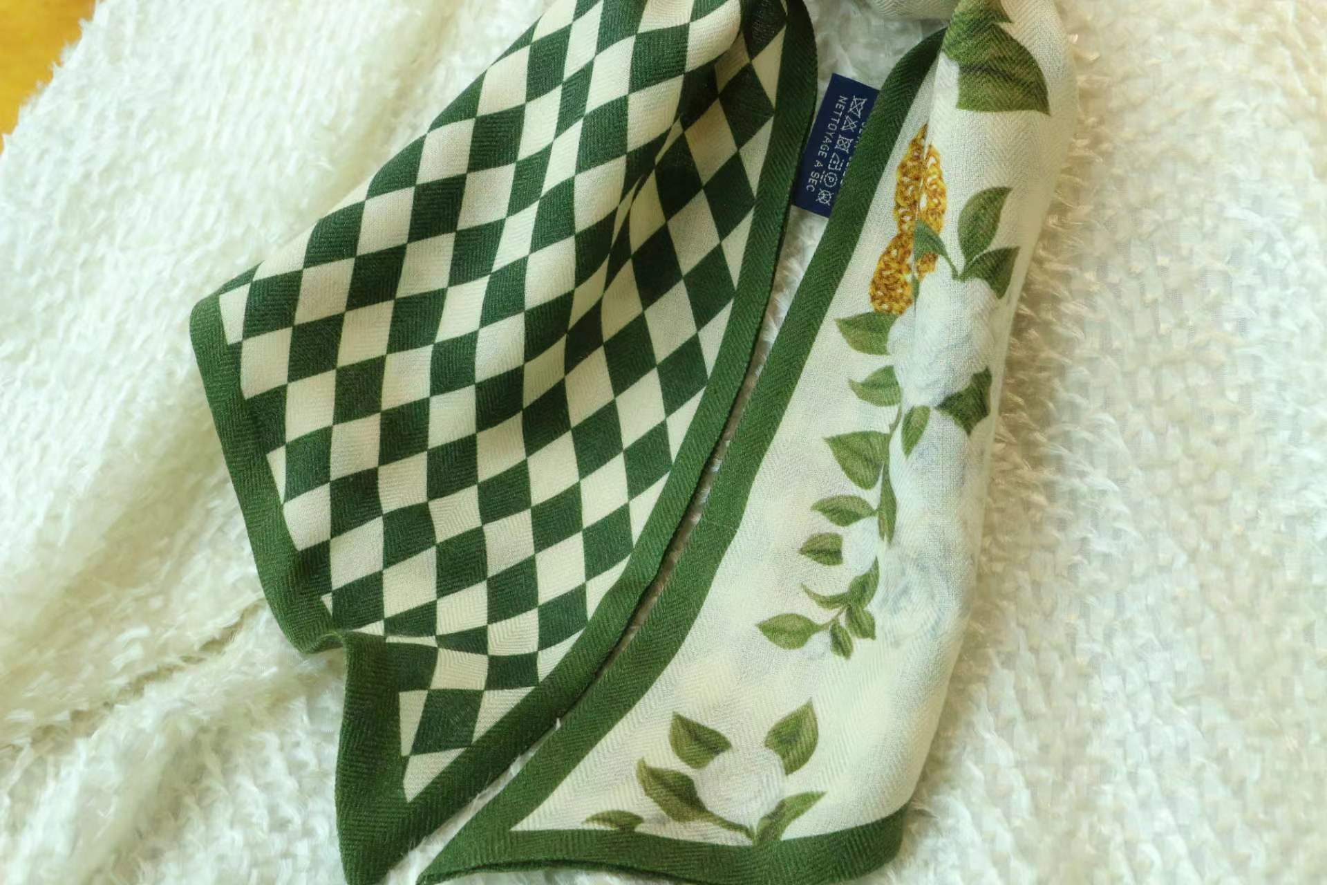 搭配了黑贝大溪地黑珍珠蜻蜓胸花,低调奢华。中间一抹绿宝,很好的呼应了丝巾的绿色。