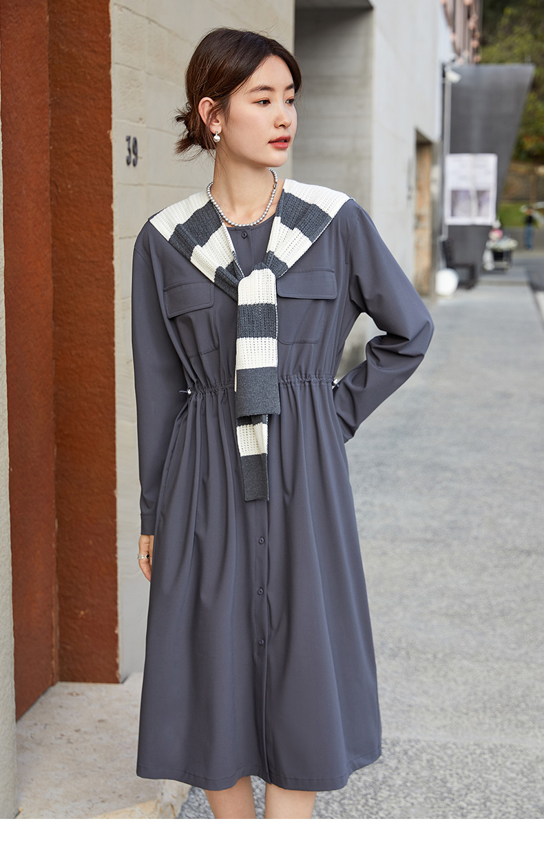 优雅进阶!灰调衬衫连衣裙,搭配撞色披肩尽显格调