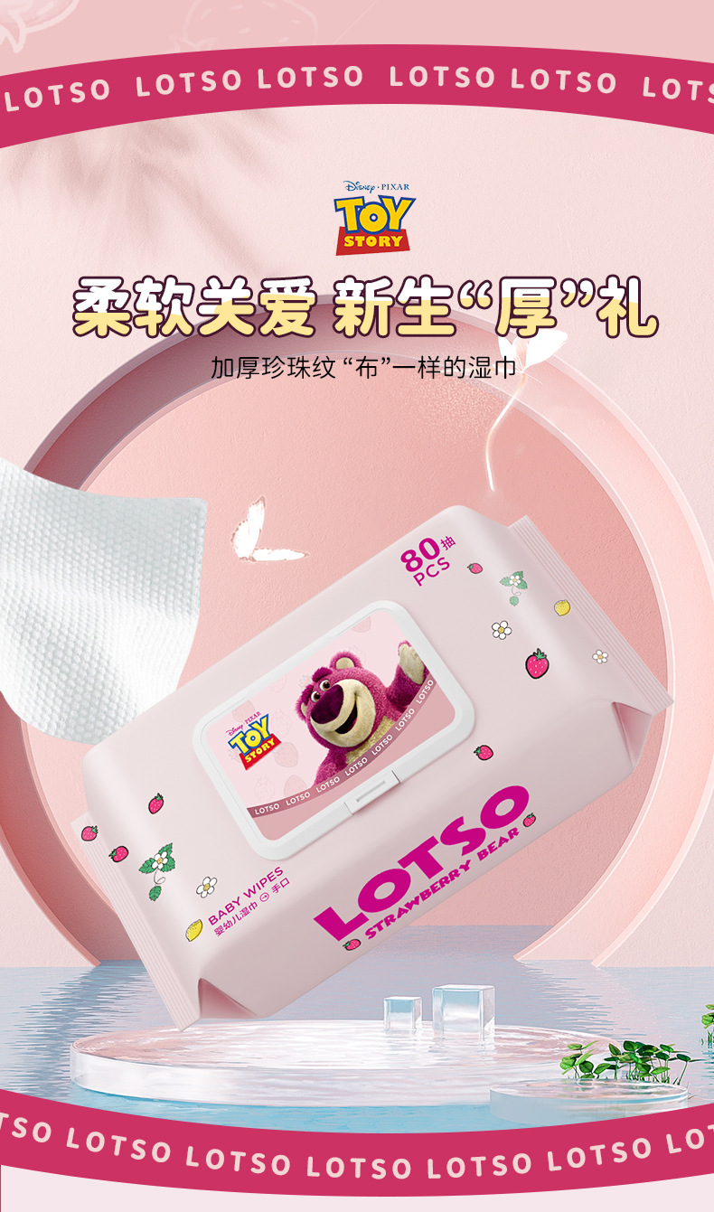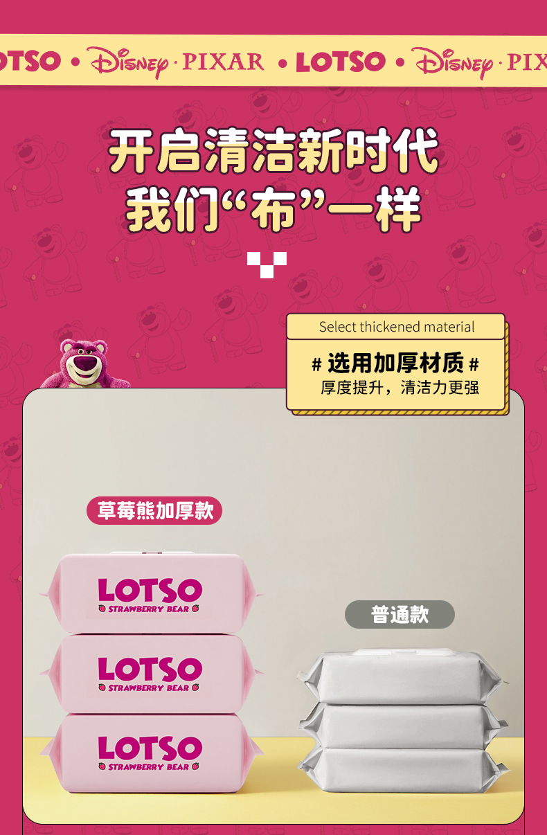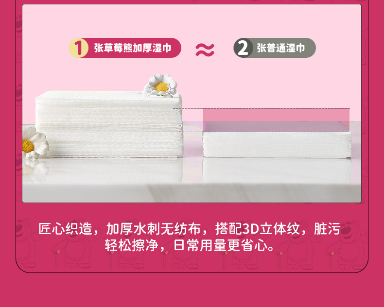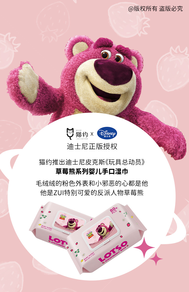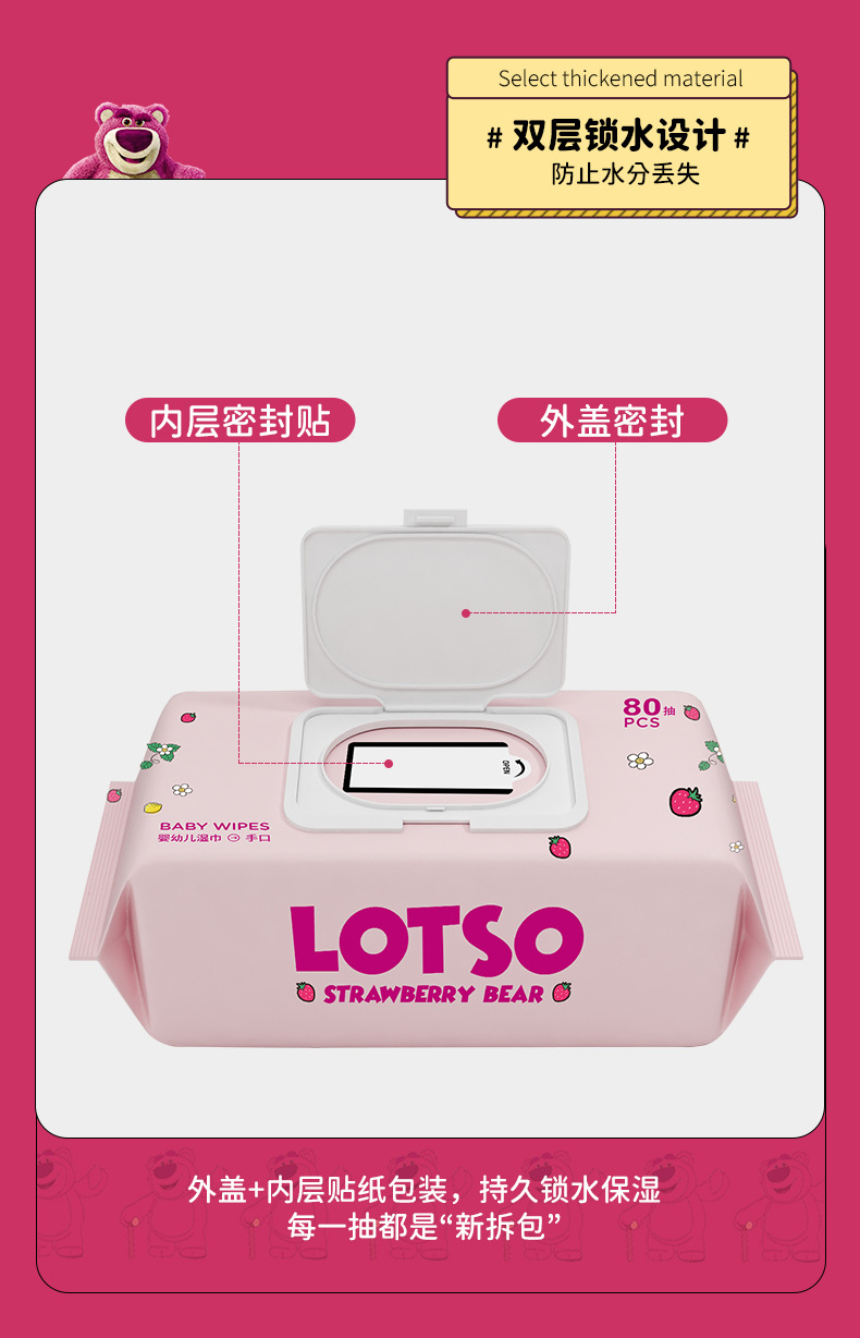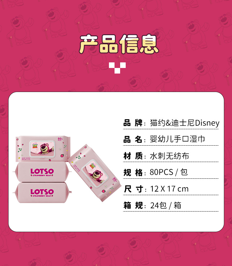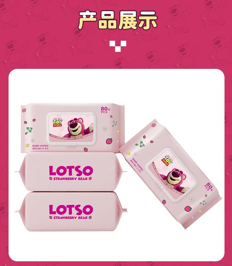 【9.9包邮!3盒240抽】迪士尼草莓熊婴儿手口湿巾,80抽大包,儿童带盖,适用于宝宝和新生儿。采用科学配方,无酒精、无香料,温和清洁宝宝的皮肤,保持皮肤健康。柔软厚实的材质,有效清除污渍!sh