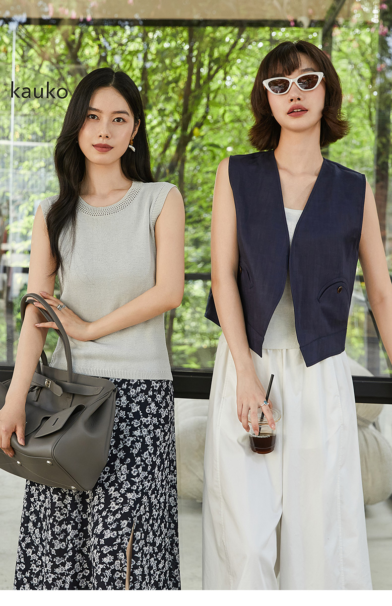 极简通勤米白色 U 领宽肩带针织背心 坑条肌理 夏季修身显瘦内搭打底衫