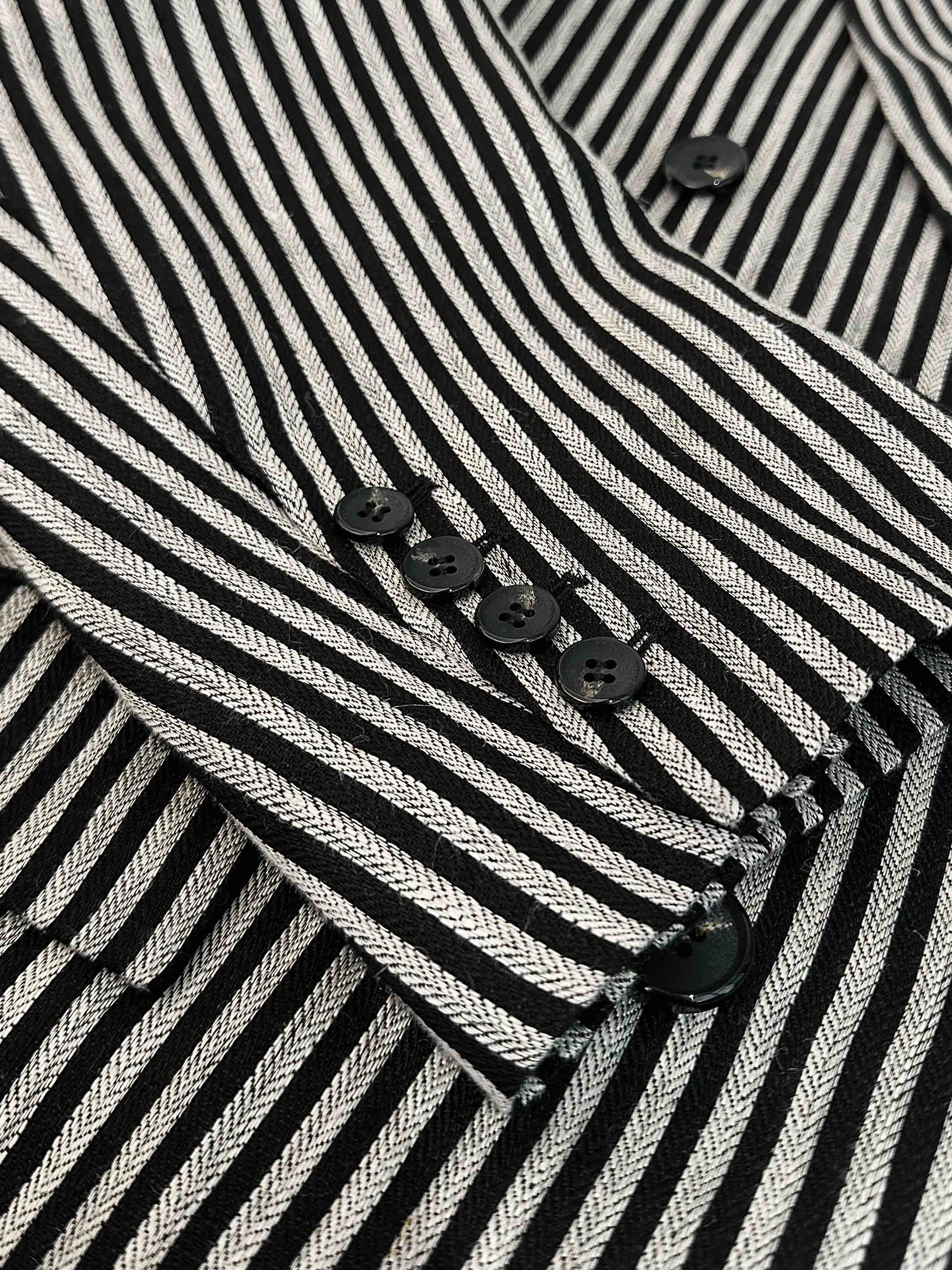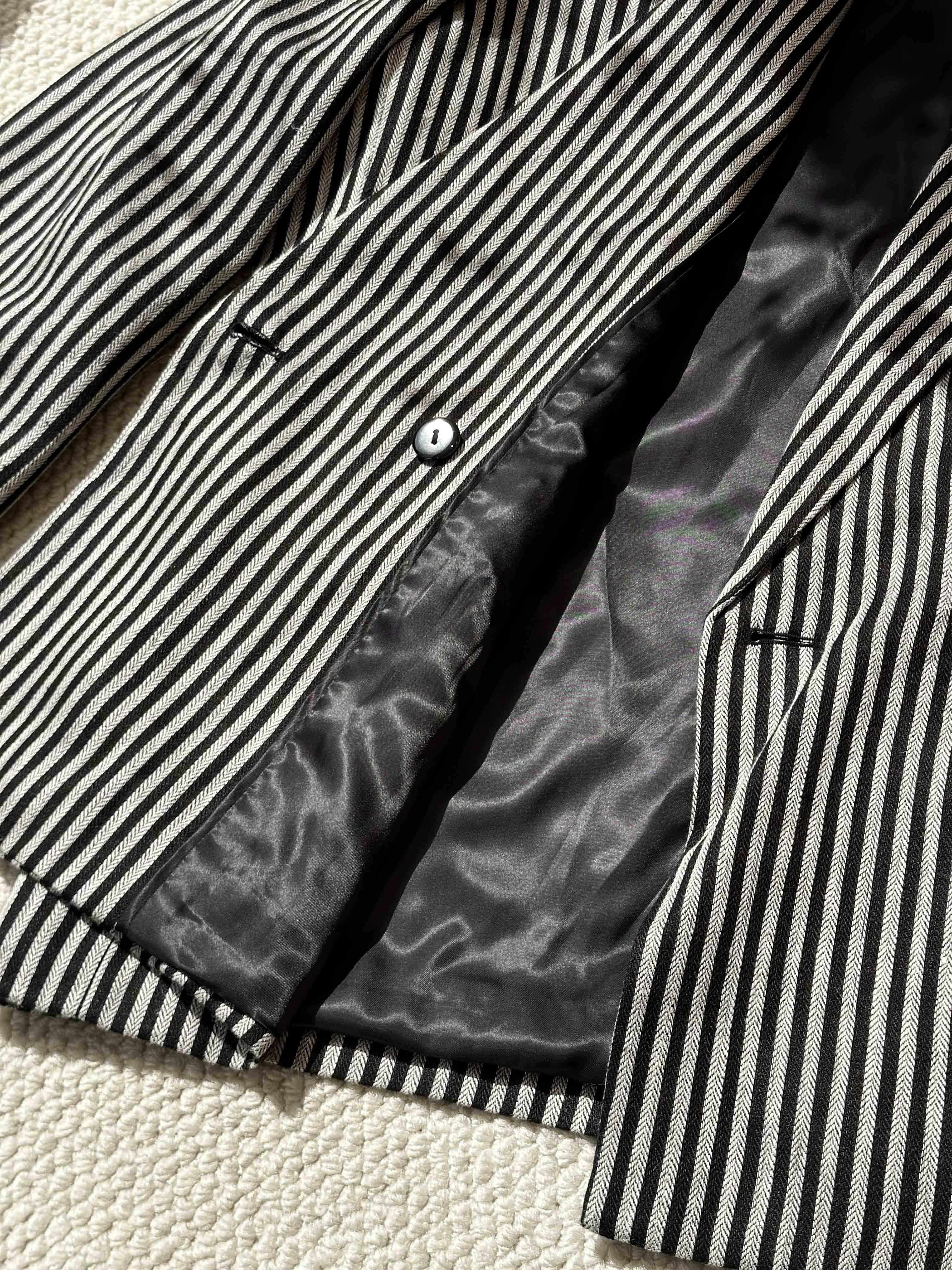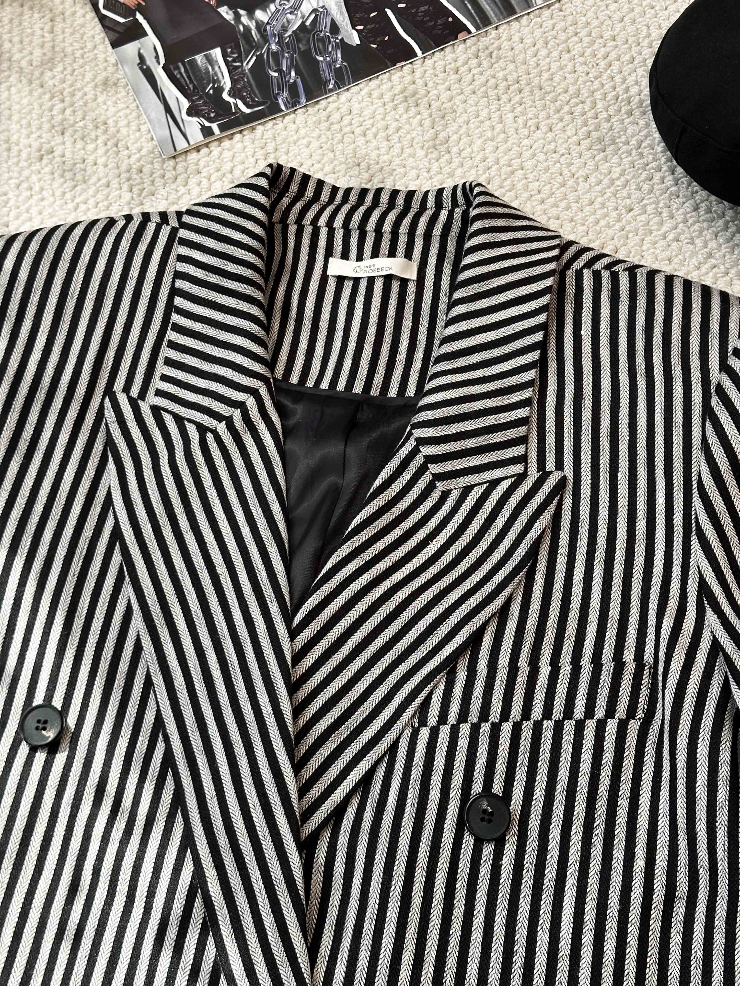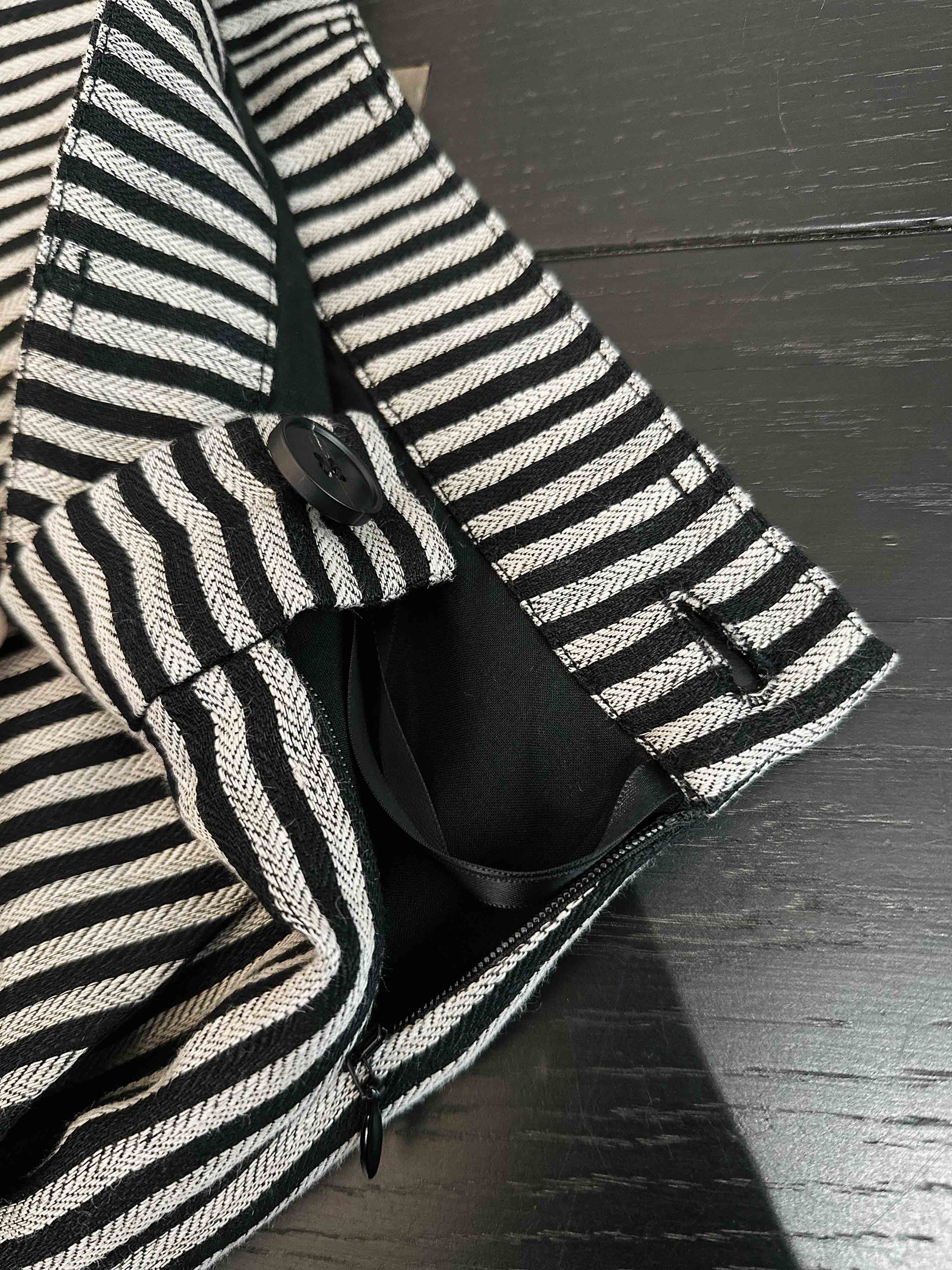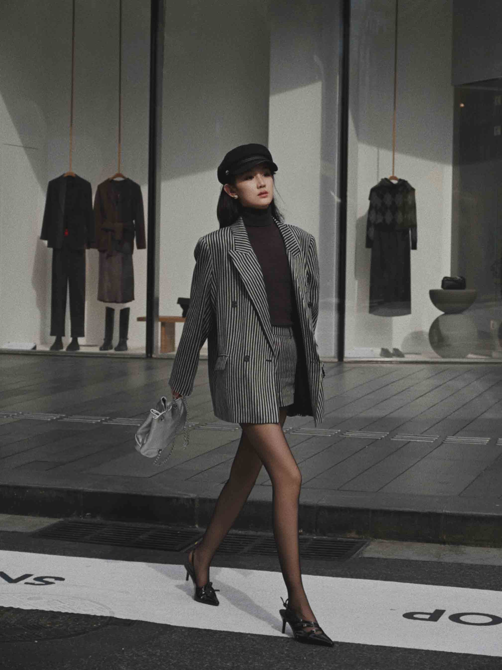 “复古亚麻老钱风 ”黑白条纹廓形西服+亚麻色织条纹时装短裤