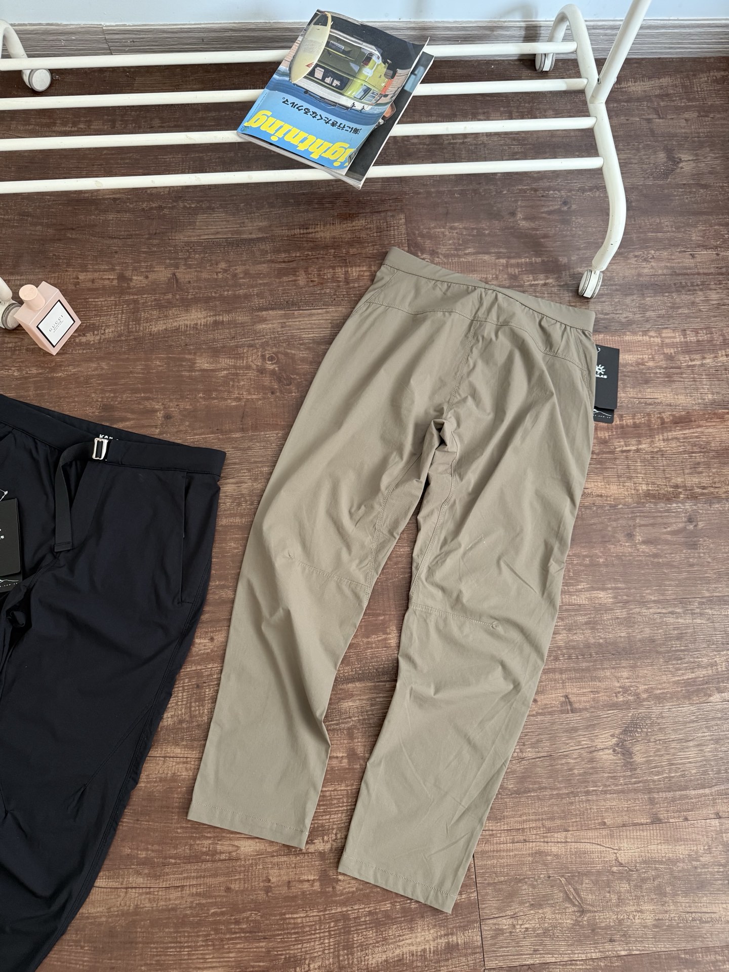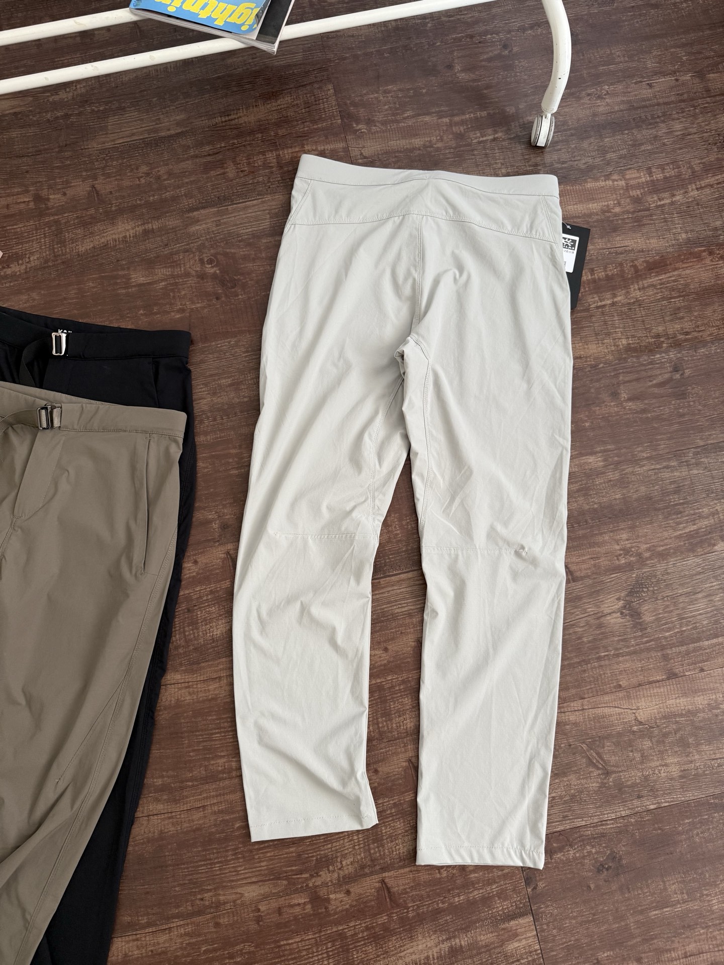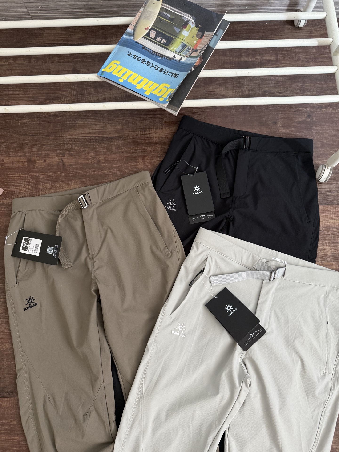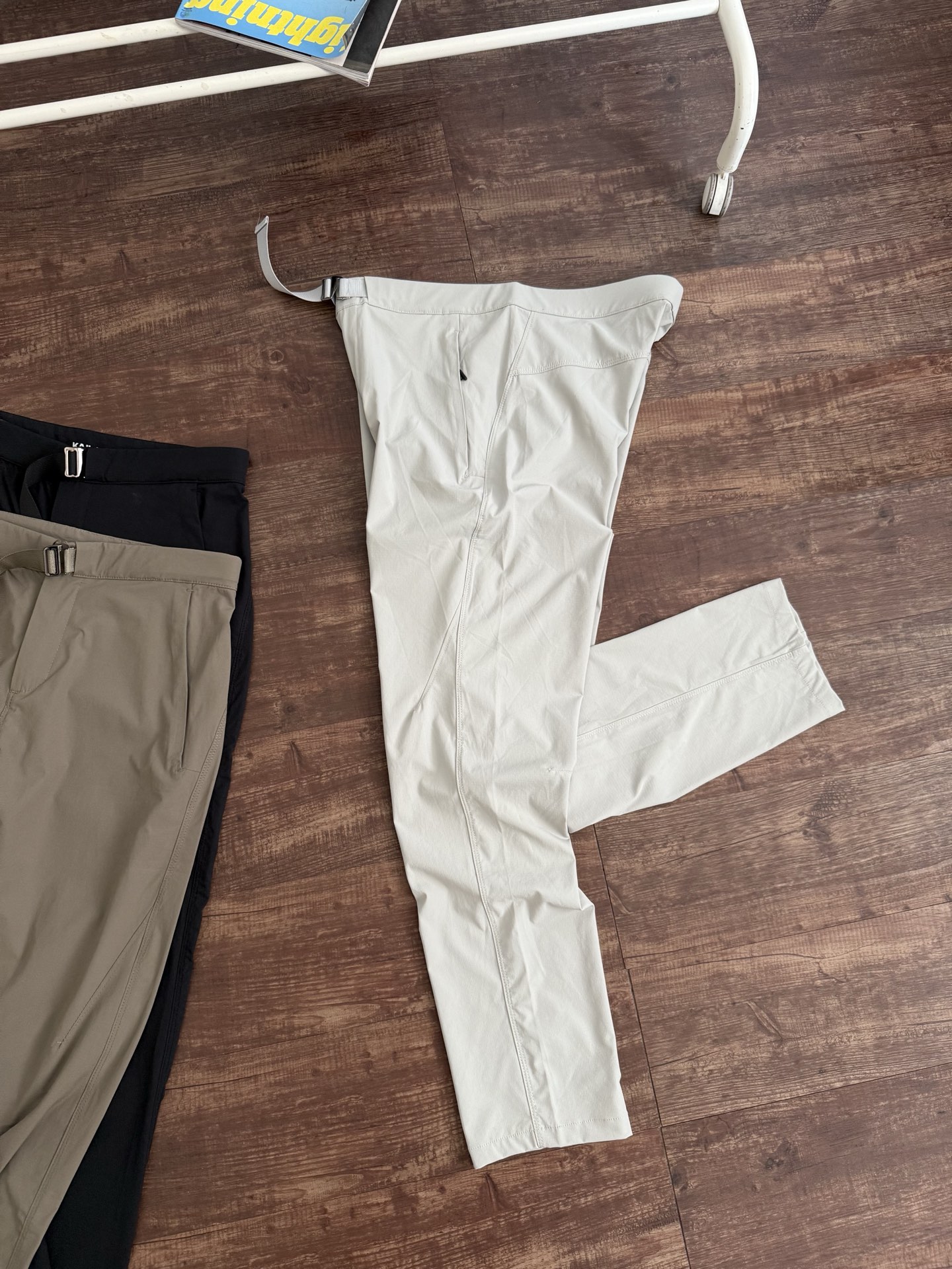定织户外高端防水耐磨快干面料!轻薄透气!防晒防水!亲肤舒适,四面弹力,对户外大幅度动作很包容!跟之前的T10长裤的设计相似,2个拉链口袋设计!腰围方面不同,调节性强穿脱更方便舒适!