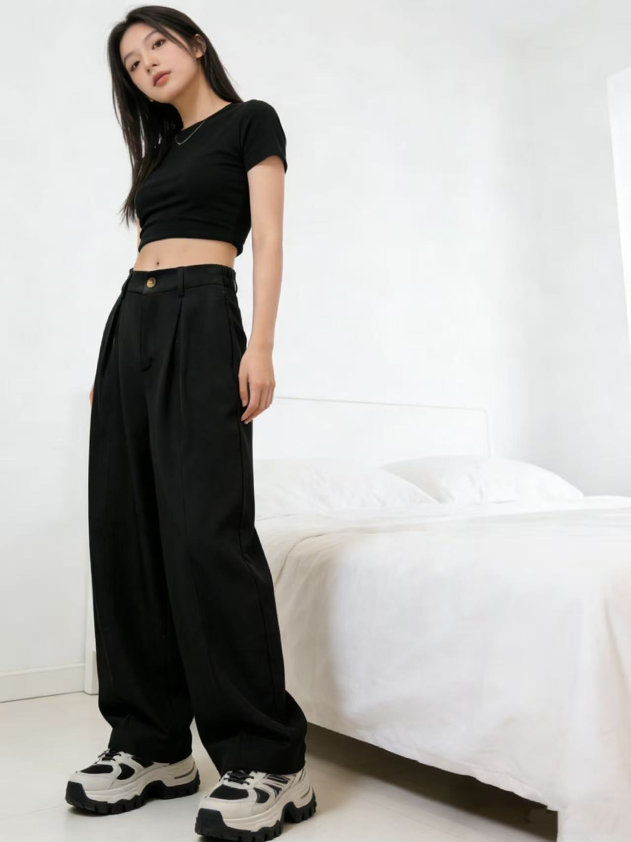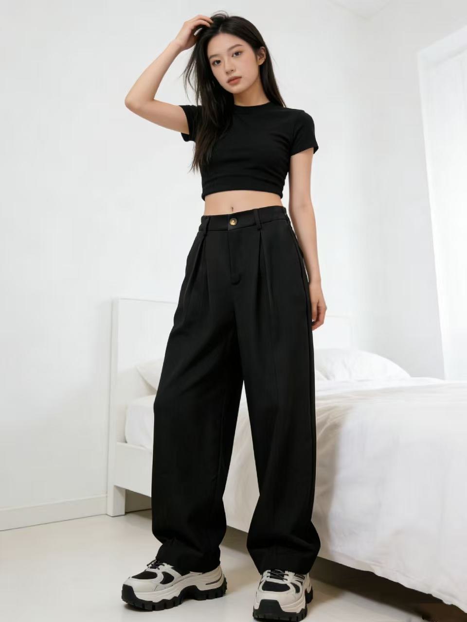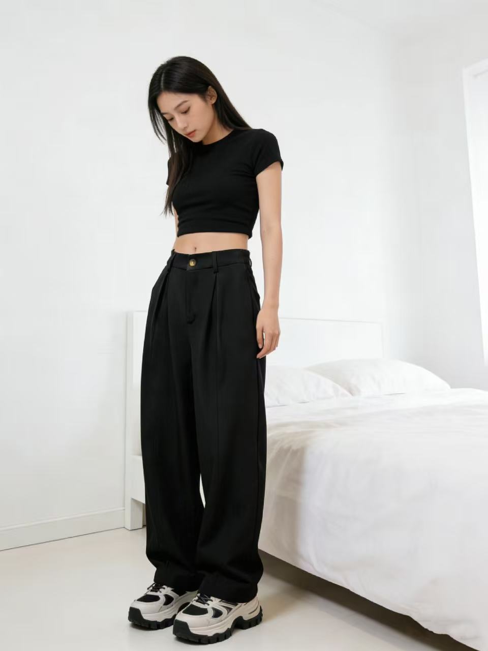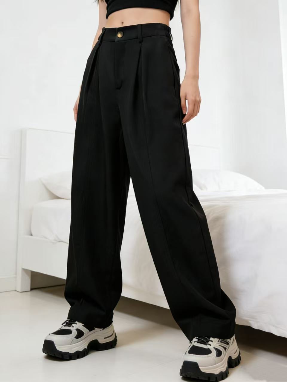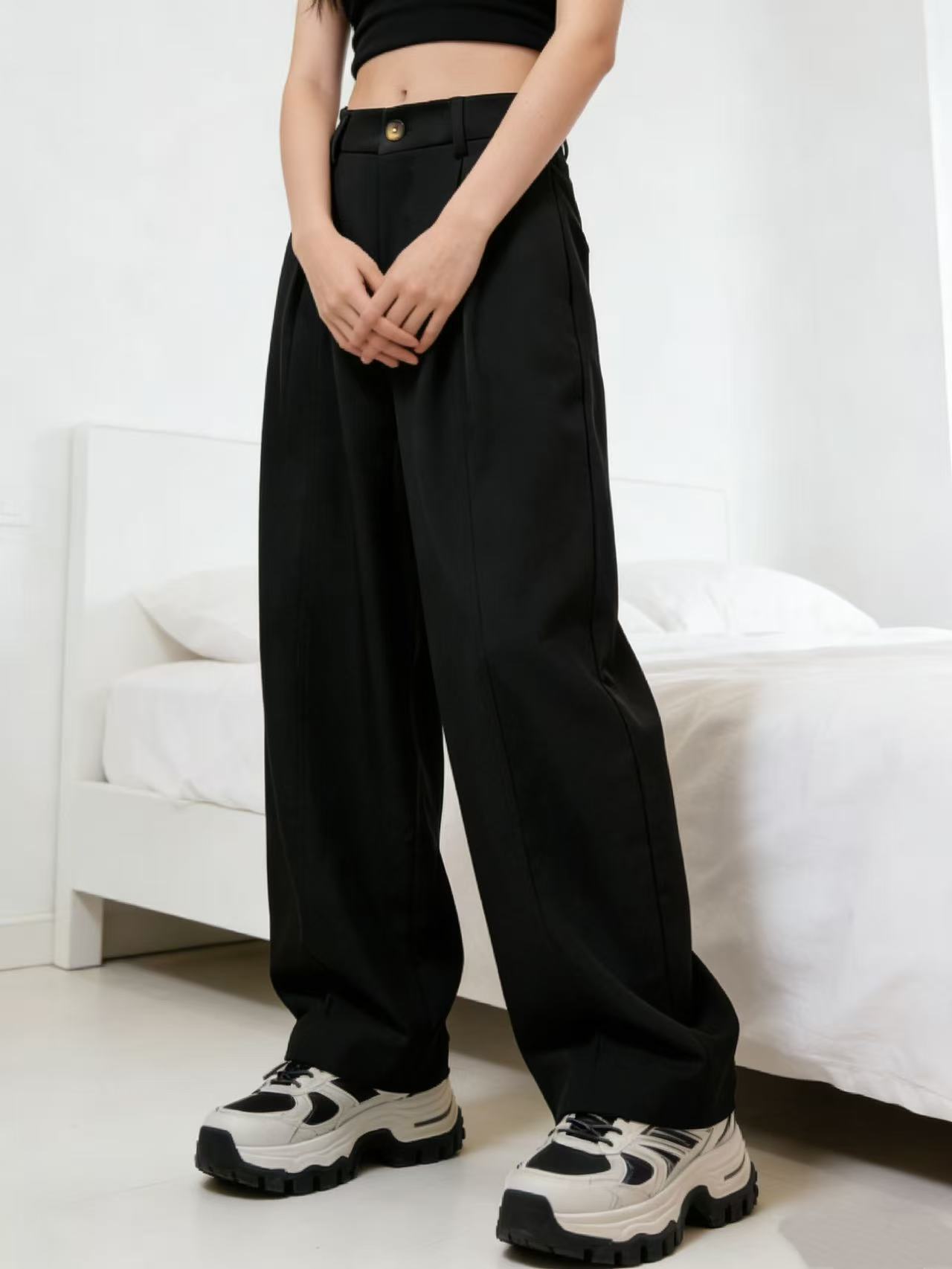 418良粉节|2026 活动爆款 西装面料【自营】 又美又飒!6607慵懒风欧货宽松气球弯刀裤休闲裤 -喜出