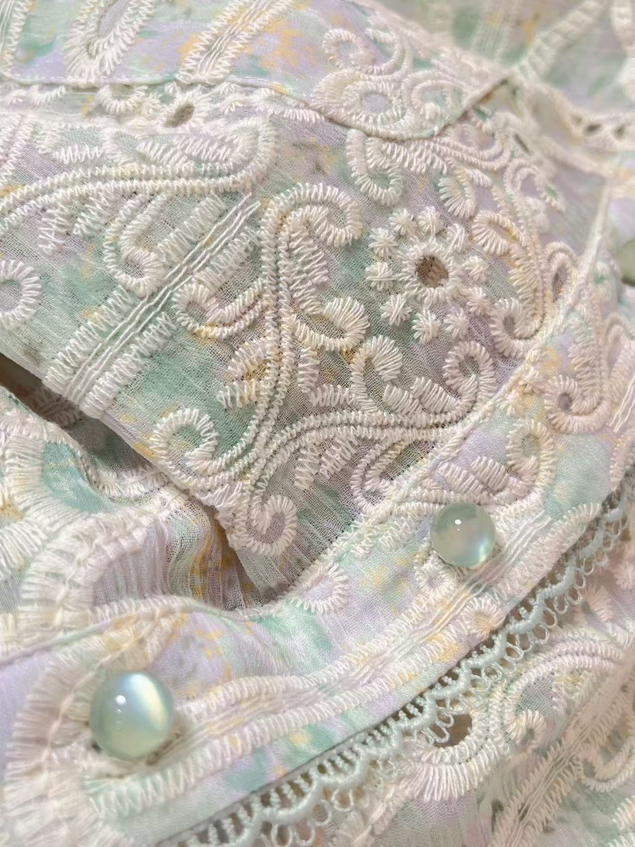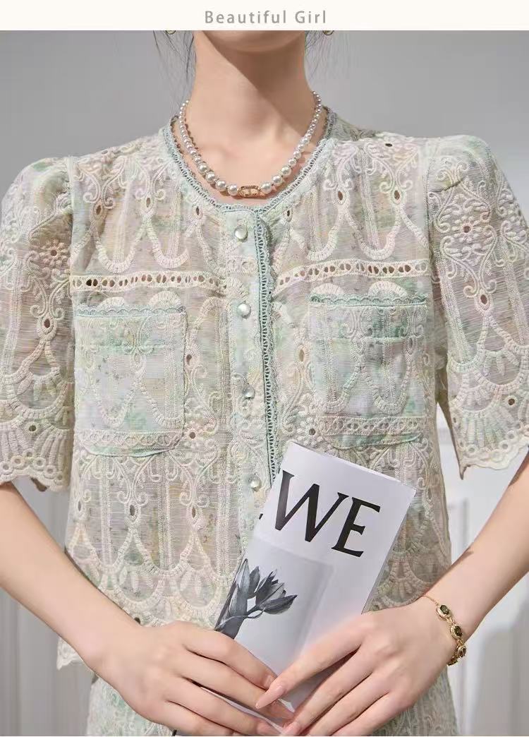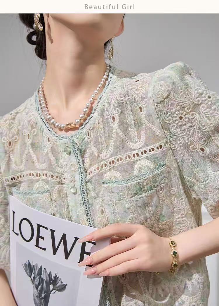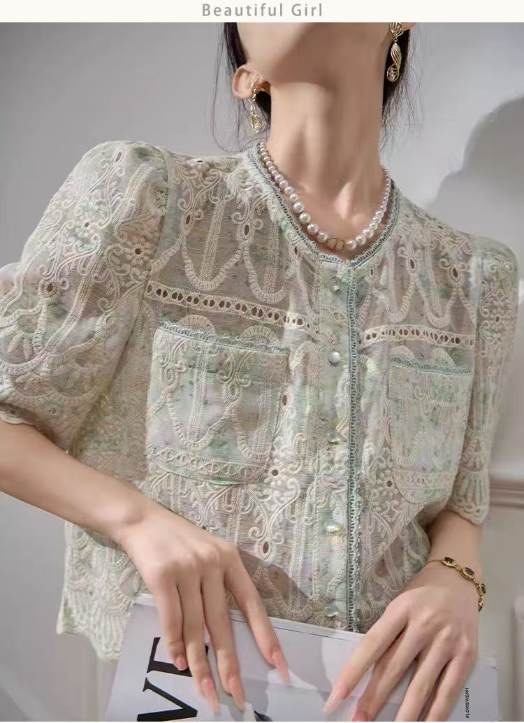 【MYBL】重工刺绣镂空小香风上衣-喜出