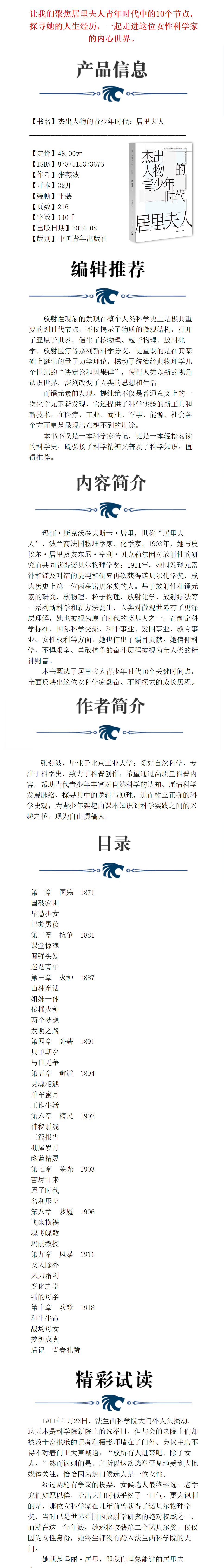杰出人物的青少年时代:居里夫人 张燕波 著 中国青年出版社