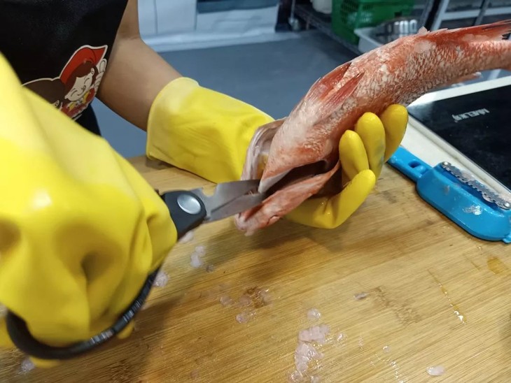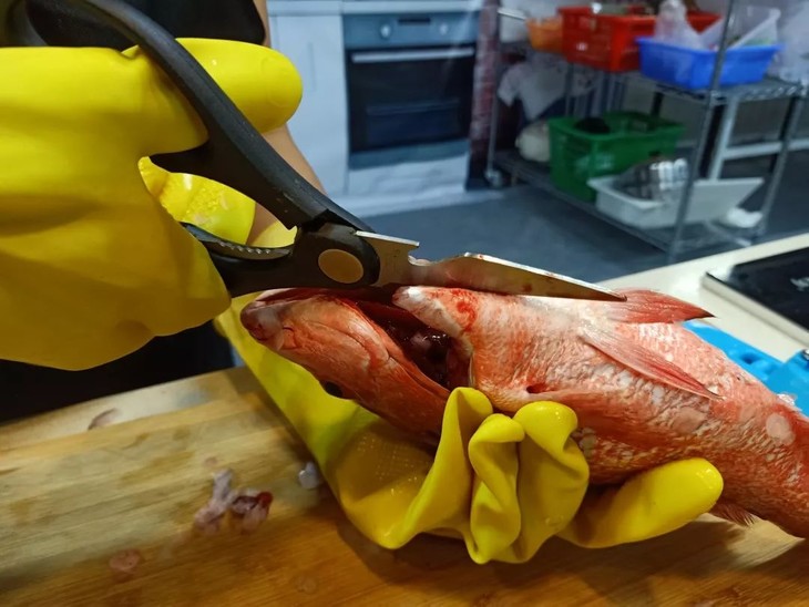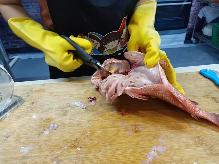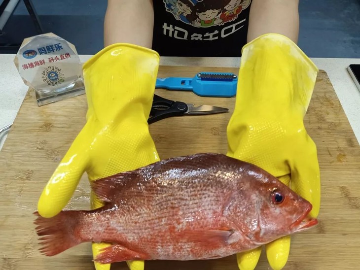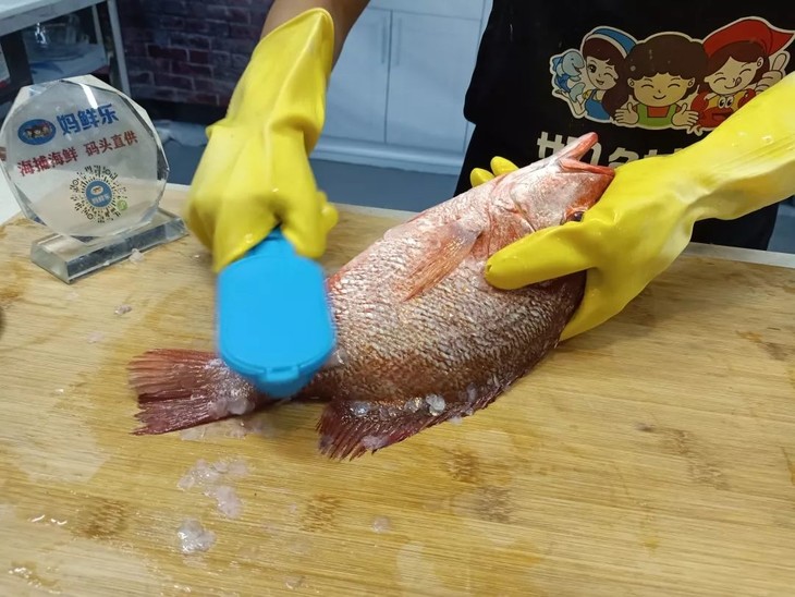 渔获上岸后,立即运到位于码头的妈鲜乐海鲜基地进行加工处理,这样妈妈们收到后解冻后可直接烹饪,方便省事!以下是妈鲜乐海鲜基地处理红棕鱼的步骤示范