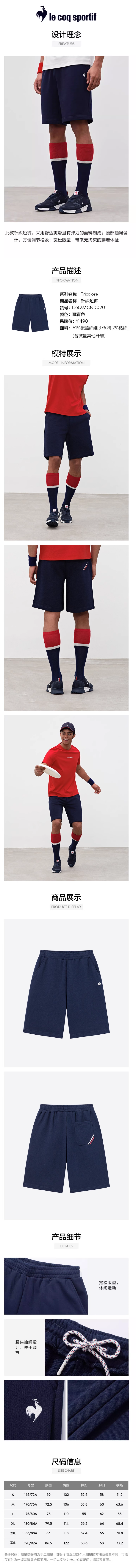 【大都会】 乐卡克法国公鸡夏季男子休闲运动舒适百搭弹力宽松针织短裤