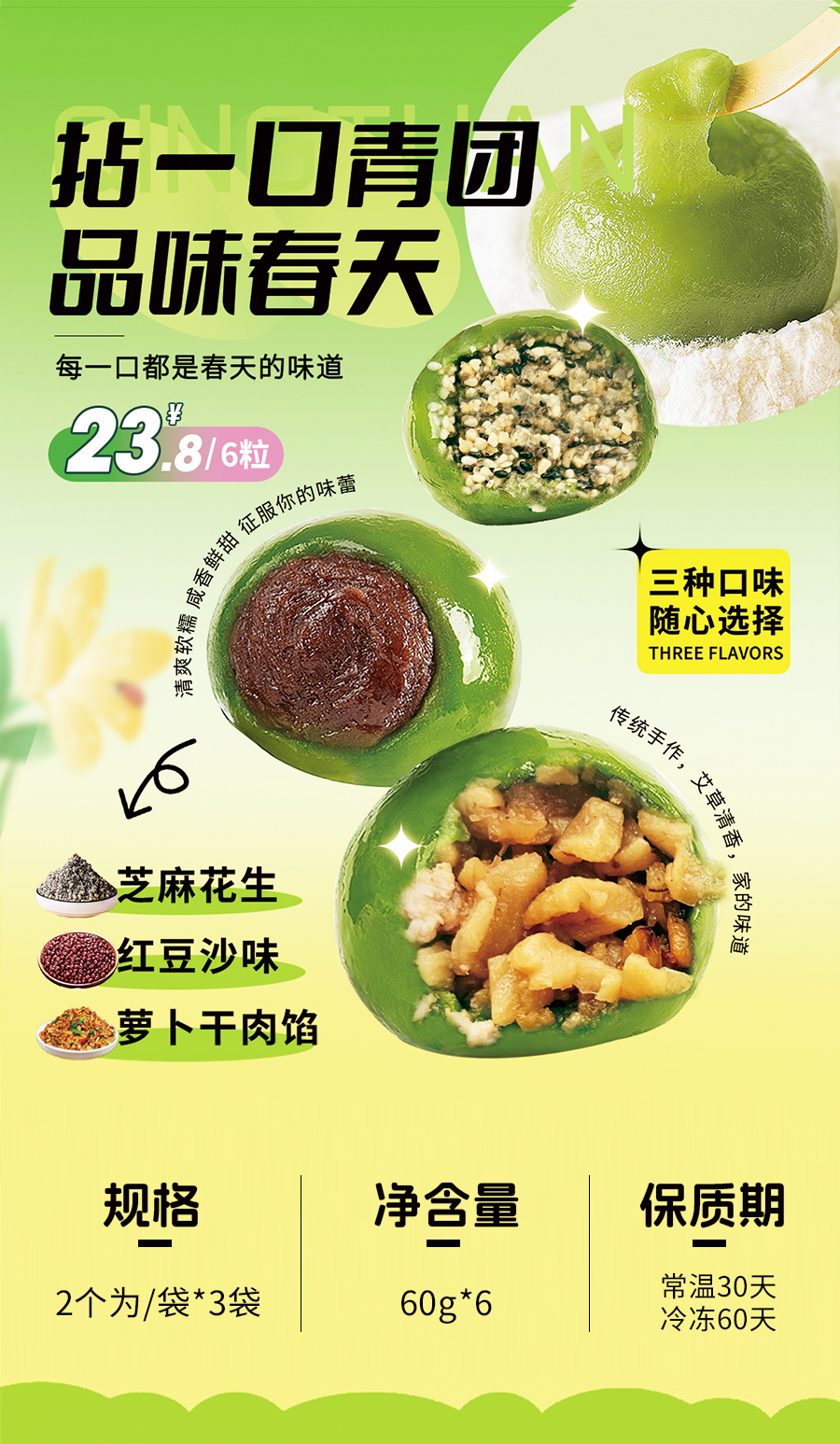 春日限定【张九龄老字号艾糍青团】软软糯糯甜咸三味任选,独立真空包装,一件包邮。第二件半价