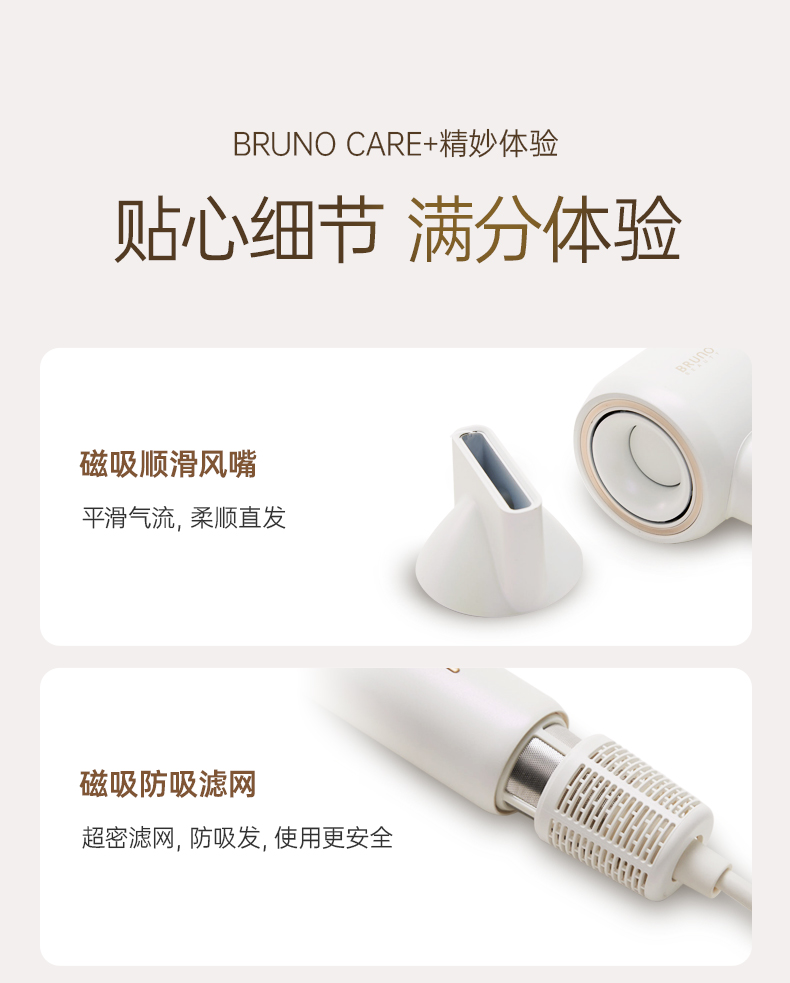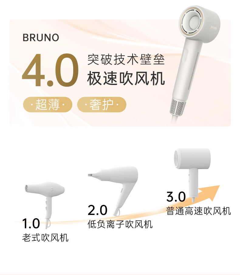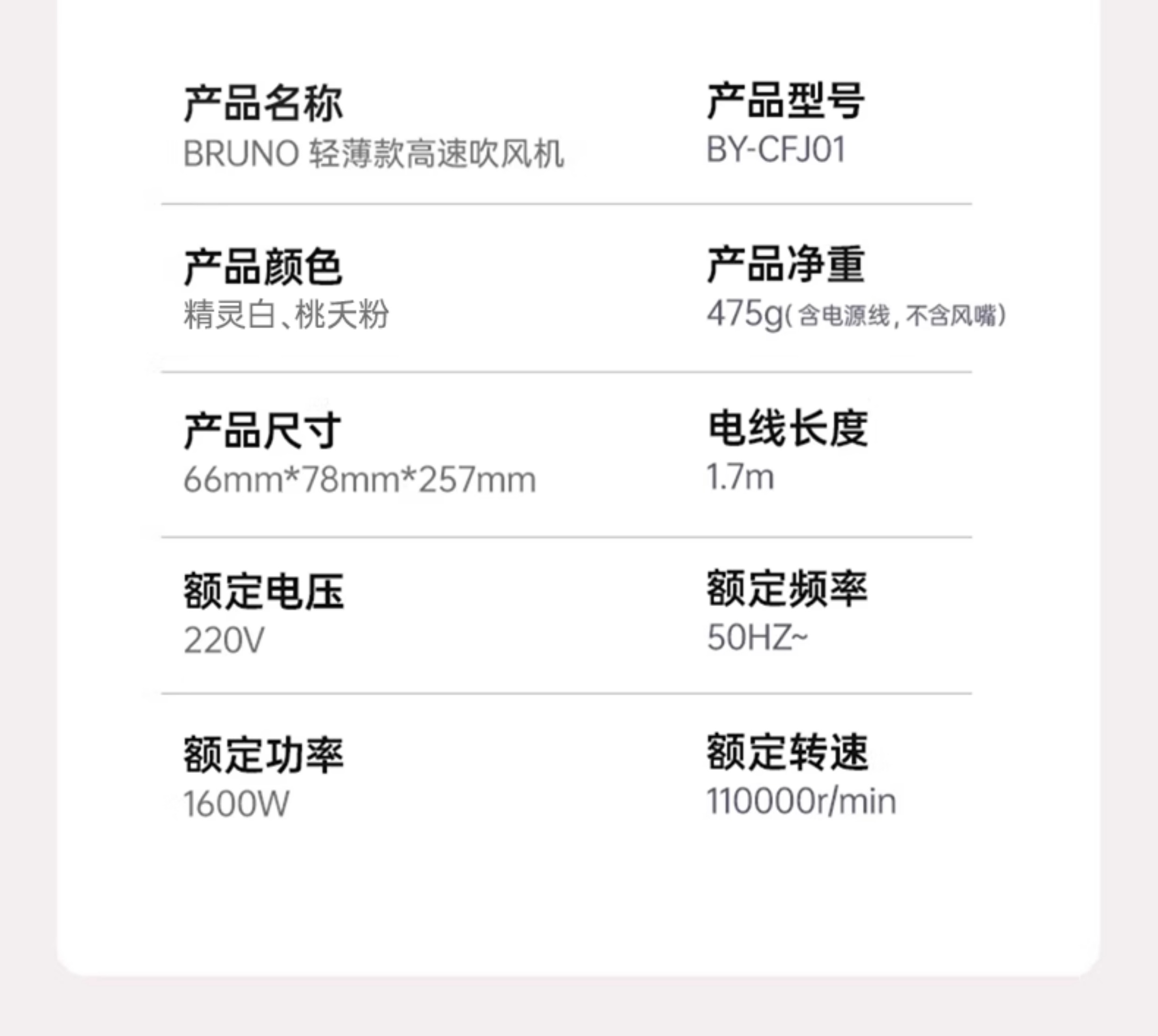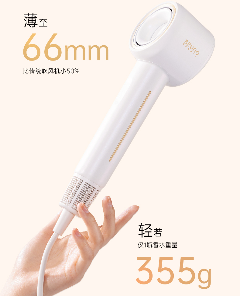 日本BRUNO博鲁诺轻薄高速吹风机白色