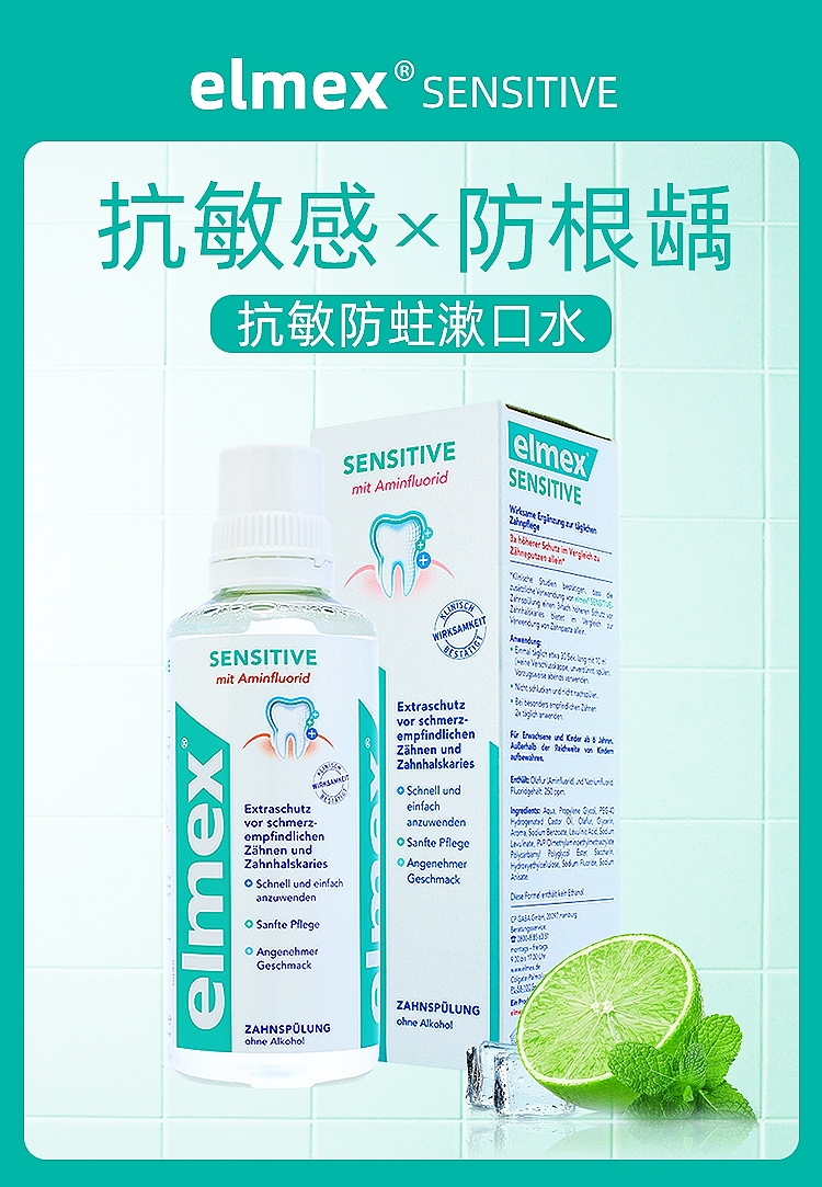 【品牌直发】进口elmex艾美适应对敏感防蛀漱口水400ml