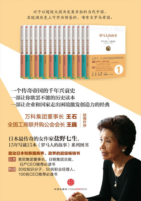 提起写罗马的作家,首推盐野七生。盐野七生自1992年开始,以古罗马帝国为题材,编织她的英雄梦,她以每年一册的速度,历时十五年,至2006年完成这部时空纵深长达一千多年的罗马史。《罗马人的故事》系列丛书的出版后,斩获意大利国家勋章及日本国内的各项大奖。引起日本、韩国商界、政、学界巨大震荡,日韩企业界领袖及政府高层都曾与她有过多次高端对谈。