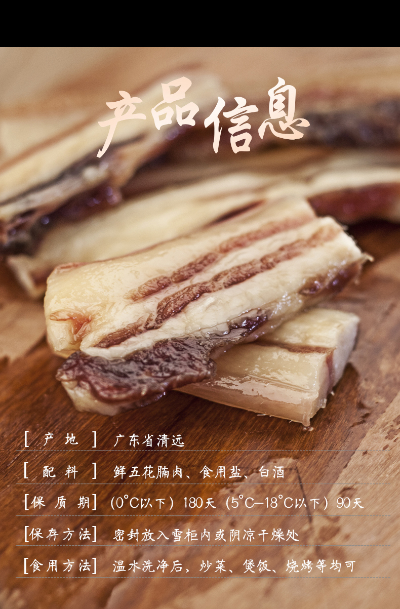 连州特产粤众佳源 东陂腊肉袋装400g 传统风味自然风干