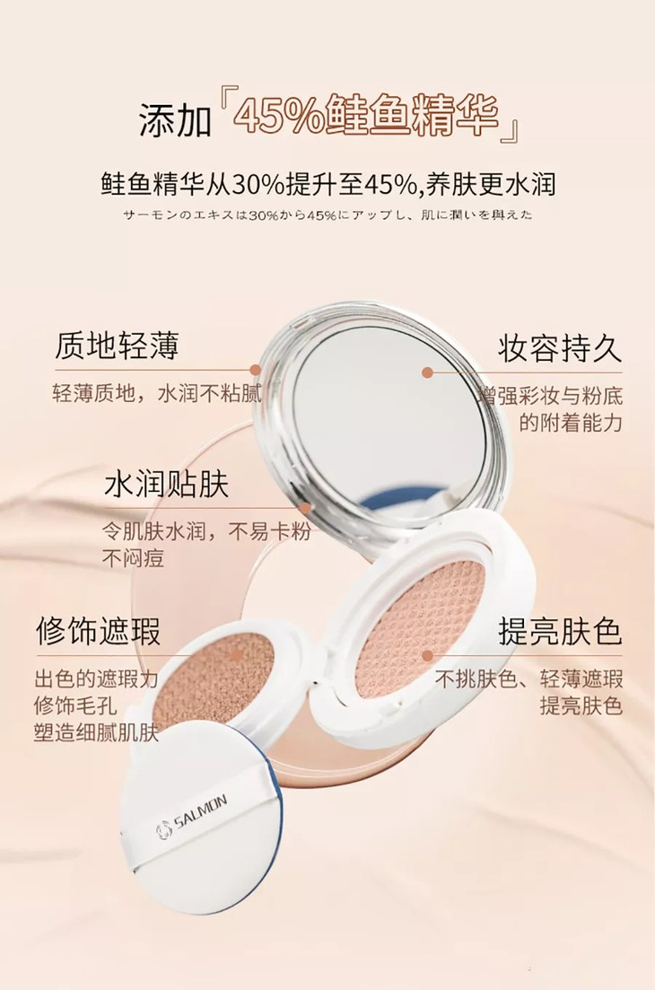 Salmon鲑鱼幻彩无暇气垫粉底 CC遮瑕提亮持久服帖薄透