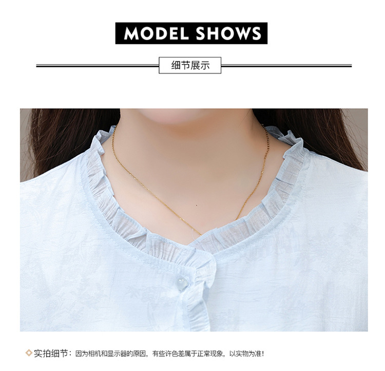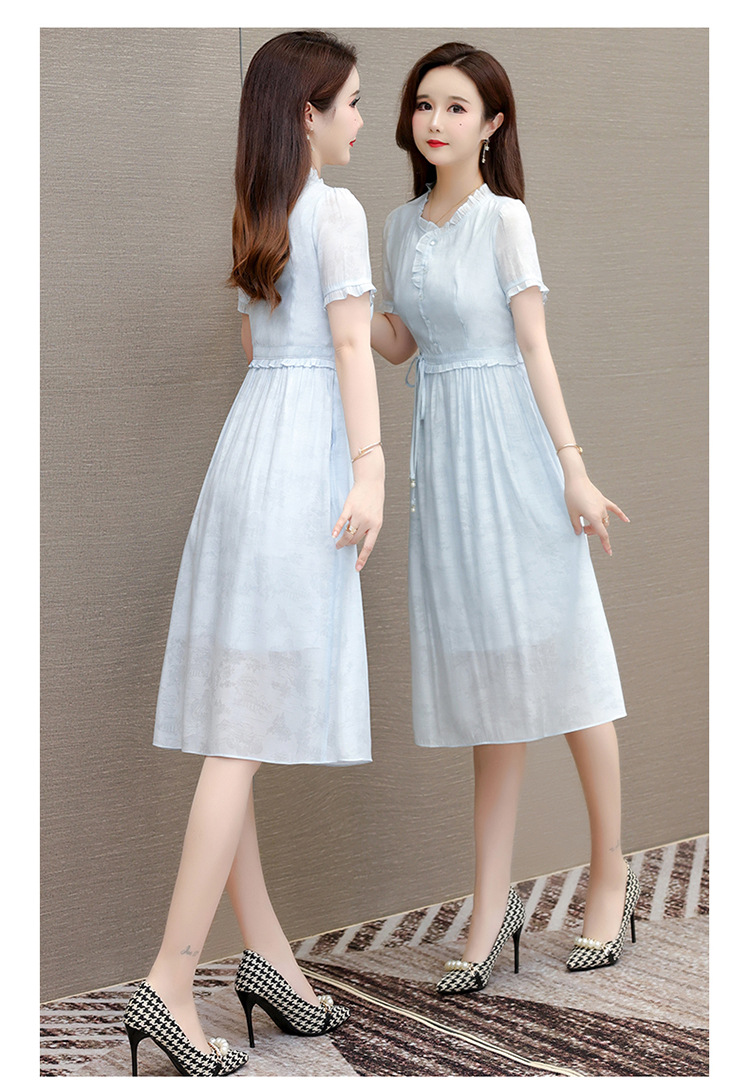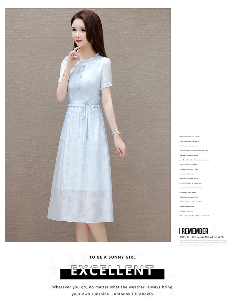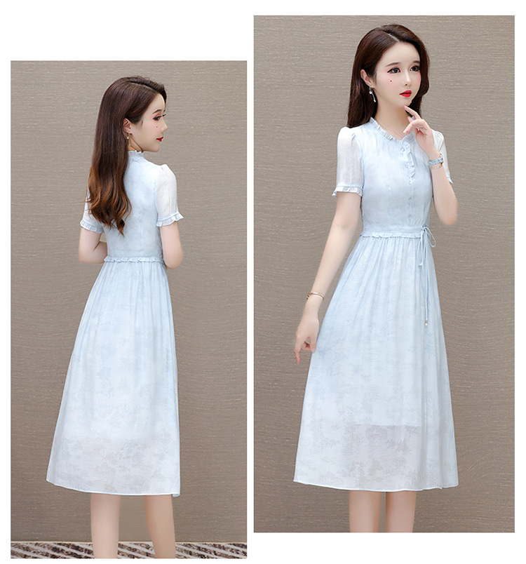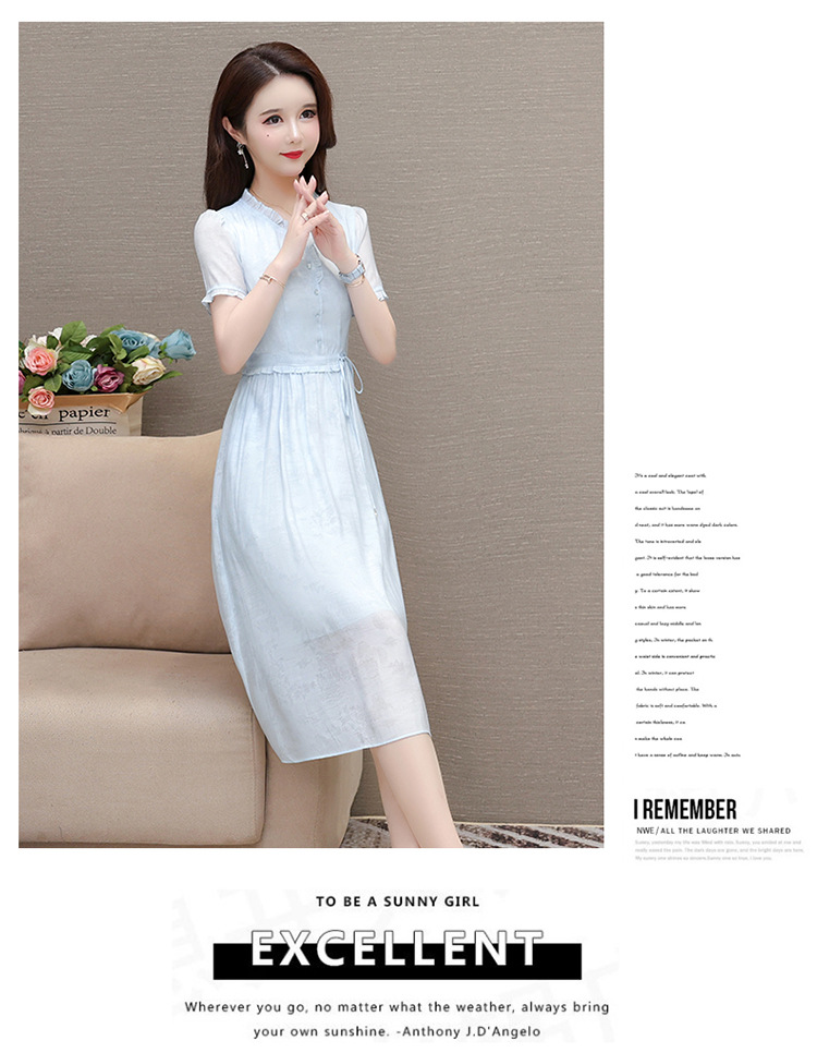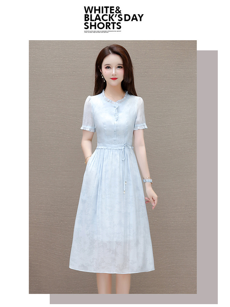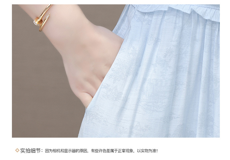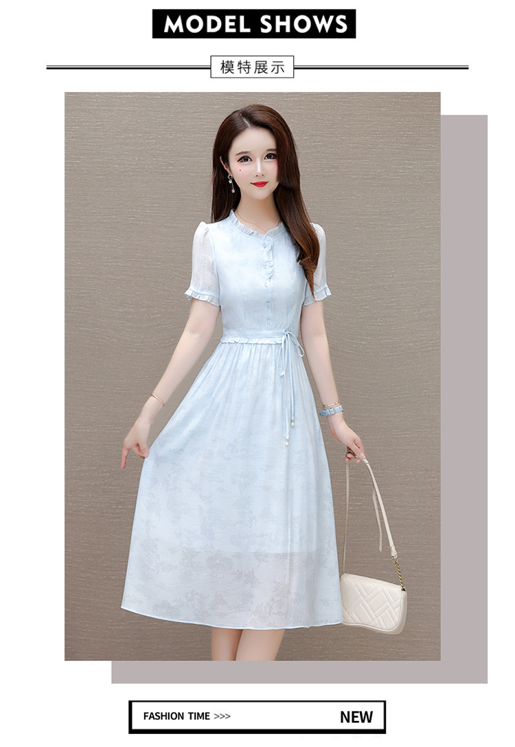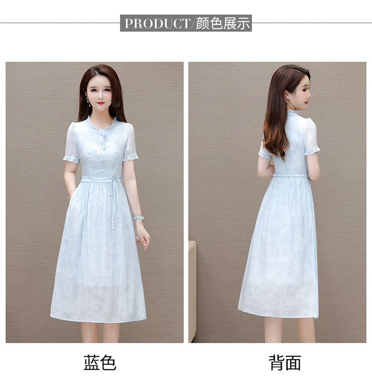 QYMLRX-SL28155-Y简约风连衣裙女2024年新款花边领气质优雅短袖高腰中长款印花裙 商品图4