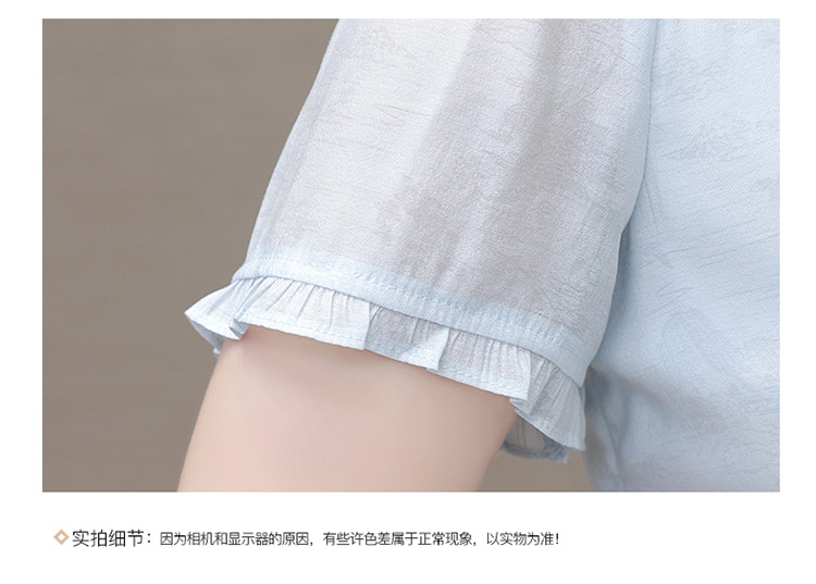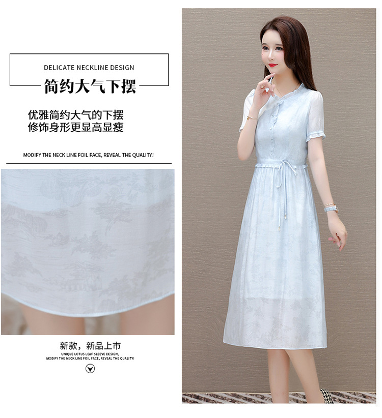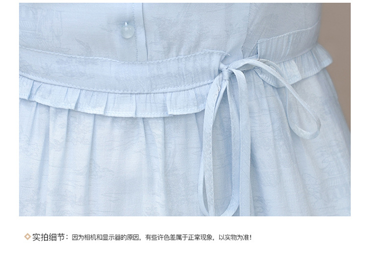 QYMLRX-SL28155-Y简约风连衣裙女2024年新款花边领气质优雅短袖高腰中长款印花裙 商品图3