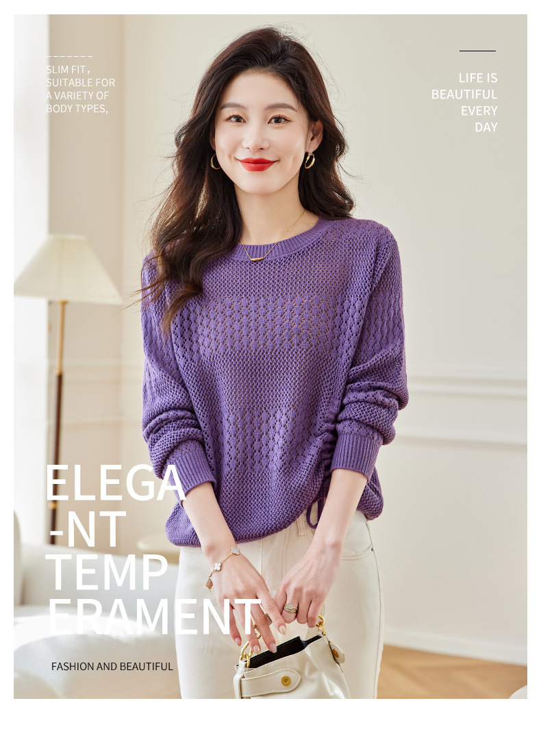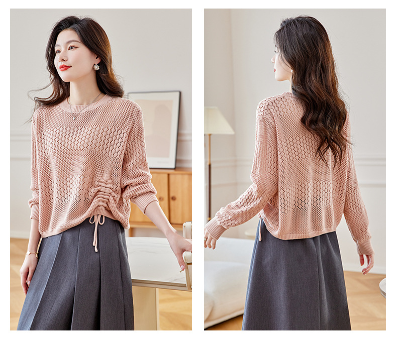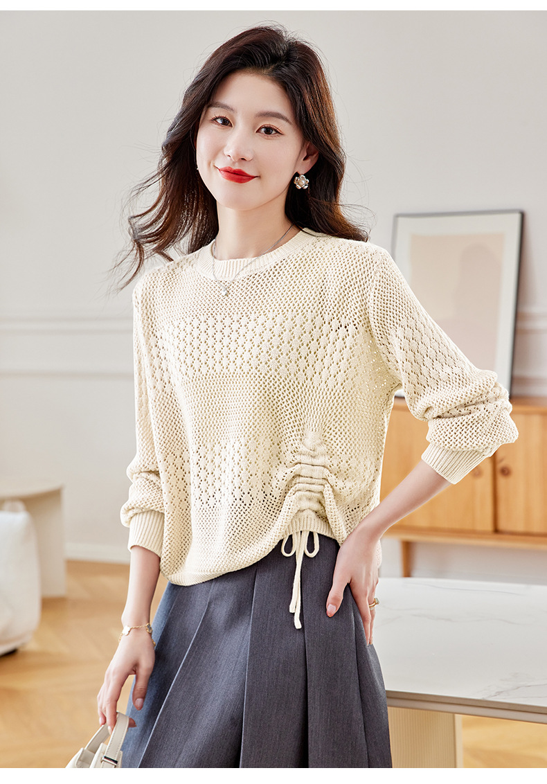 CC27-2426镂空长袖t恤女针织打底衫2024春新款别致绝美小上衣洋气小衫批发