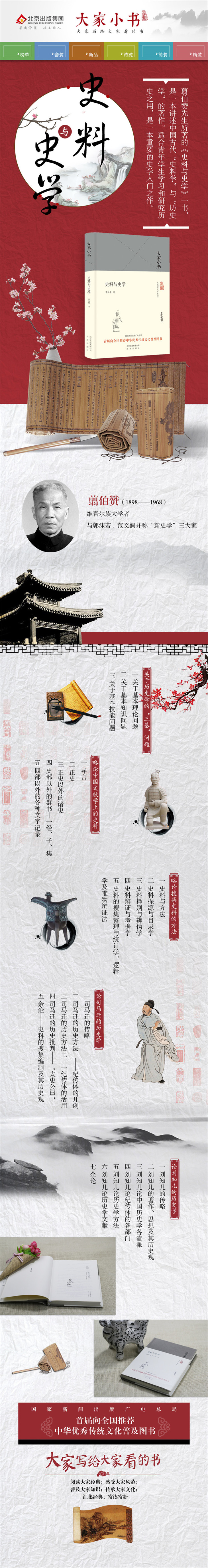 翦伯赞先生所著《史料与史学》一书,是一本讲述中国古代“史料学”与“历史学”的著作。其原本于1946年4月由上海国际文化服务社出版,共收论文三篇,为《略论中国文献学上的史料》、《论司马迁的历史学》及《论刘知几的历史学》。本书为增订本,是我在“文革”之后,按照翦老生前的意愿,以原本为基础增补而成,于1985年9月由北京大学出版社出版。新收论文亦为三篇:《略论搜集史料的方法》、《考古发现与历史研究》及《关于历史学的“三基”问题》。翦先生是一位著名的马克思主义史学家,他在一生中,除了为史学研究和建设编写了许多重头名著如《中国史纲》、《历史哲学教程》等之外,还写了不少普及性的读物,以帮助一般群众,尤其是青年学生学习和研究历史之用,本书就是他所著的一本重要的史学入门之作。