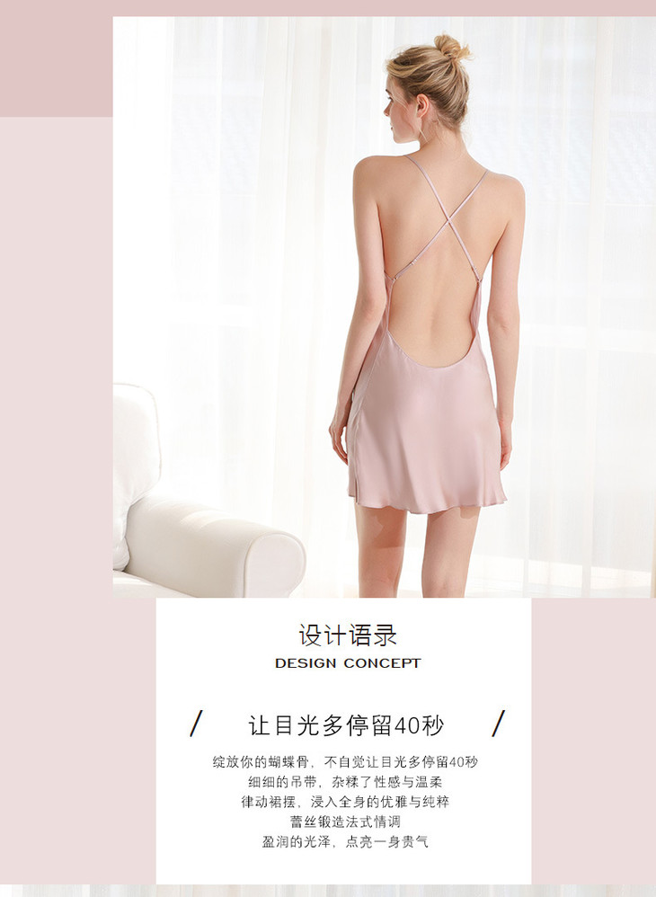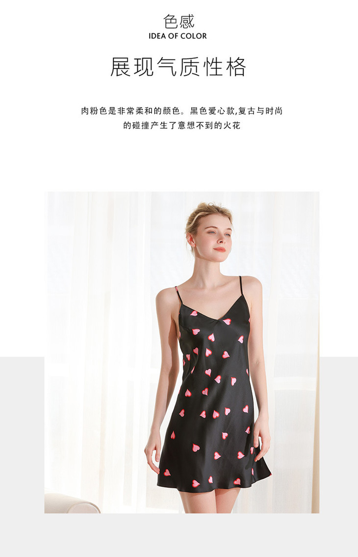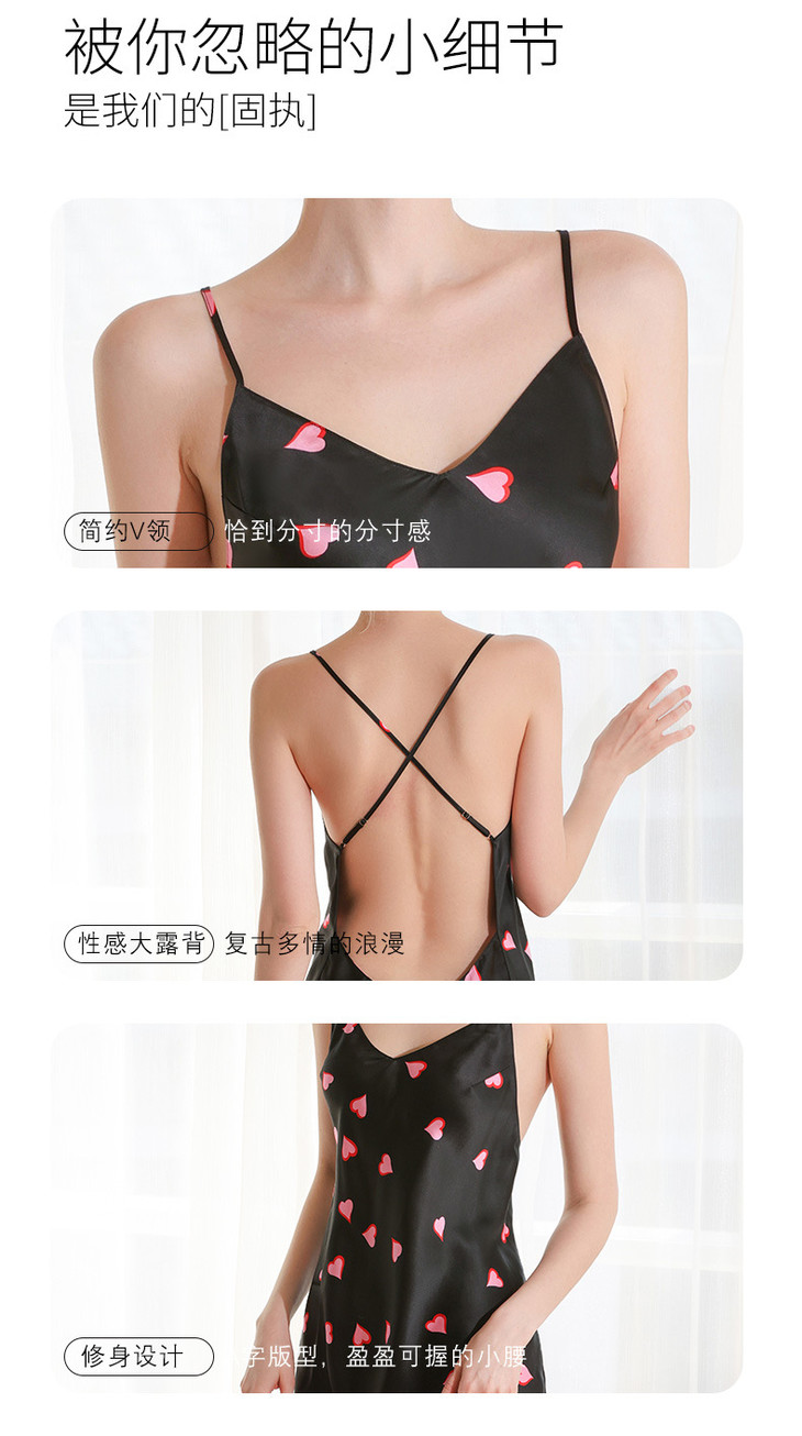 OG真丝睡衣女夏季爱心桑蚕丝绸性感露背短裙吊带睡裙纯欲风迪普薇