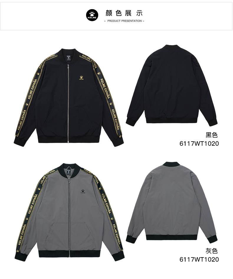 卡尔美运动休闲外套春秋季男士开衫拉链字母纯色夹克