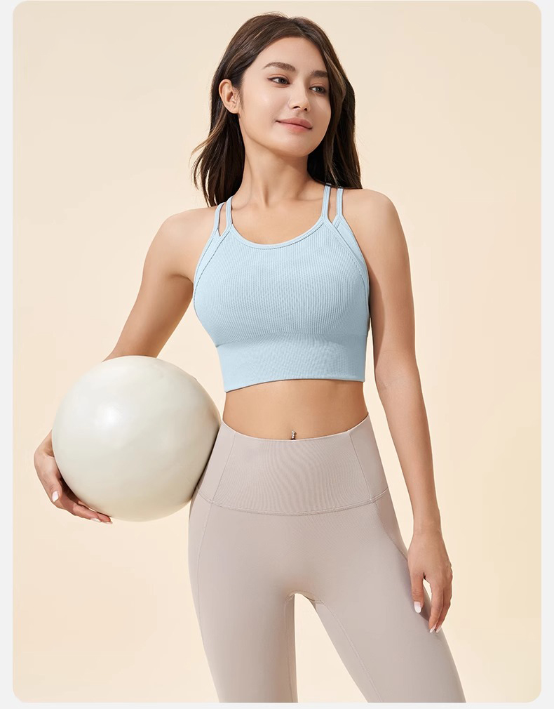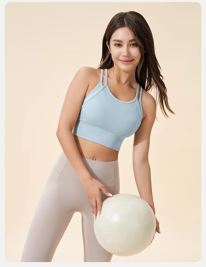 跃牌【安琪拉系列】细肩带美背假两件运动内衣瑜伽健身服WXM5291