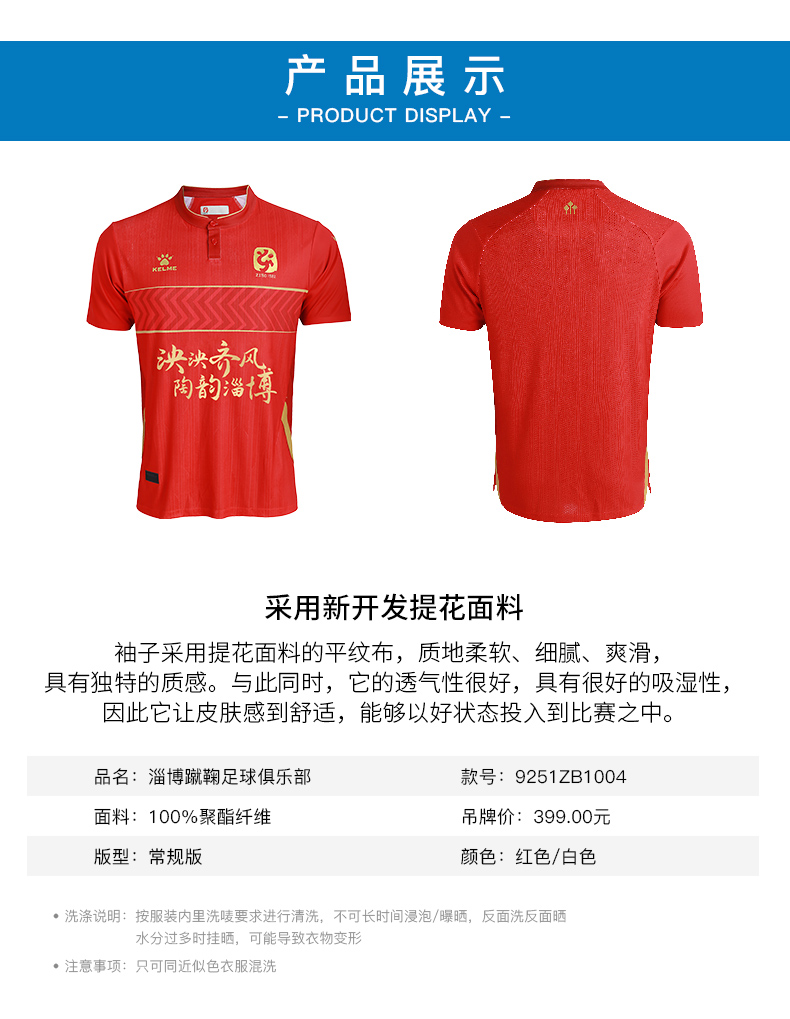 卡尔美足球服 22年淄博蹴鞠比赛服 俱乐部球员版球衣中甲